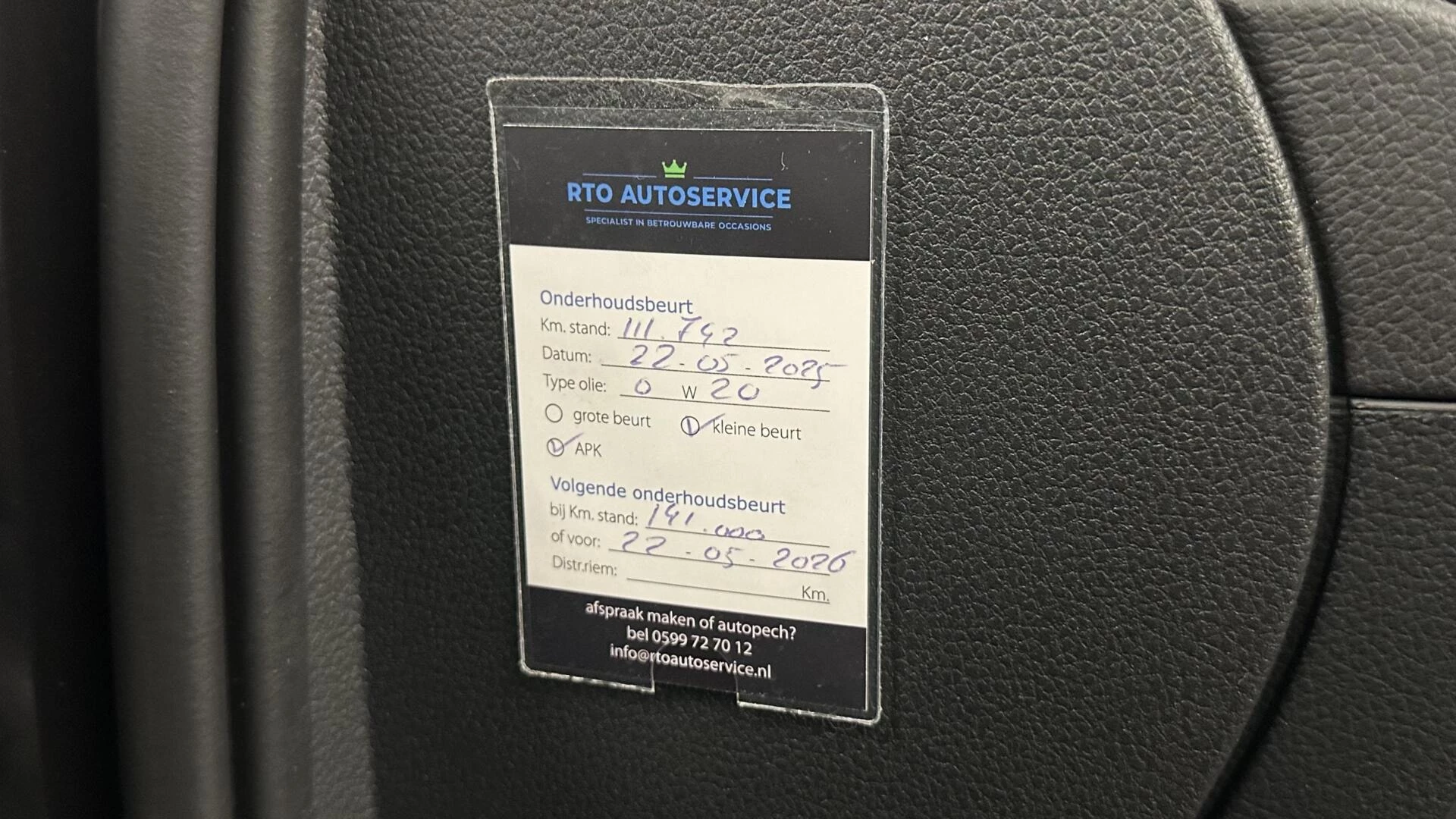 Inclusief onderhoudsbeurt.