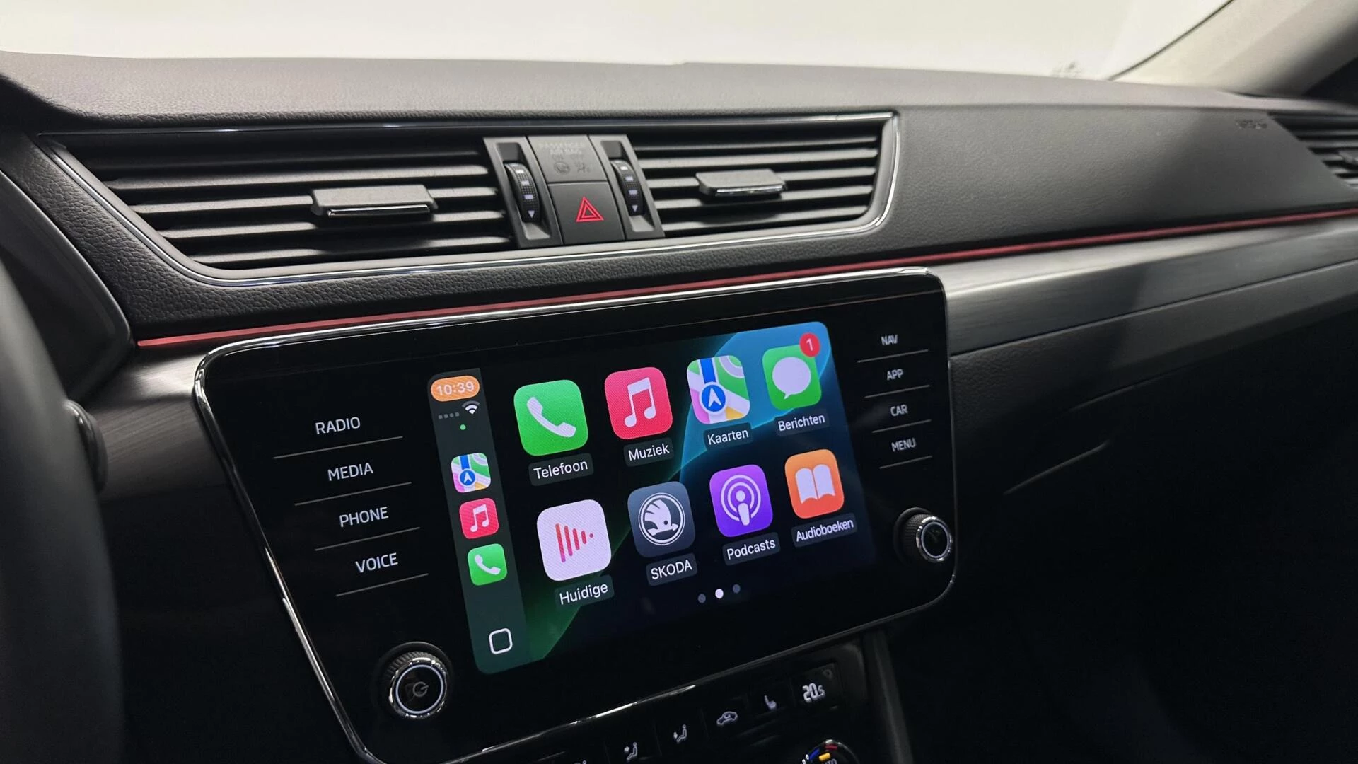 De achteruitrijcamera levert eersteklas parkeerservice. U weet precies hoeveel ruimte u nog heeft, in beeld en geluid. Kilometerstand? Oliepeil? Accuspanning? Allemaal te zien via de app. Overal. Altijd. Dankzij Connected Services. Met de knoppen op het stuur regelt u het audio-installatiesysteem en het navigatiesysteem met harde schijf, terwijl u uw blik op de weg gericht houdt. De audio-installatie biedt daarbij glasheldere ontvangst dankzij DAB-ontvangst. Nieuwe smartphones hebben geen snoeren meer nodig om op te laden. Daarom heeft deze Skoda Superb Combi een draadloze oplaadmogelijkheid voor telefoons waarmee u onderweg simpel en effectief voor een volle accu zorgt. Ook over uw schouder ziet u onderweg niet alles wat er aan de achterzijde gebeurt. Daarom heeft deze Skoda Superb Combi een achteropkomend verkeer waarschuwing. En deze auto heeft ook WIFI-hotspot, automatische airconditioning, schakelpaddles aan het stuur, regensensor, cruise control en keyless entry als standaard uitrusting.