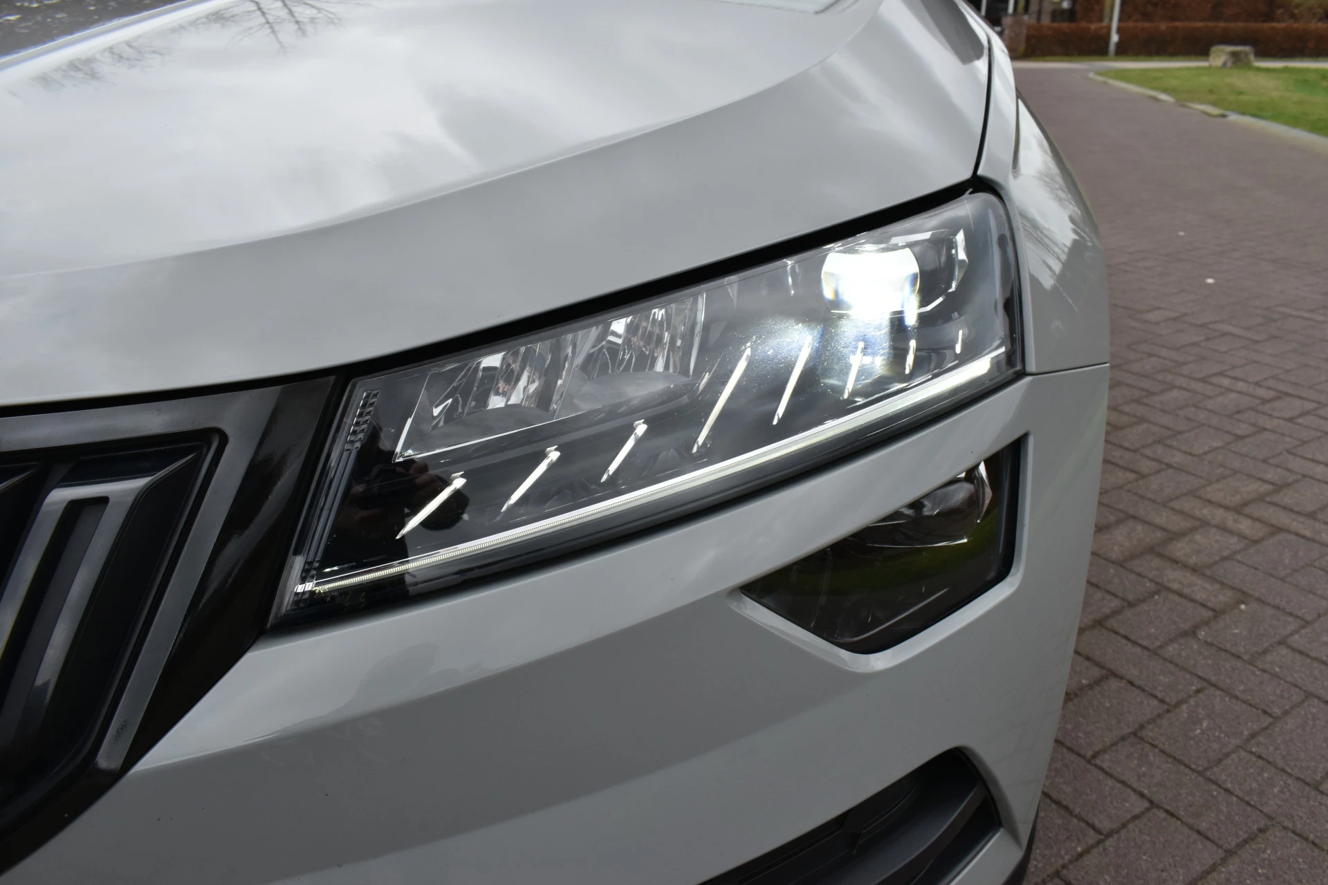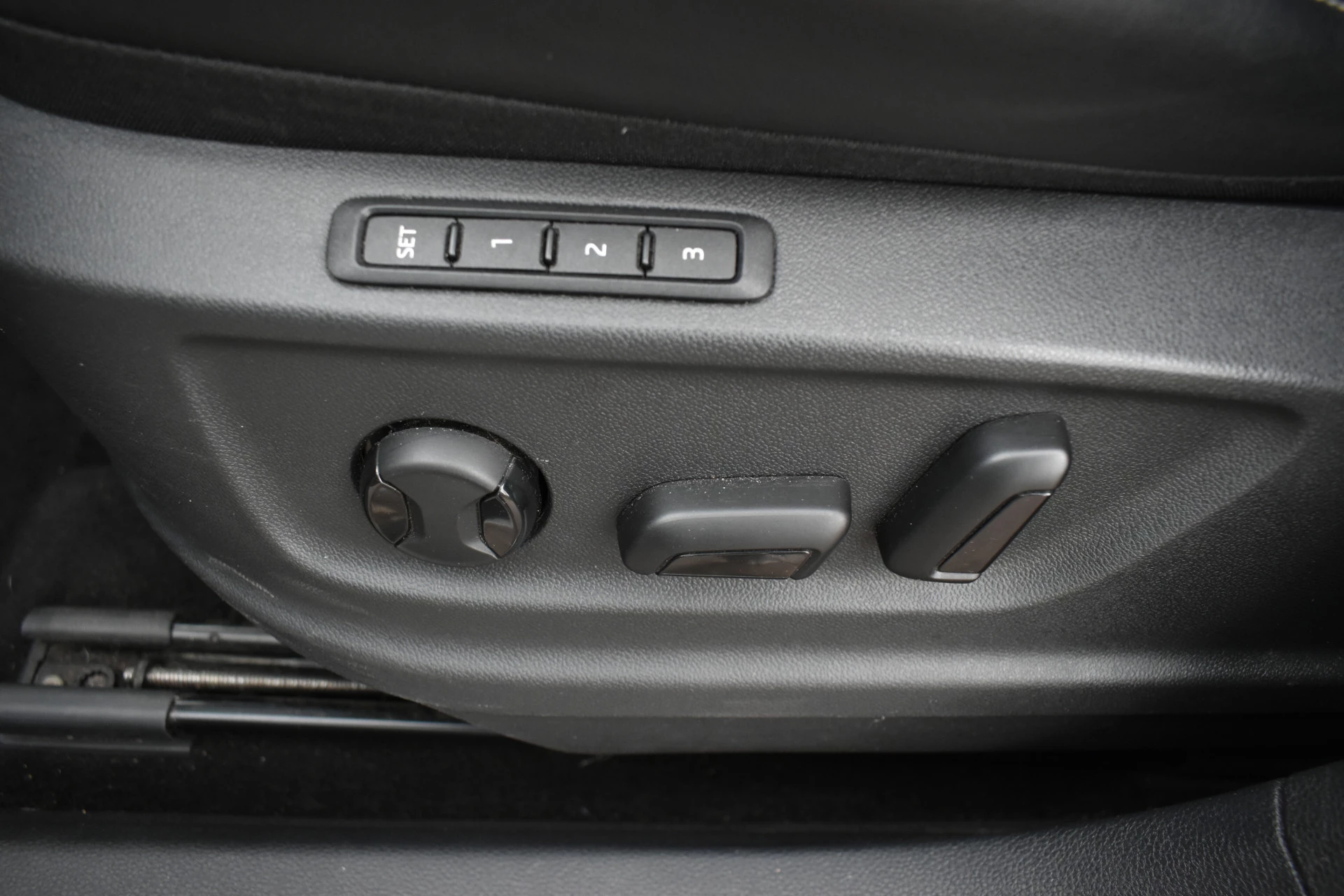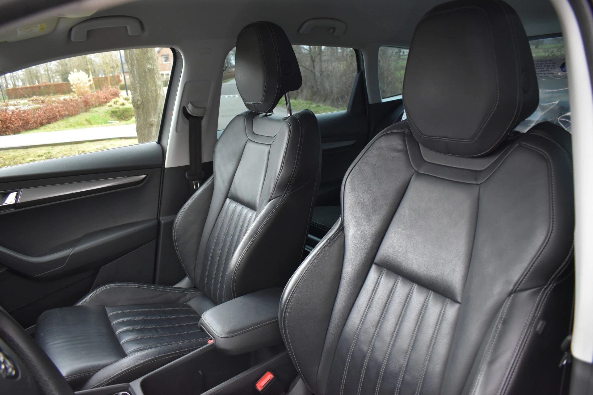 In een Perfecte staat verkerende en Sportieve Karoq met 18'' zwarte sportvelgen, zwart lederen sportinterieur, Elektrisch verstelbare stoelen met 3 geheugen functies,
