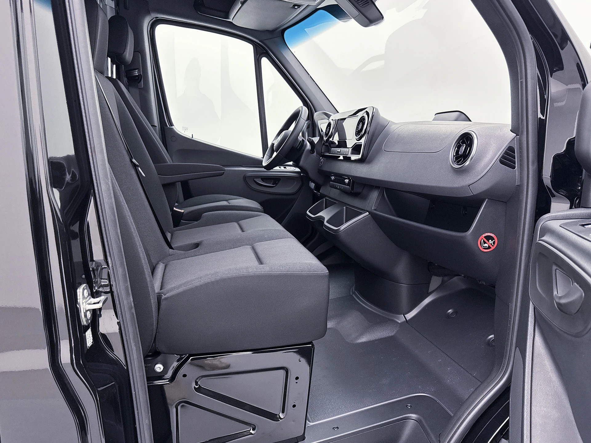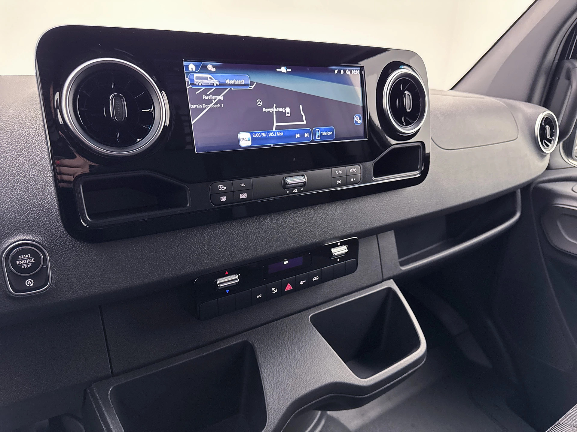 Het interieur biedt plaats aan drie personen met comfortabele antraciet stoffen bekleding, en de automatische centrale vergrendeling maakt het dagelijks gebruik efficiënt. Kortom: deze Sprinter 317 Pro is een betrouwbare, krachtige en slimme keuze voor ondernemers die een veelzijdige bestelwagen zoeken met sterke prestaties en praktische uitrusting. Neem contact met ons op voor een proefrit of meer info!