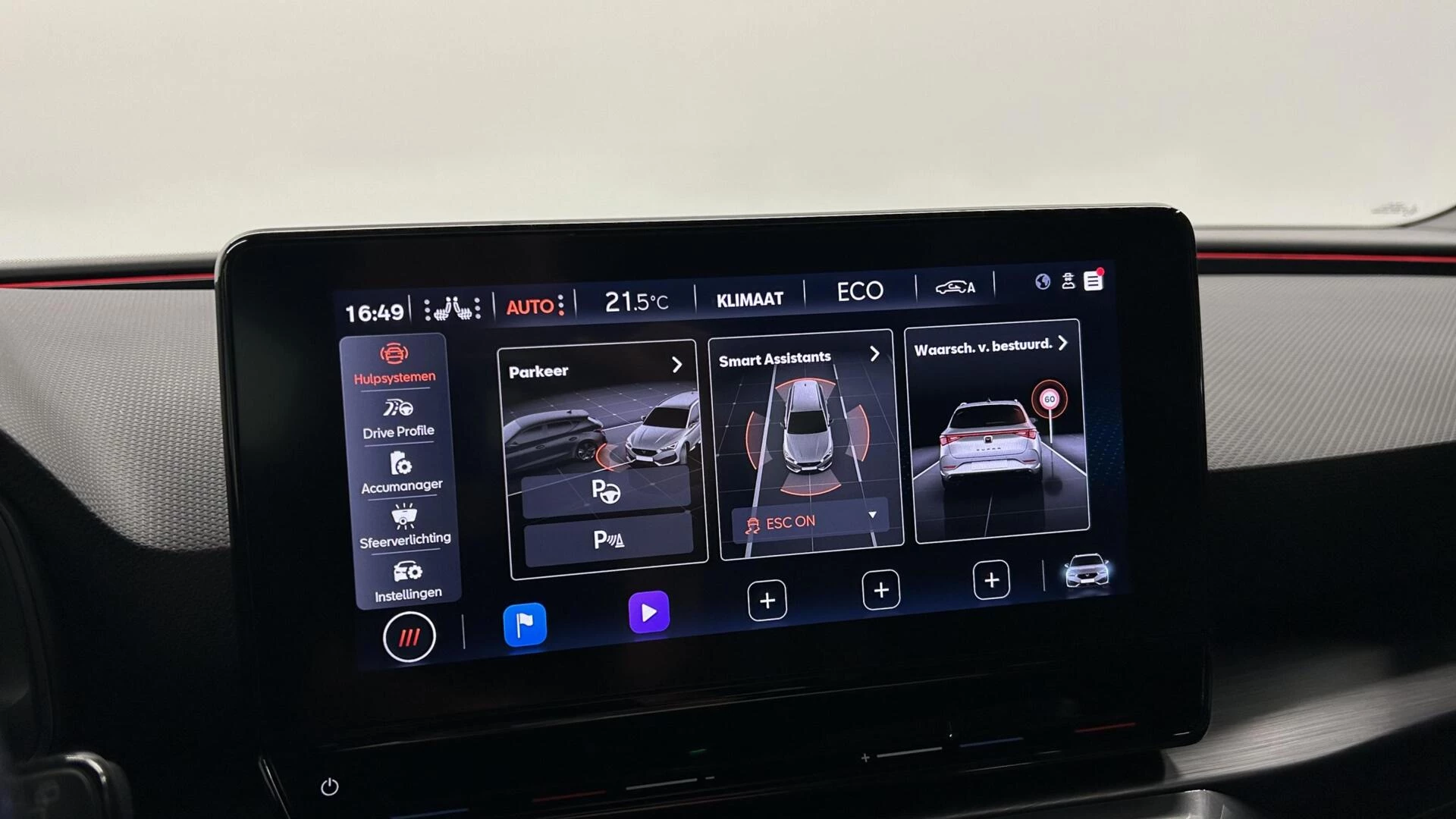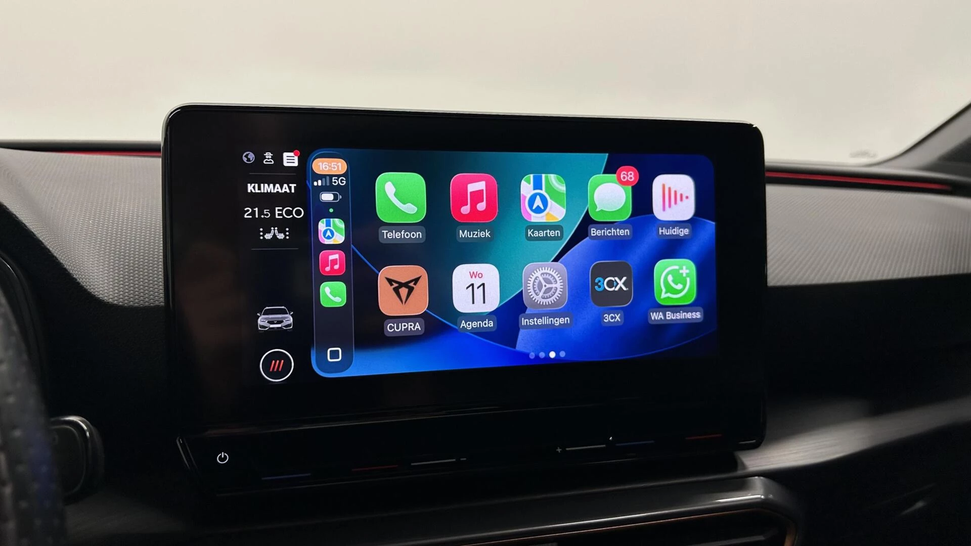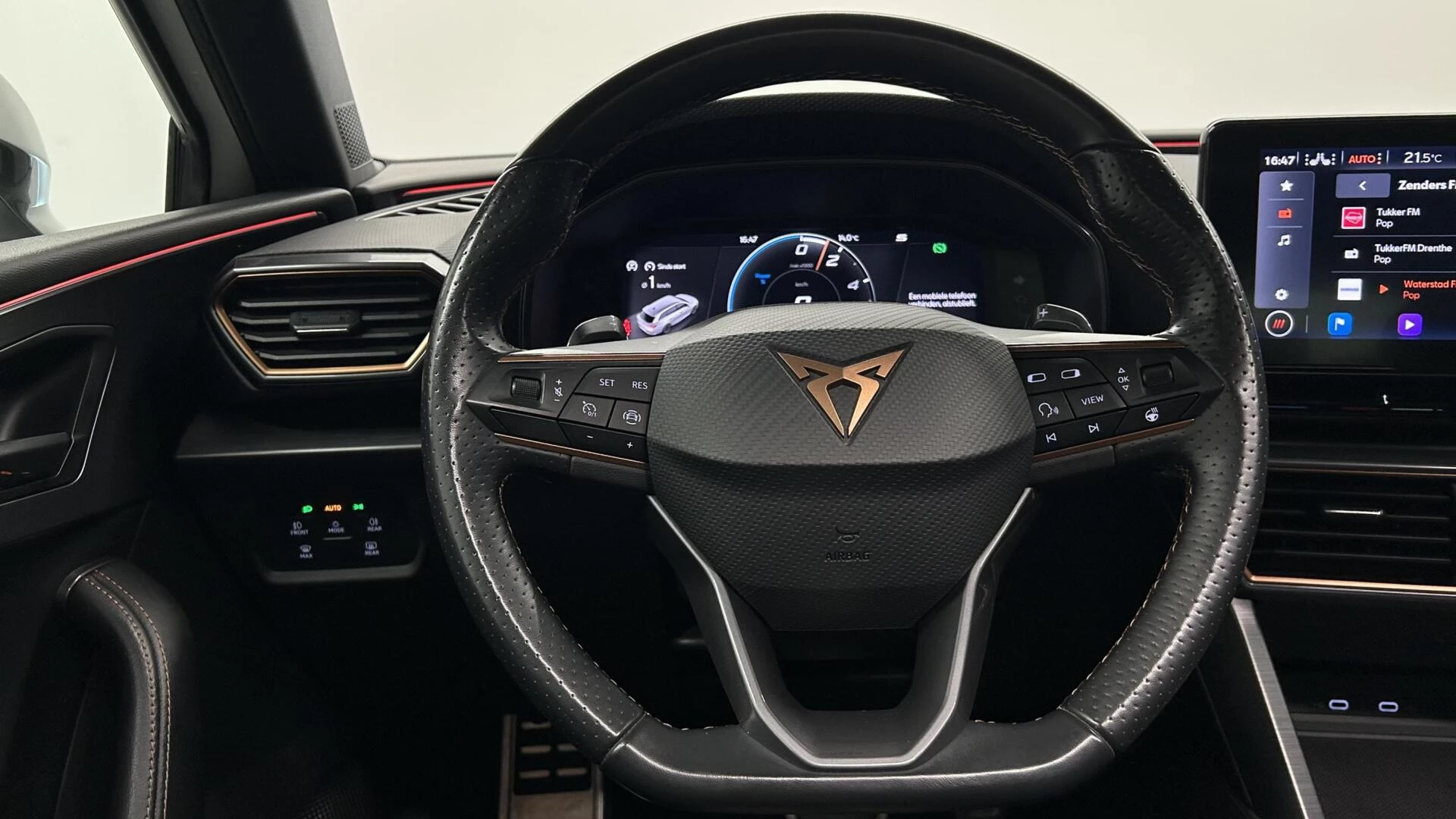Omdat goed geïnformeerd rijden tegenwoordig om veel meer draait dan alleen snelheid en brandstofpeil, laat het digitale dashboard alle functies zien die u nodig heeft. Met adaptive cruise control houdt de auto zelfstandig afstand tot uw voorligger. Een veiligheidsverhogende optie waarmee u comfortabel onderweg bent. Pech oplossen en zelfs voorkomen? Gaat eenvoudig. Via Connected Services heeft u alle data in de hand, gewoon op de smartphone! Het audiosysteem met DAB-ontvangst en het full map navigatiesysteem bedient u veilig met knoppen op het stuurwiel of met gesproken commando's. Ook over uw schouder ziet u onderweg niet alles wat er aan de achterzijde gebeurt. Daarom heeft deze CUPRA Leon Sportstourer een achteropkomend verkeer waarschuwing. Deze CUPRA is voorzien van WIFI-hotspot, electronic climate control, schakelpaddles aan het stuur, parkeersensoren achter, regensensor en keyless entry.