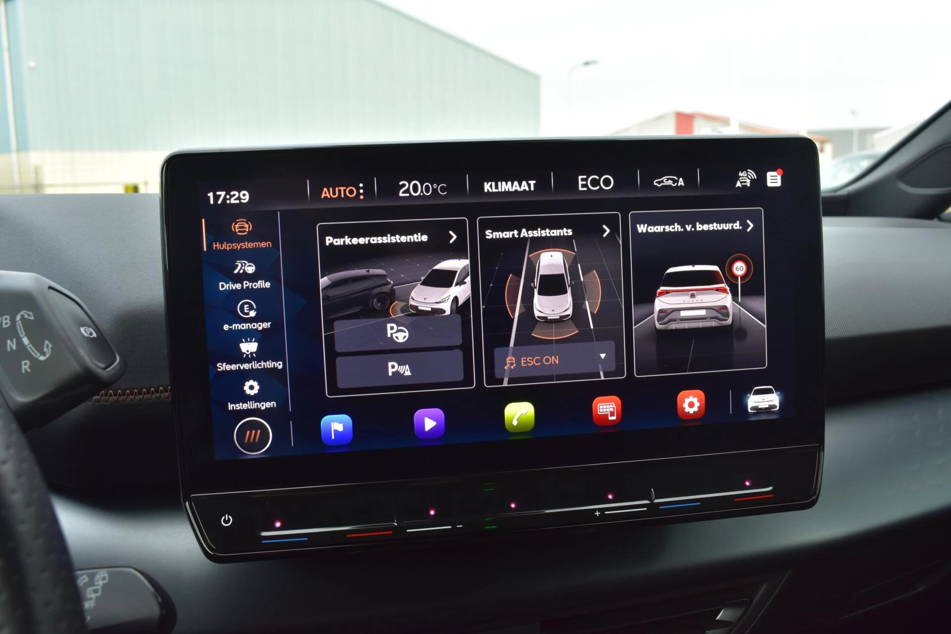 Deze auto is voorzien van innovatieve systemen die u onderweg begeleiden en beschermen. Dat de auto steeds meer taken van de bestuurder overneemt, merkt u bijvoorbeeld aan het systeem voor verkeersbord-detectie in deze auto. Voorzien van het Lane-keeping systeem. Ofwel: blijf automatisch in je baan. Botsingen met een voorligger gebeuren relatief vaak. De forward collision warning slaat tijdig alarm als dat risico ontstaat, zodat u kunt ingrijpen. Bovenop deze veiligheidsfeatures heeft deze CUPRA bovendien vermoeidheidsherkenning, frontale botsbescherming en bandenspanningcontrolesysteem.