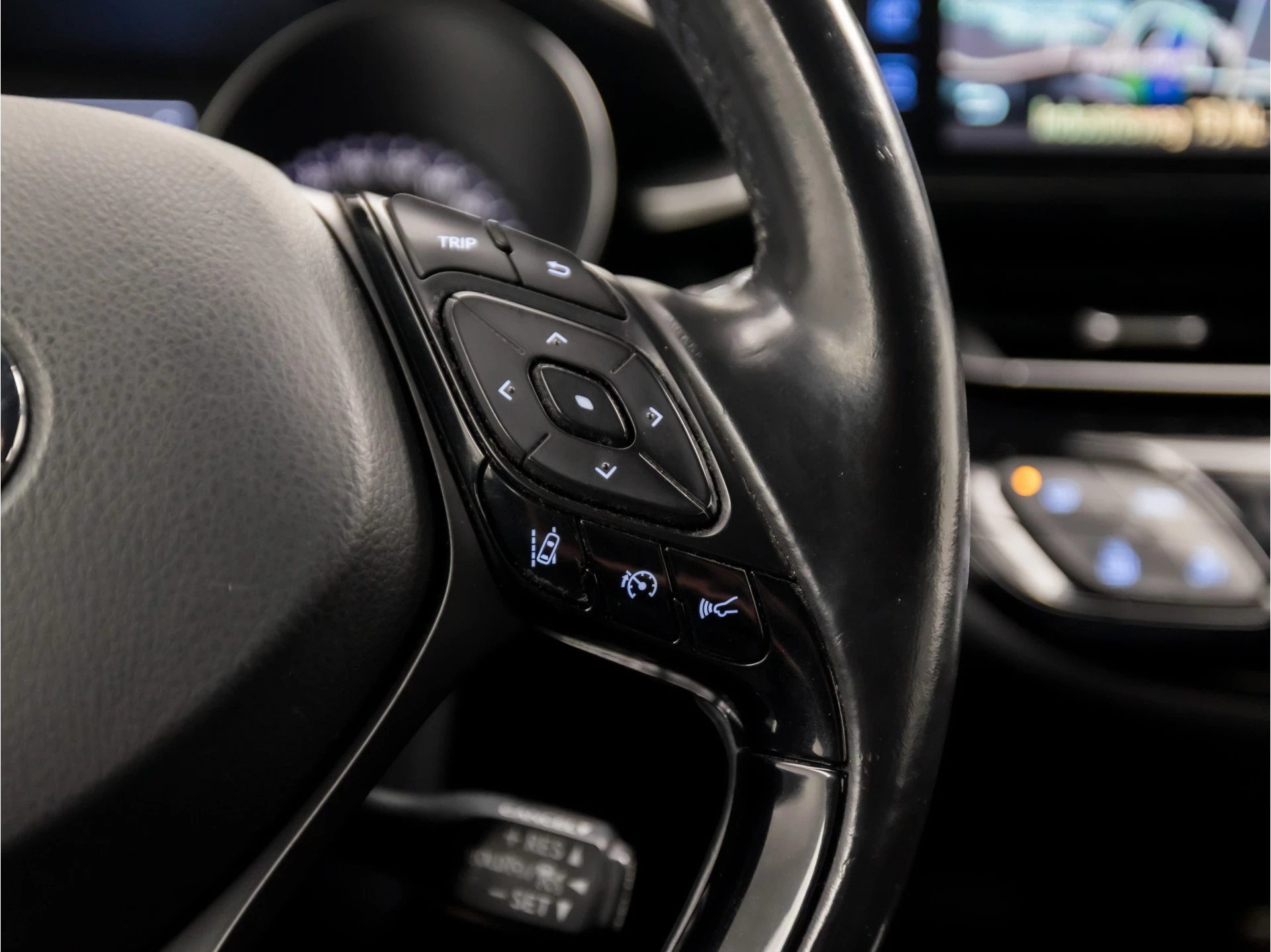 Kommaar-kommaar-kommaar, aldus de achteruitrijcamera. Iedere centimeter vrije ruimte komt haarscherp in beeld. Schadevrij inparkeren maar! Adaptive cruise control is veilig en comfortabel. De snelheidsregelaar houdt automatisch afstand tot het voertuig dat voor u rijdt. Laat u onderweg niet afleiden, de bediening van het audio-installatiesysteem en ook het TomTom navigatiesysteem gaat met knoppen op het stuur. Met de automatische airconditioning selecteert u de gewenste temperatuur. Het systeem doet de rest. Om de veiligheid onderweg te verhogen, heeft deze Toyota zowel een automatisch inschakelbare verlichting als een regensensor aan boord, zodat hij zelf de verlichting en de ruitenwissers kan inschakelen. Extra opties op deze auto zijn: keyless entry, automatisch dimmende binnenspiegel, lederen stuur, isofix-aansluiting, centrale deurvergrendeling met afstandsbediening en boordcomputer.