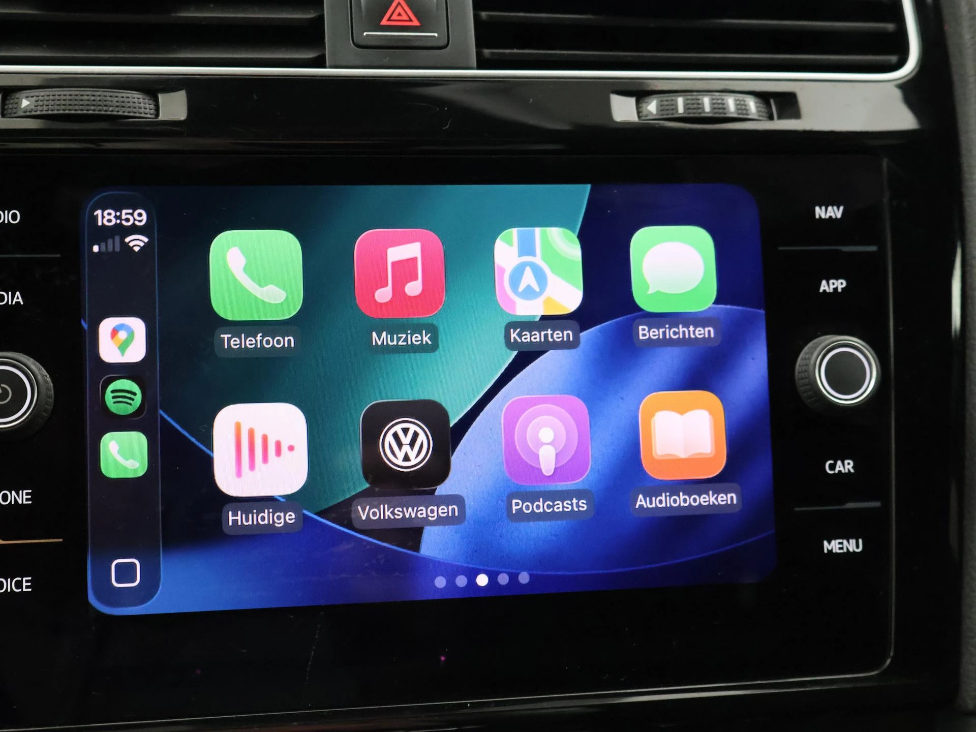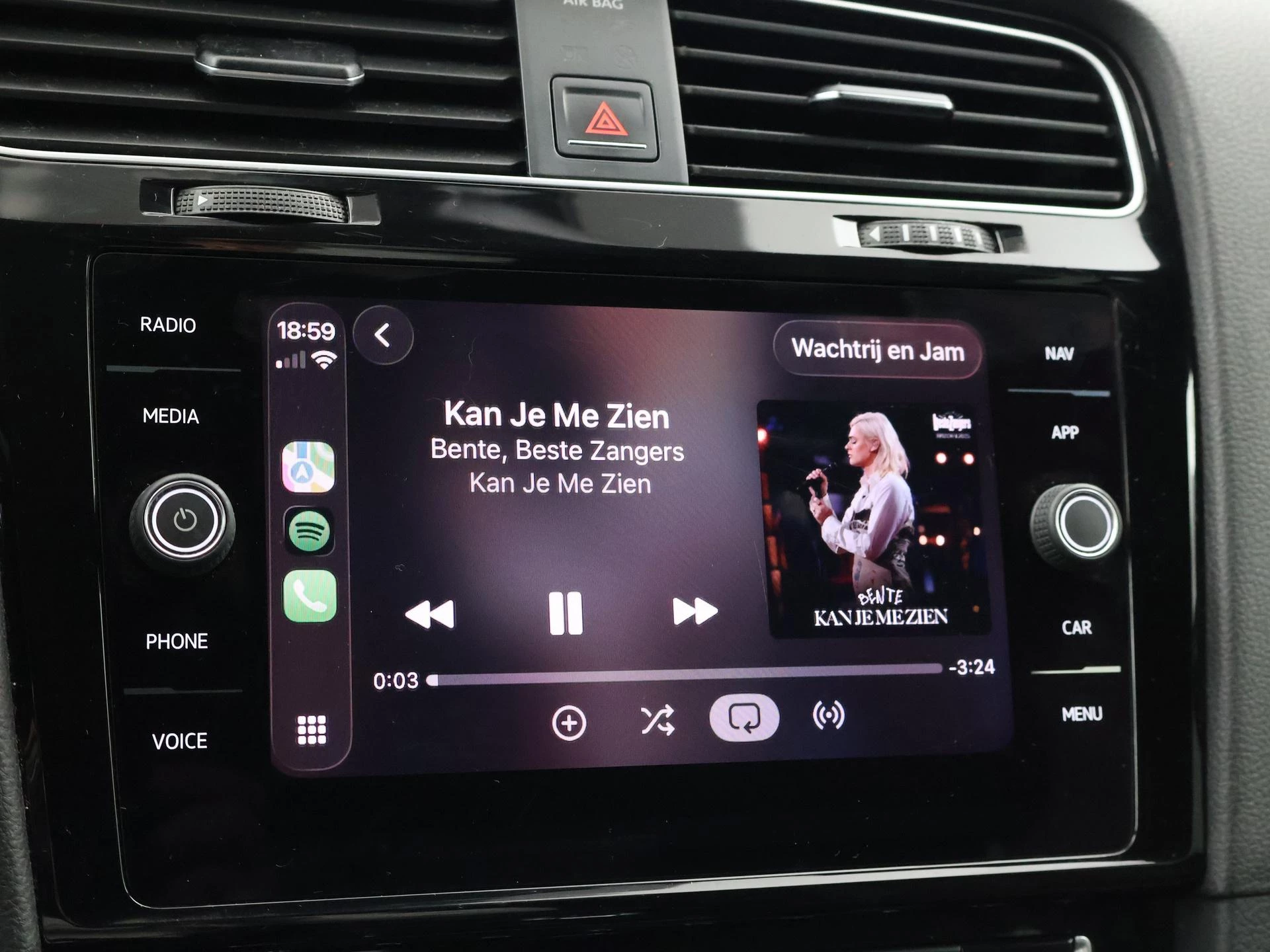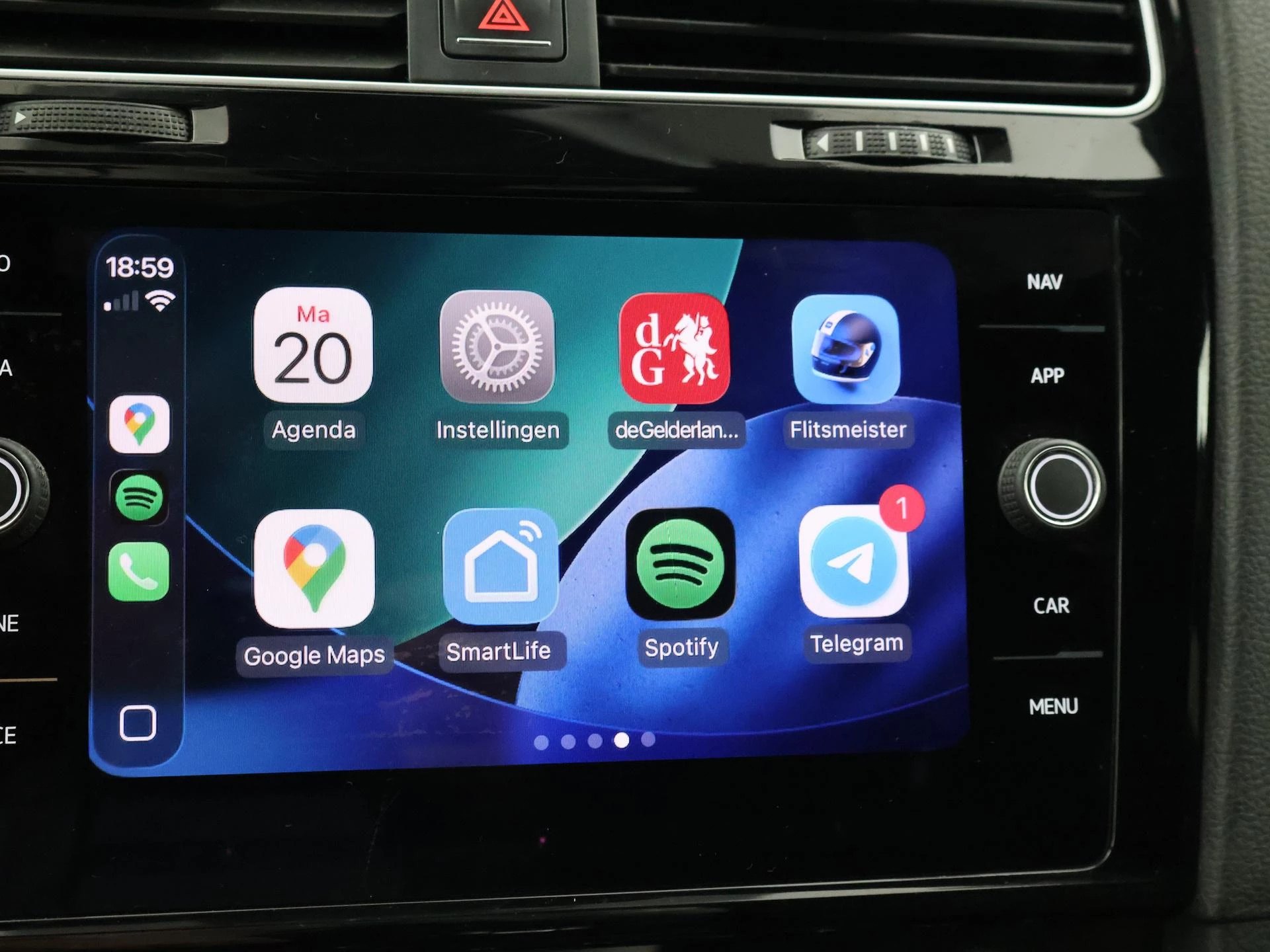 Golf 7 GTI Performance 2.0 TSI 245 PK DSG Automaat 5-deurs in het Deep Black Pearl. De auto is nieuw ingezet bij de fabriek in Wolfsburg, De 0-beurt is uitgevoerd door: Volkswagen AG Wolfsburg staat in het digitaal serviceboek. Daarna onderhouden in Herne, Duitsland en sinds 2020 in Nederland gereden. Panorama schuif/kanteldak, Virtual cockpit digitale cockpit met digitale tellers en navigatie kaartweergave tussen de tellers, Stoelverwarming, 19 inch lichtmetalen velgen, LED koplampen, LED achterlichten, Zwarte hemelbekleding, Privacy glass, Keyless-entry (op de portiergrepen) en keylesss-drive, Sfeerverlichting, zowel in de deurpanelen als in de dorpels. Apple Carplay / Android Auto App Connect appstreaming Google Maps, Flitsmeister, Spotify, Whatsapp etc, Elektrisch inklapbare buitenspiegels, Alarm klasse 3, Navigatie touch-screen, Parkeersensoren voor + achter, Dubbele uitlaat, Achterspoiler, Sportstoelen, Middenarmsteun, Adaptive cruise control met automatisch afstand houden op de voorligger, Vermoeidheidsherkenning, Dodehoek assistentie, Bluetooth met audiostreaming, Spraaksturing, Sportstuurwiel leder, Climate control met links en rechts gescheiden temperatuur.