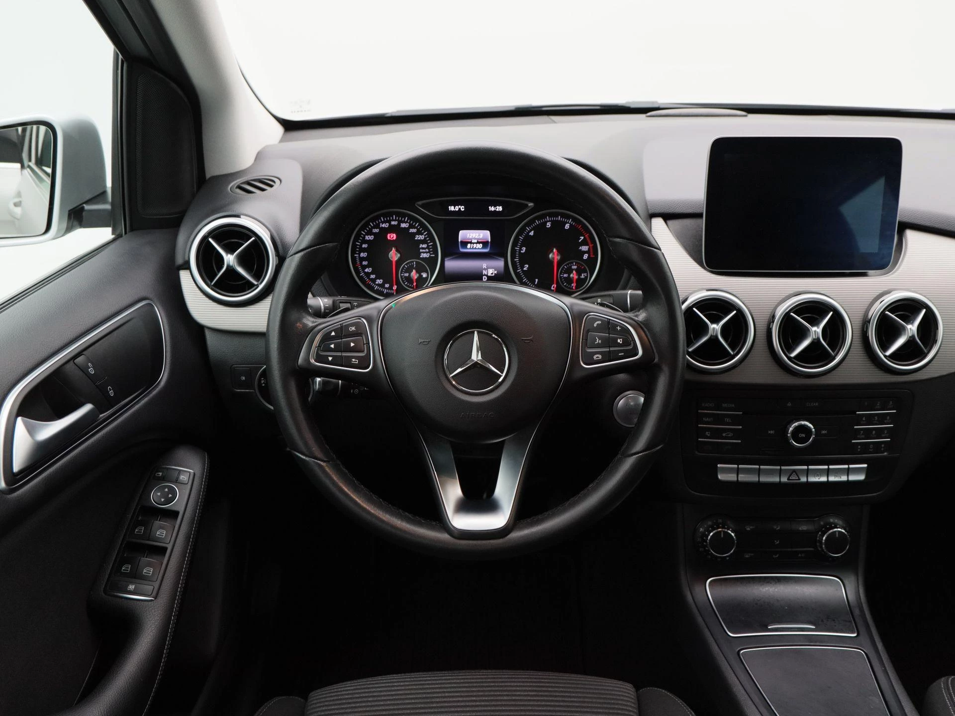 Qua uitstraling combineert de B-Klasse elegantie met sportieve accenten. De Full LED-verlichting, 18 inch lichtmetalen velgen, en strakke carrosserielijnen geven hem een moderne, zelfverzekerde uitstraling. Binnenin zorgt de zwarte stoffen bekleding, het lederen stuurwiel, en de keyless startfunctie voor een stijlvol en verfijnd interieur.