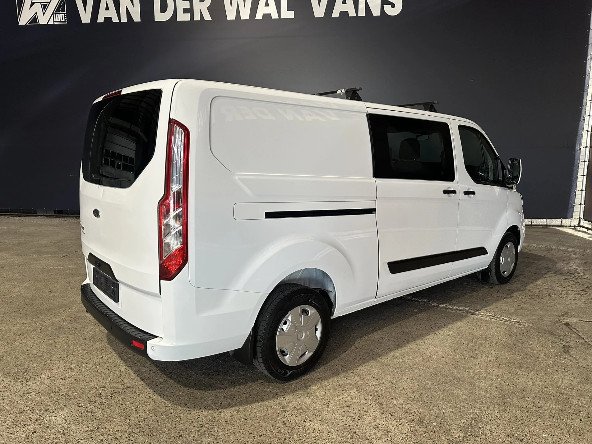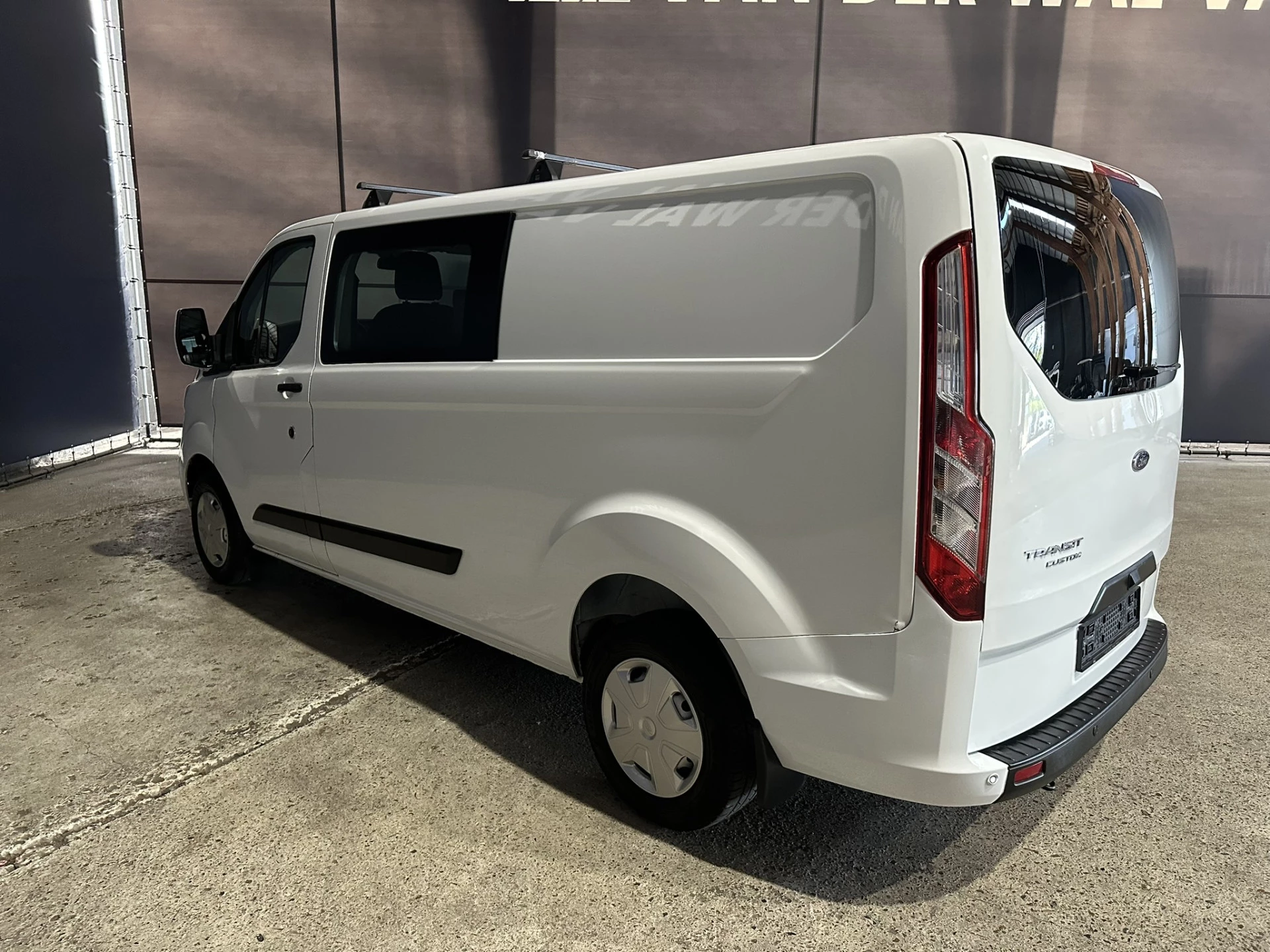 131pk sterke Ford Transit Custom L2H1 Euro6 dubbel cabine met airconditioning, 5 zitplaatsen en inrichting. Dealer onderhouden en tevens voorzien van camera, cruisecontrol, LED, parkeersensoren, stoelverwarming, achterklep, dakdragers en bluetooth telefoonvoorbereiding.