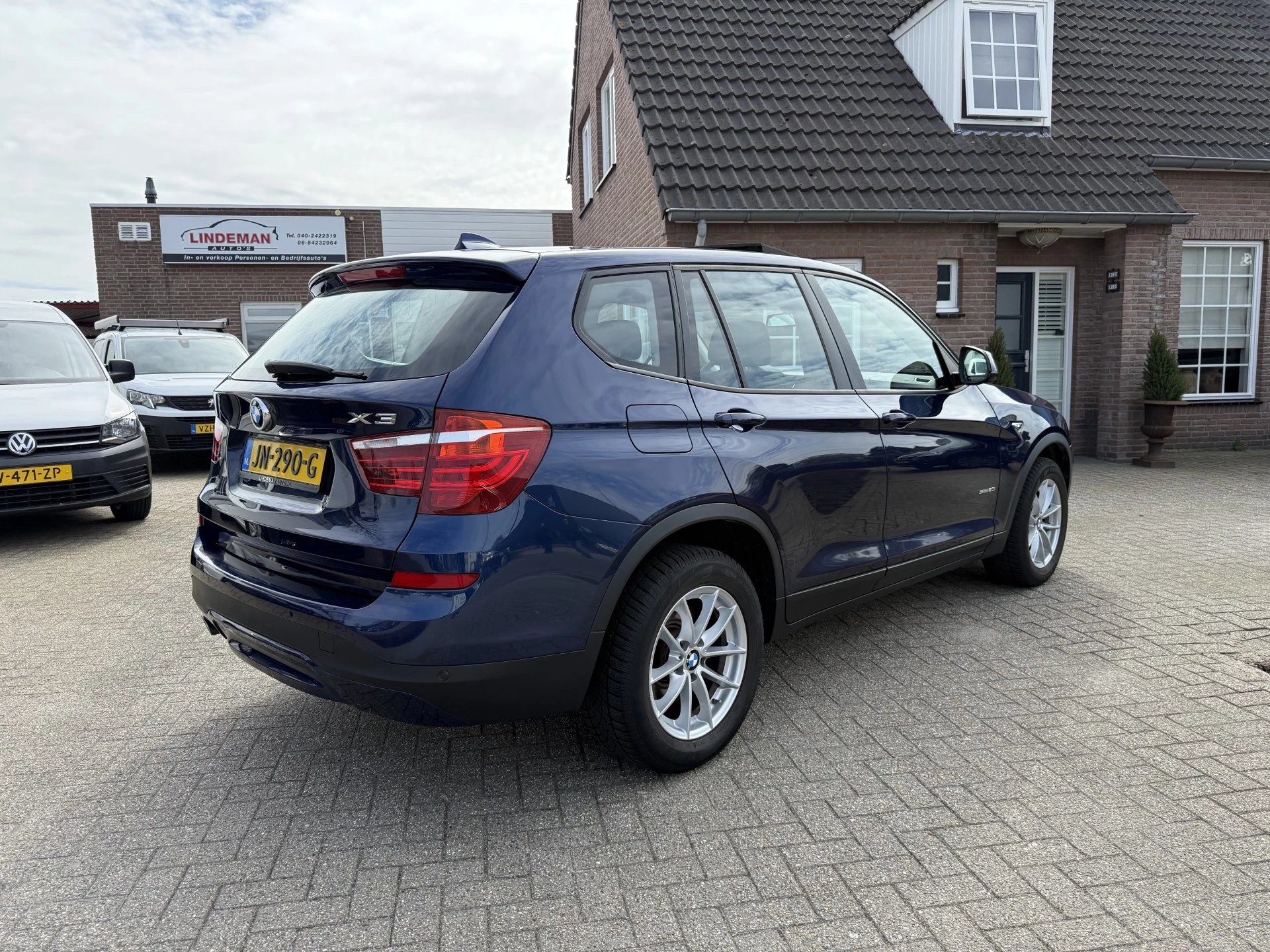 Fijn, zo'n trekhaak. Maar niet constant nodig. Daarom heeft deze BMW X3 een elektrisch inklapbare trekhaak. Deze BMW X3 is 'connected'. Belangrijke functies worden permanent gemeten en zijn uit te lezen via een speciale app, ook op afstand. Bij het wisselen van rijbaan kan een dode hoek ontstaan waardoor achterliggers te dichtbij kunnen komen. De achteropkomend verkeer waarschuwing geeft in dat geval automatisch een signaal. De automatische airconditioning zorgt voor een behaaglijk klimaat in de auto. Even switchen naar de verkeersinformatie? Ook dat kan met één druk op de knop van de audiobediening op het stuur. De uitrusting van deze auto is met parkeersensoren achter, regensensor, cruise control, automatisch dimmende binnenspiegel, isofix-aansluiting en centrale deurvergrendeling met afstandsbediening behoorlijk compleet.