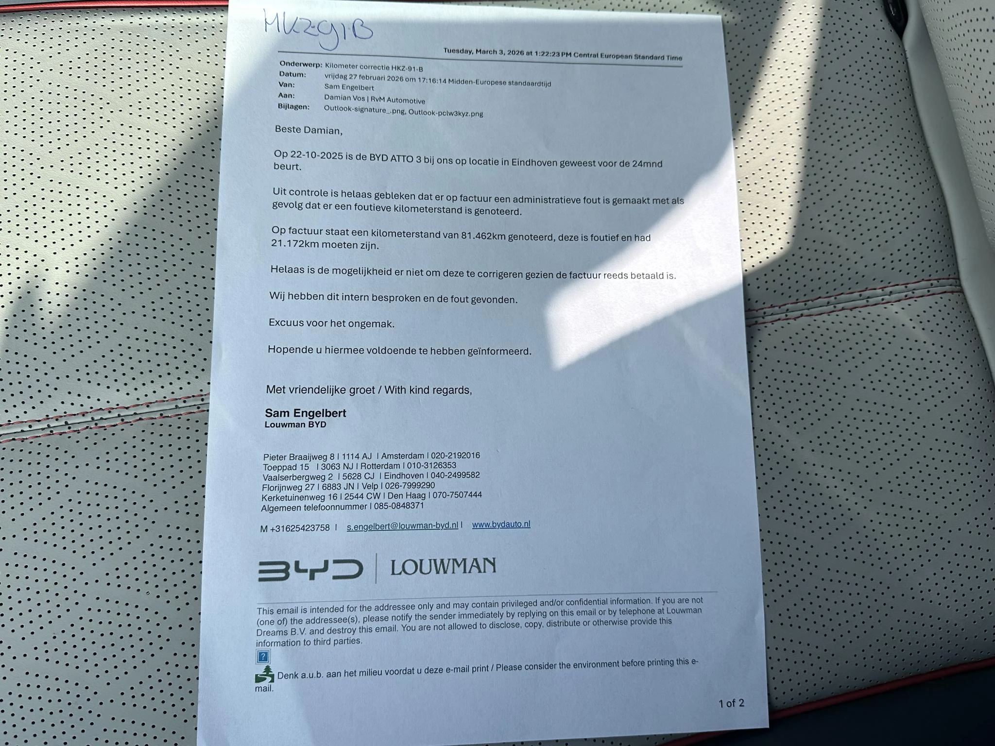 Wij hebben deze BYD Atto 3 zelf geïmporteerd uit Duitsland en inmiddels op Nederlands kenteken gezet. Via een vaste relatie hebben wij deze auto zorgvuldig ingekocht.