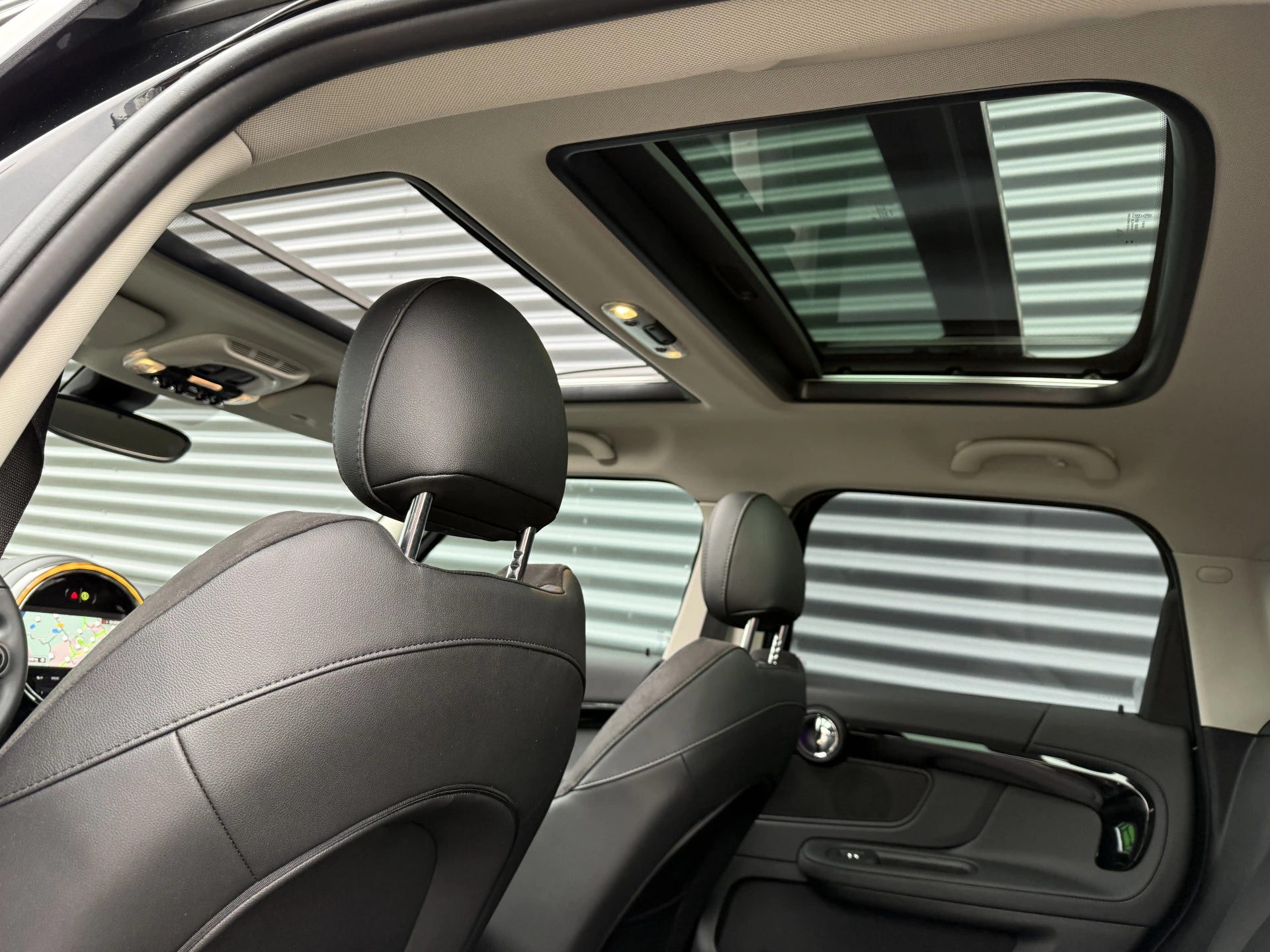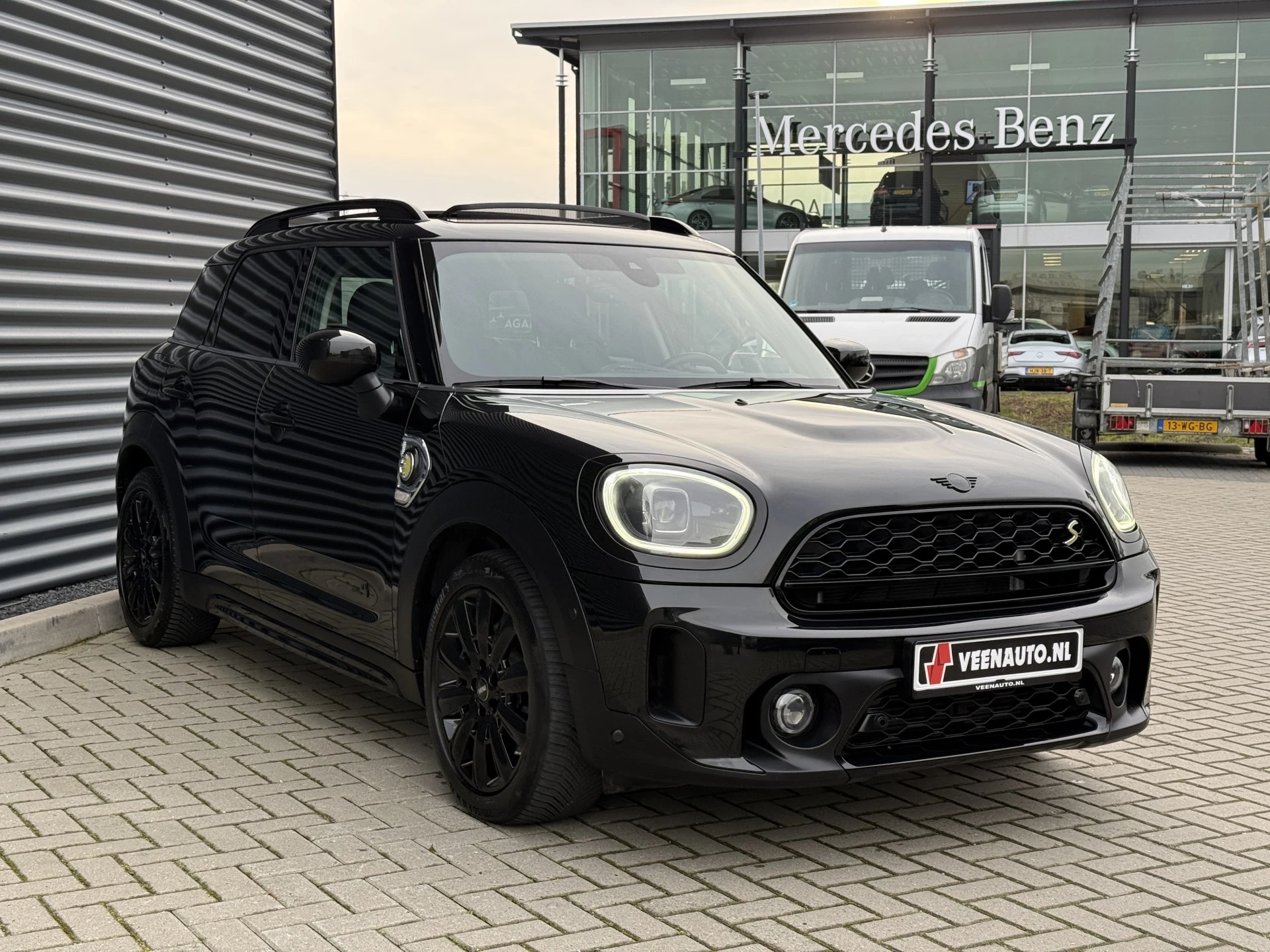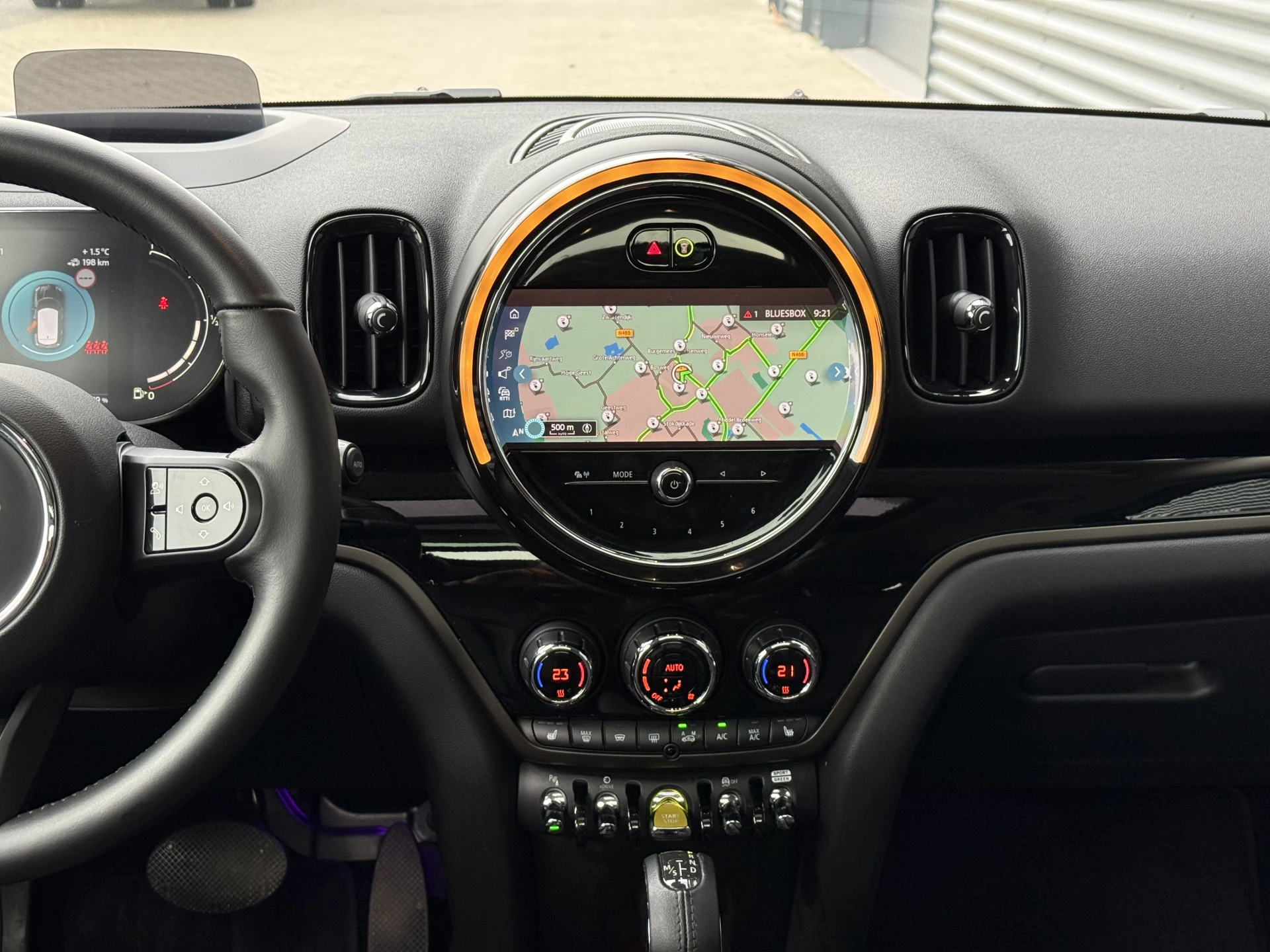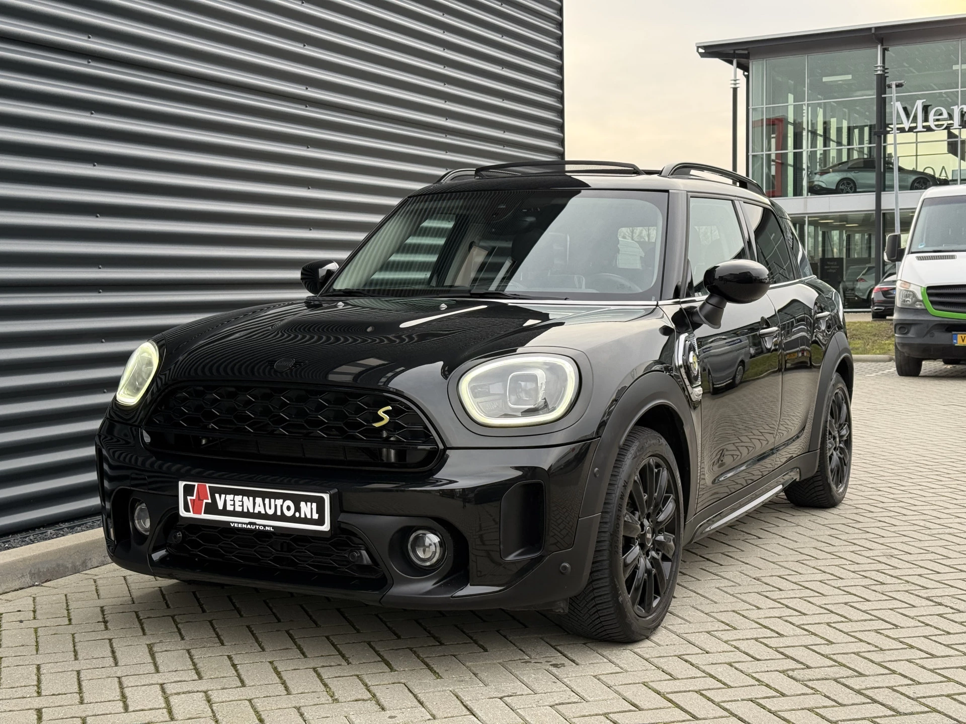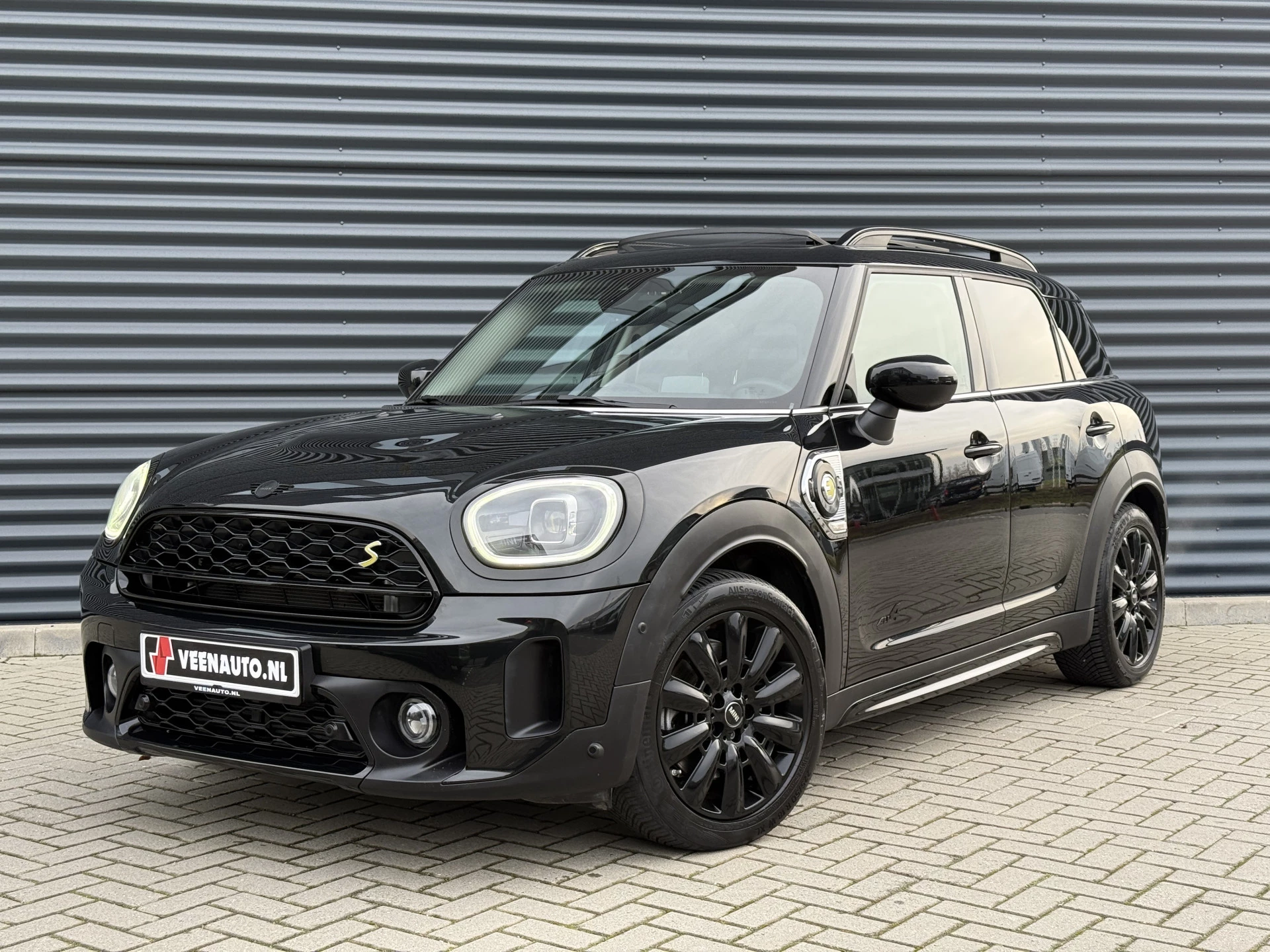 Schitterende Mini Countryman 2.0 Cooper SE ALL4 Plug in Hybrid in Midnight Black metallic met 18 inch hoogglans zwarte licht metalen velgen. Deze Mini is bijzonder compleet uitgerust met onder andere de volgende opties: Panorama dak, elektrische bedienbare voorstoelen met memory, lederen bekleding, Harman Kardon Audio, LED interieur sfeer verlichtingspakket, Apple Carplay, achteruitrijcamera, navigatie, virtuele cockpit, Head Up display, adaptieve cruise control, keyless entry, parkeersensoren voor + achter met parkeer assistent, etc..