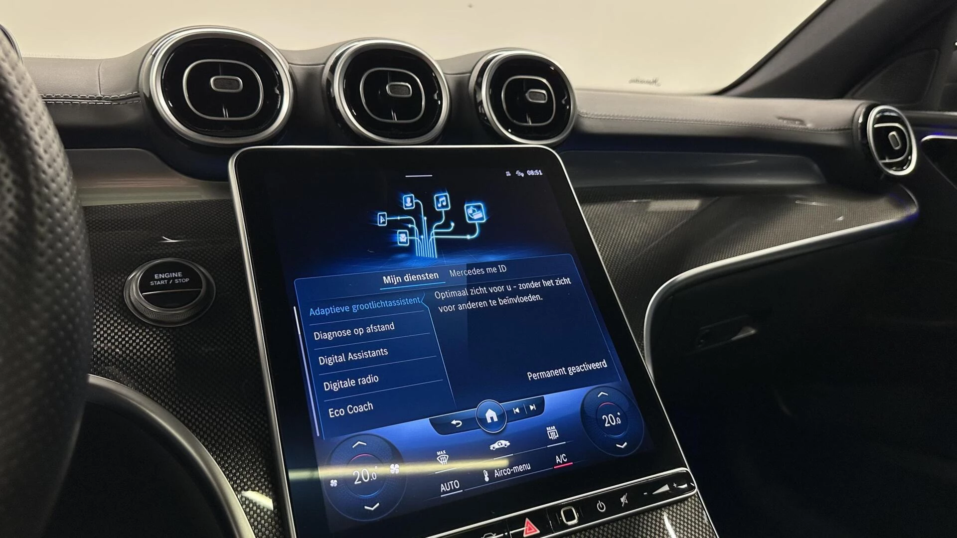 Het slim uitgedachte digitale dashboard toont alle essentiële ritinformatie in één oogopslag. Het inventieve 360 graden camerasysteem op deze auto heeft de functie om u assistentie te bieden in nauwe ruimtes en straten, waar het achteruit rijden vaak een uitdaging is. Als u de adaptive cruise control inschakelt, regelt de auto zelf de snelheid en de afstand tot de auto voor u. Na een lange werkdag in de file: daar zit niemand op te wachten. Gelukkig helpt de file assistent een handje. Het radarsysteem meet de ruimte tot de voorligger en bewaakt de juiste afstand. Stilstaan? Dan remt en stopt de auto vanzelf. De speciale app verbindt met Connected Services, die de status van vitale functies bijhoudt en waarschuwt als u bijvoorbeeld moet tanken, de bandenspanning moet controleren of olie moet bijvullen. Met dashboard met spraakbediening, full map navigatiesysteem, automatische airconditioning, draadloos opladen, DAB ontvangst en regensensor is deze Mercedes helemaal compleet.