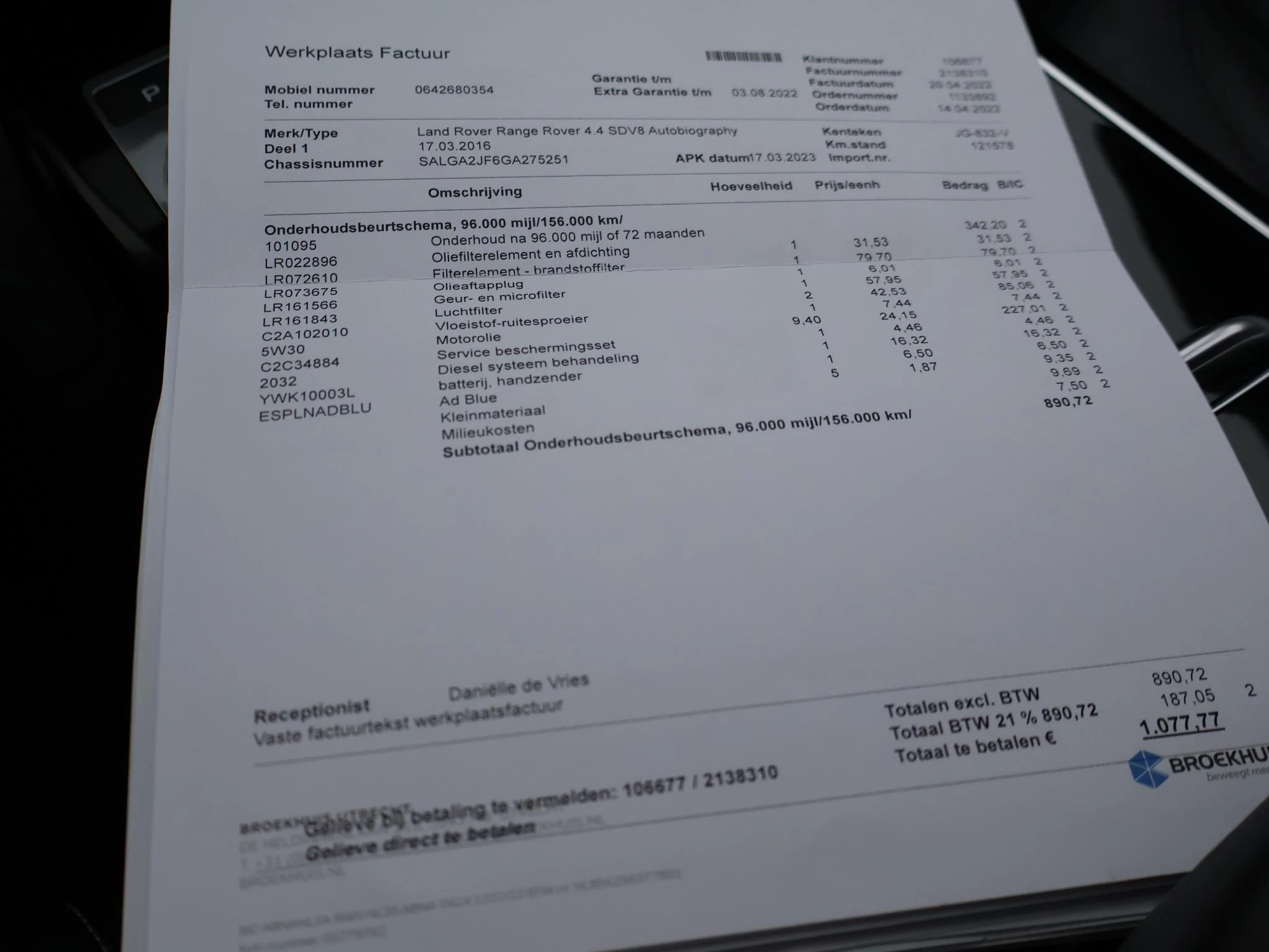 Origineel Nederlandse Range Rover 4.4 SDV8 340 PK Diesel automaat Autobiography uitvoering met een RDW nieuwprijs van 201.697 euro, Bijzonder compleet, Corris Grey metallic met Ebony Semi Aniline geperforeerd leder interieur, Entertainment pakket achterin met 2 schermen origineel vanaf fabriek, Adaptive cruise control, Panorama schuif/kanteldak, Wegklapbare trekhaak met 3500 kg trekgewicht op kenteken, Sfeerverlichting interieur met verschillende kleuren, Meridian Super Premium audio met 2500 watt, Koelkast in de middenarmsteun, Stoelventilatie vooor + achterin, Stoelverwarming voor + achterin, Massagestoelen, Dual screen die vanaf de bestuurder een ander beeld geeft dan vanaf de bijrijder, Stoelverwarming voor + achterin, Privacy glass, Zwart dak origineel vanaf fabriek, 22 inch lichtmetalen velgen origineel vanaf fabriek, Digitale cockpit, Zwarte alcantara hemelbekleding, Achteruitrijcamera, Elektrische achterklep, Voorruitverwarming, Standkachel met afstandsbediening, Elektrisch uitschuifbare treeplanken, Stuurwielverwarming, Elektrische stoelverstelling met geheugen, Elektrische stuurverstelling, Elektrische stuurwielverstelling, Leder dashboard, Dakrailing, Elektrisch inklapbare buitenspiegels.