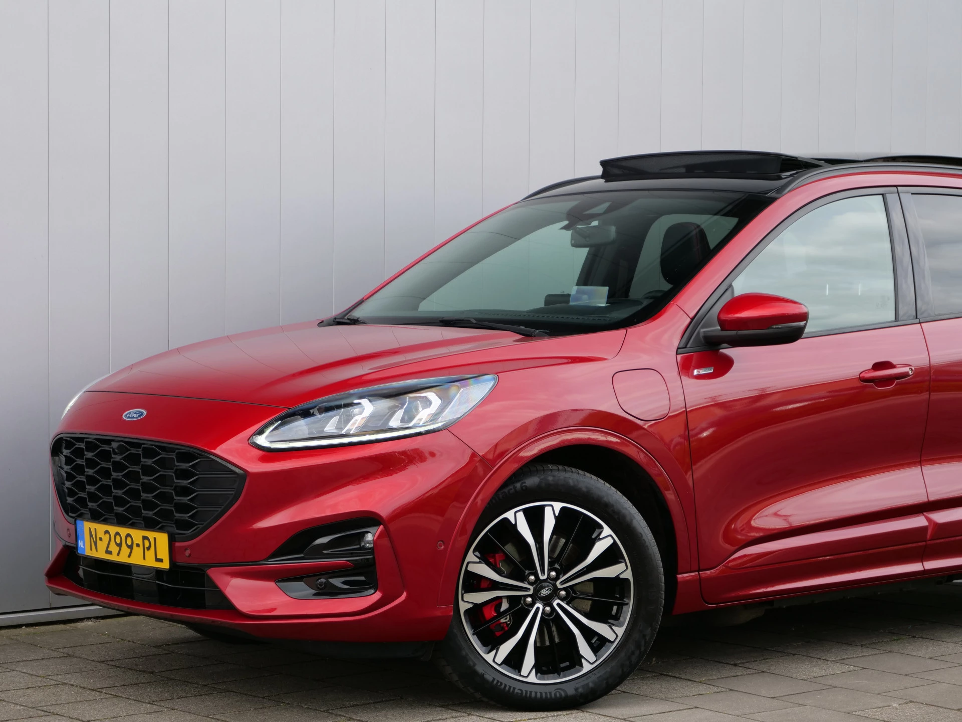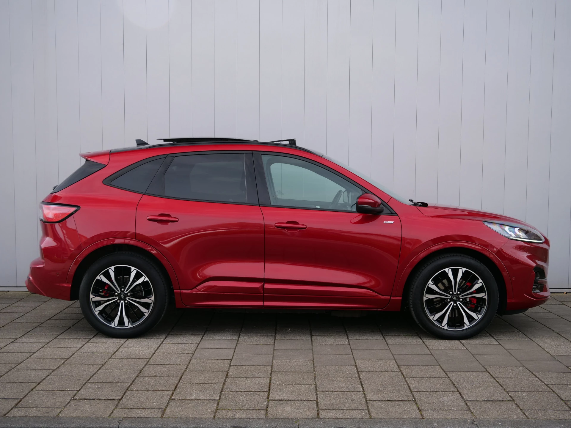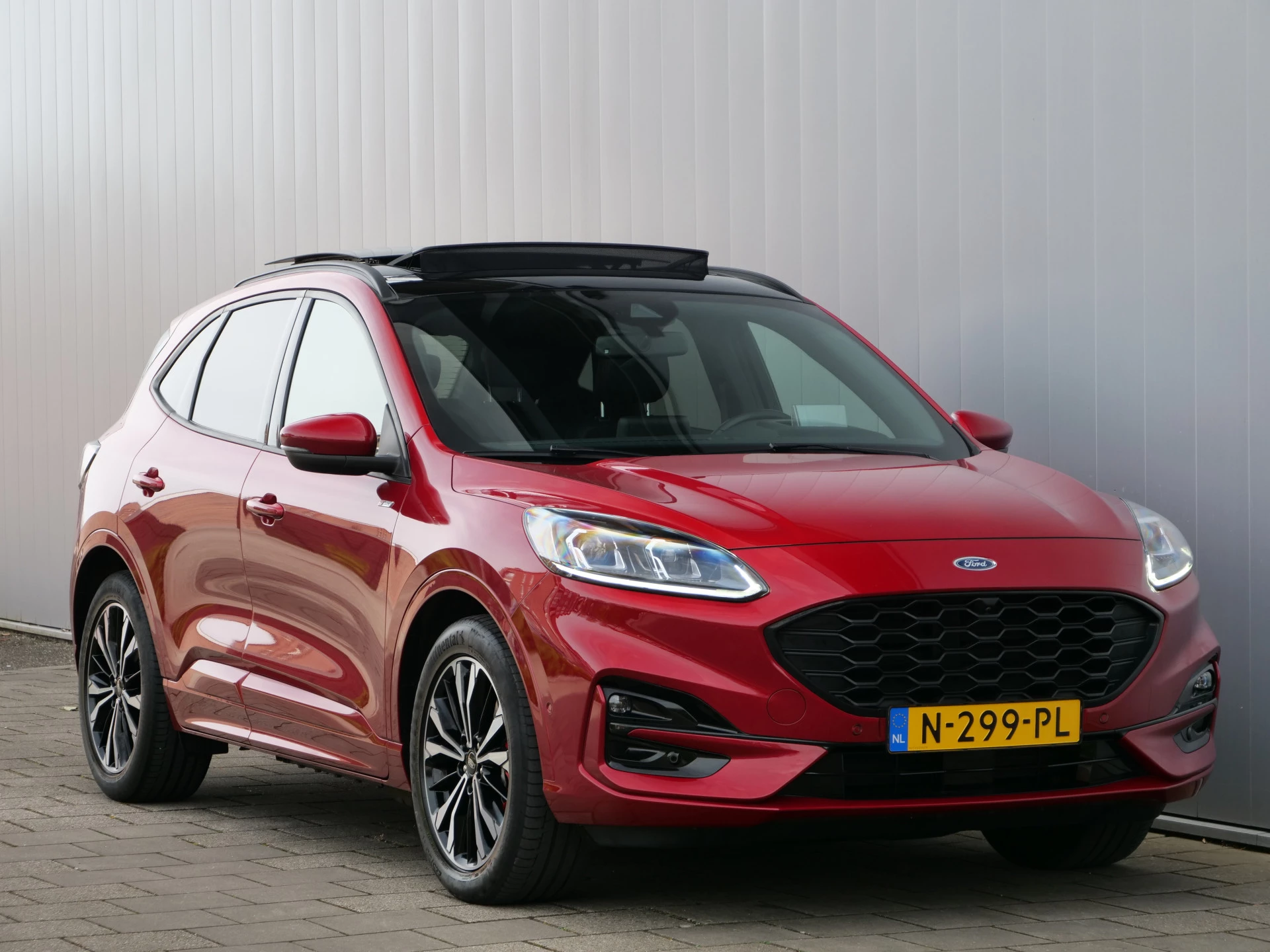 Combineer de functionaliteit van een gezinsauto met de prestaties van een sportwagen, en je krijgt deze sportieve Ford Kuga. Met de pittige benzinemotor en de automatische transmissie is autorijden een waar genoegen. Voorin is het 's winters genieten met de verwarmbare voorstoelen voor zowel bestuurder als bijrijder. Laat die bochten maar komen! In de sportstoelen zitten u en uw bijrijder altijd goed! Licht, lucht, ruimte en gemak wordt verzorgd door het elektrisch bedienbare glazen panoramadak. De bagageruimte is toegankelijk via een comfortverhogende elektrische achterklep. Luxepaardjes en levensgenieters worden enthousiast van de verwarmde achterbank. Tot de uitrusting behoren ook 19 inch lichtmetalen velgen, LED koplampen, geluidsisolerende ramen, in delen neerklapbare achterbank, LED-achterlichten en sportuitlaat.
