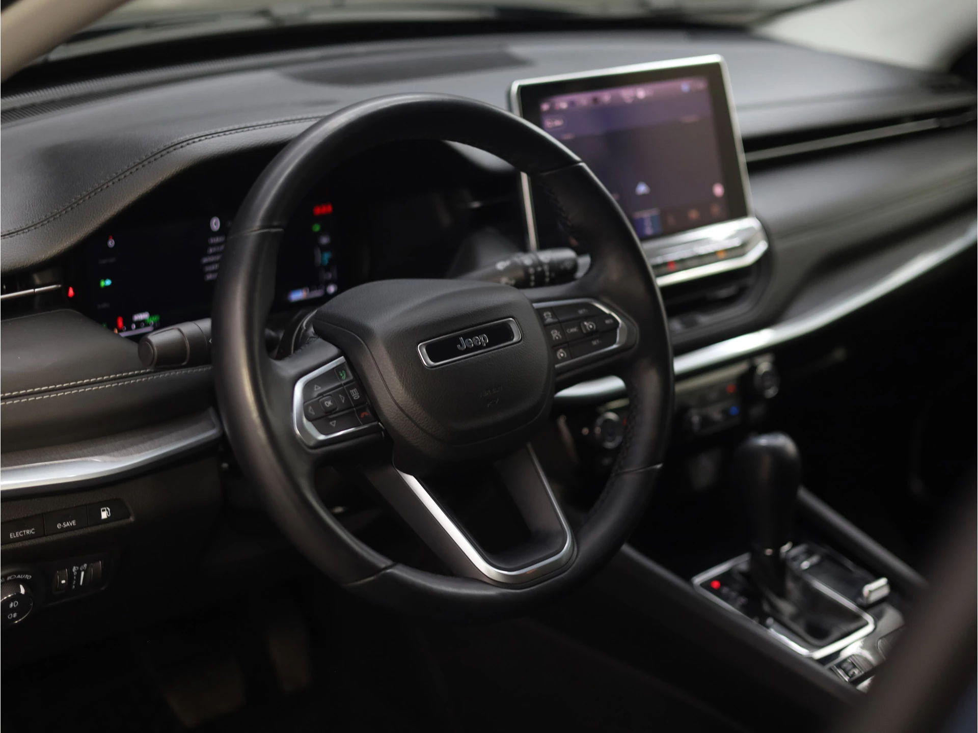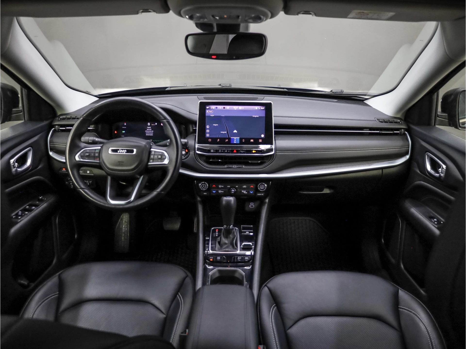 Dankzij het digitale dashboard in deze auto kan u de interface van uw cockpit personaliseren. Alles vrij achter? De achteruitrijcamera laat het meteen zien. Adaptive cruise control is een comfortabele en veilige optie. Het systeem reguleert de snelheid en houdt automatisch afstand tot uw voorligger. Connected Services zorgen ervoor dat de belangrijkste functies en data van de auto altijd en overal te checken zijn. Gewoon via de app op de smartphone. Het full map navigatiesysteem en het audiosysteem (met DAB-ontvangst!) bedient u met knoppen op het stuur. Deze Jeep is voorzien van automatische airconditioning, draadloos opladen, regensensor, keyless entry, automatisch dimmende binnenspiegel en lederen stuur.