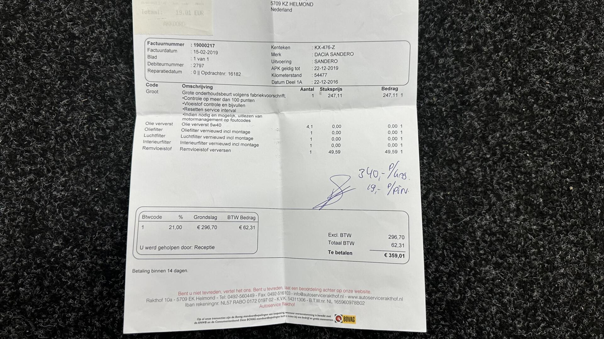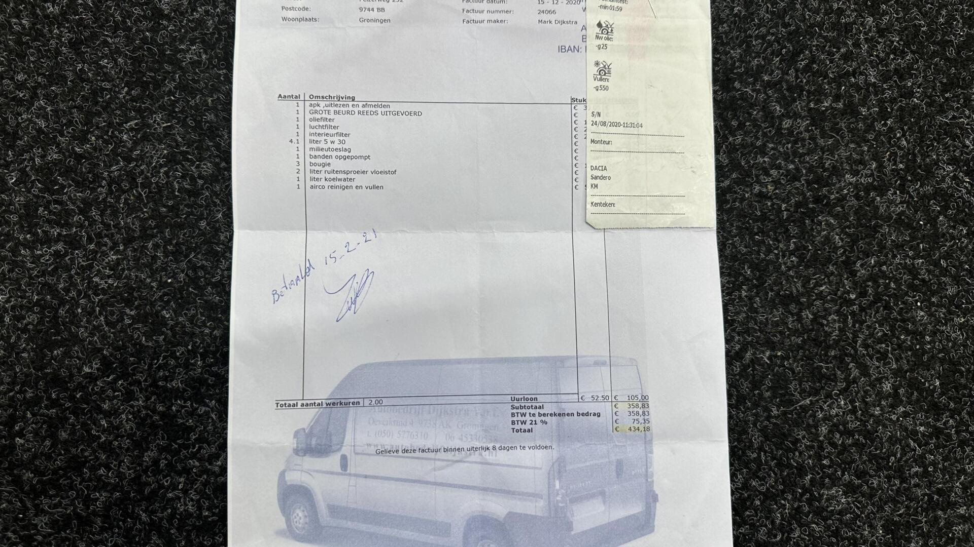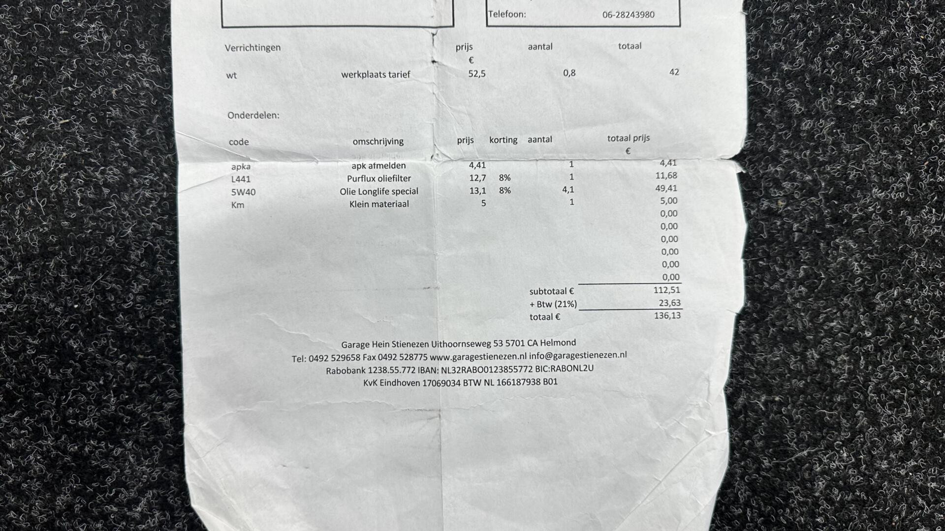 Inclusief onderhoudsbeurt.