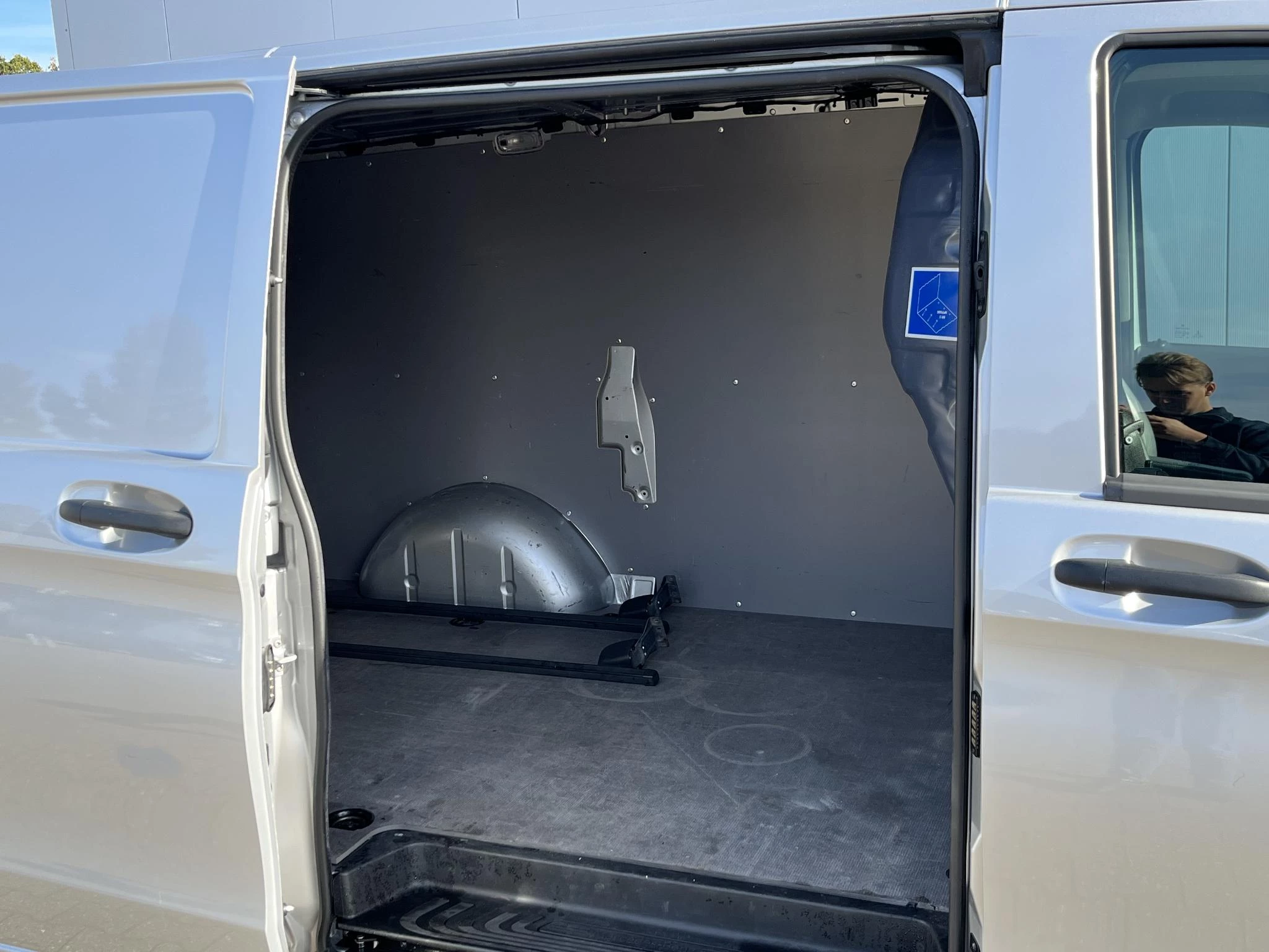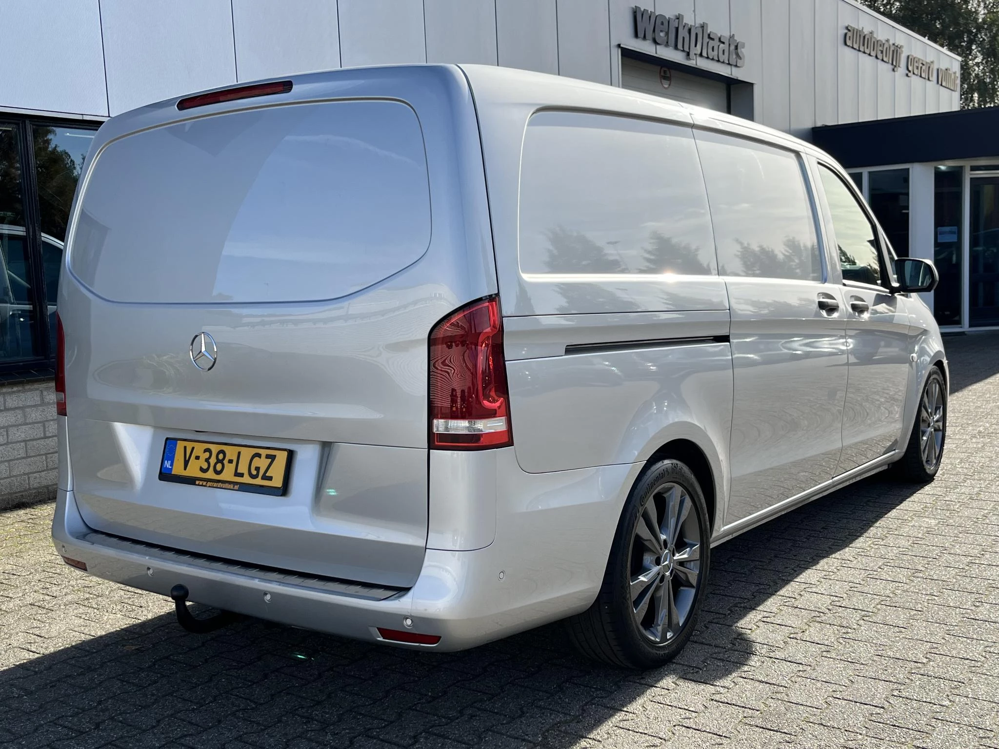 Deze bedrijfsauto is voorzien van een trekhaak en mag 2.500kg trekken.