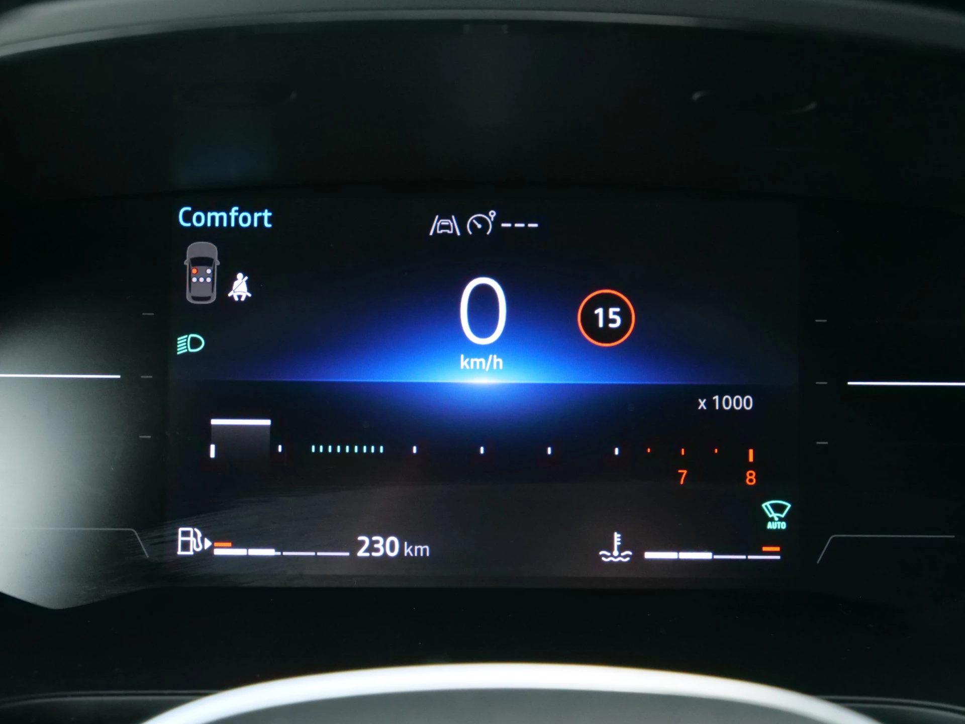Aan boord van deze Renault houden verschillende geavanceerde systemen voor u de weg in de gaten. Ze waarschuwen u voor noodsituaties en kunnen in een aantal gevallen ook zelf ingrijpen. Het forward collision warning-systeem berekent via een sensor de afstand tot het verkeer vóór u en komt in actie als er gevaar bestaat van een botsing. Ook is deze auto uitgerust met een systeem dat u waarschuwt wanneer u achter het stuur in slaap dreigt te vallen. Bovenop deze veiligheidsfeatures heeft deze Renault bovendien hill hold functie, brake assist en bandenspanningcontrolesysteem.