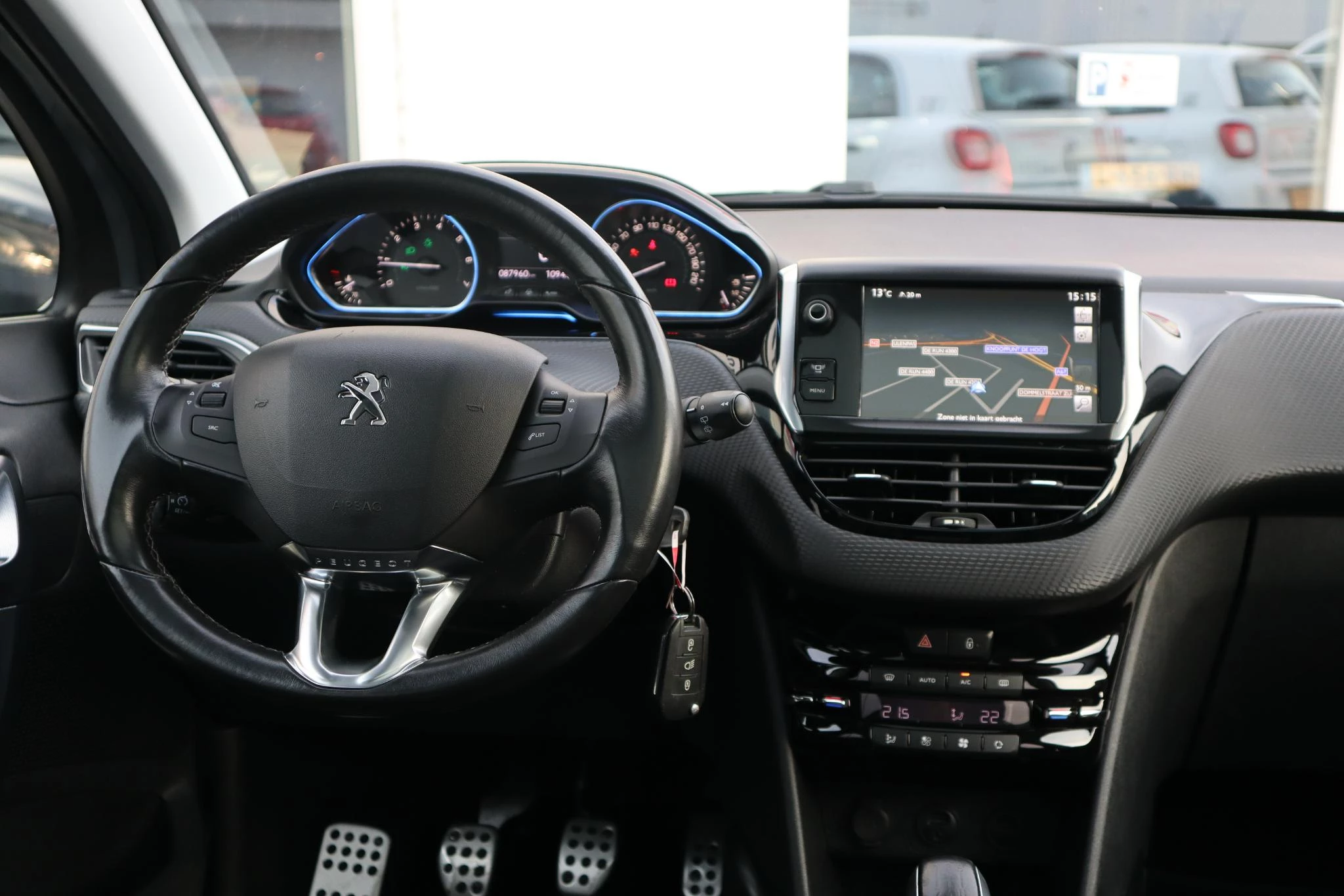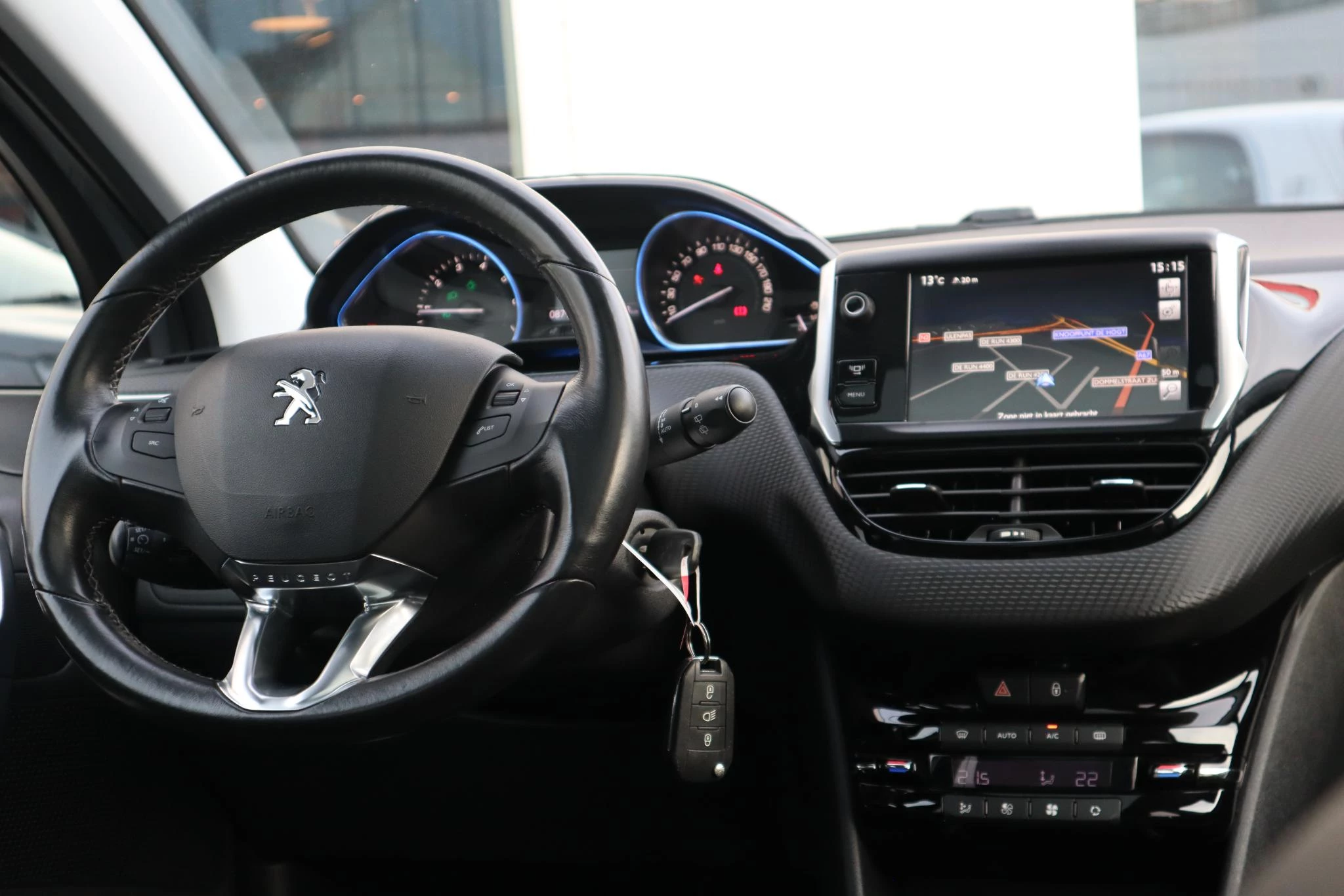 U weet altijd waar u moet zijn, dankzij het full map navigatiesysteem. In een auto als deze kunt u niet zonder electronic climate control, zodat de temperatuur altijd goed is. Schakel simpel en veilig naar uw favoriete artiest met de audiobediening op het stuur. Kom-maar-kom-maar...ho! Zo eenvoudig is het voordeel van parkeersensoren. En zo behulpzaam! Het hoort bij een intelligente auto als deze dat hij zelf in staat is om zijn omgeving in de gaten te houden. Dat doet deze PEUGEOT met een automatisch inschakelbare verlichting en een regensensor. Ook cruise control, automatisch dimmende binnenspiegel, lederen stuur, centrale deurvergrendeling met afstandsbediening en boordcomputer zijn aan boord.