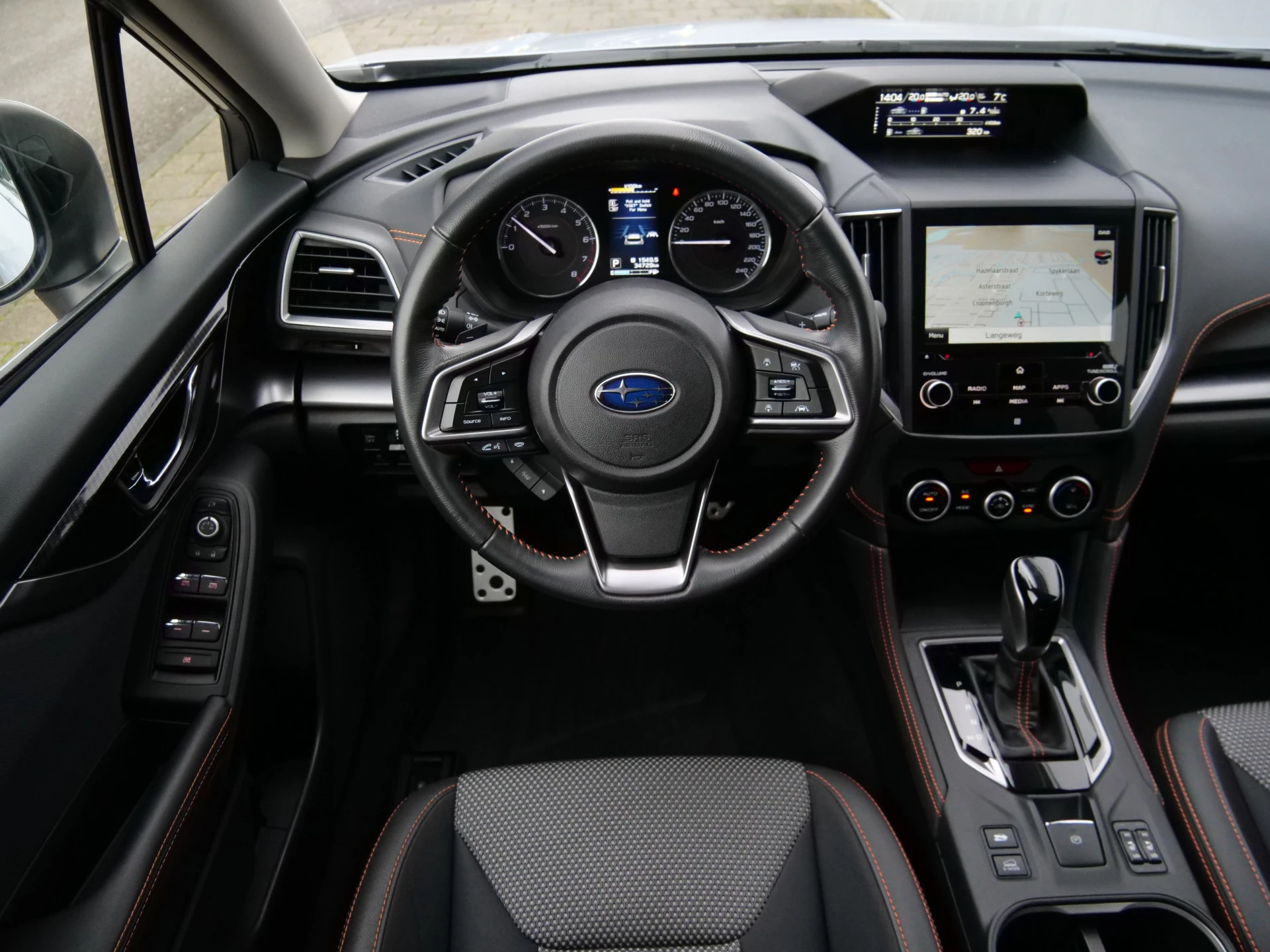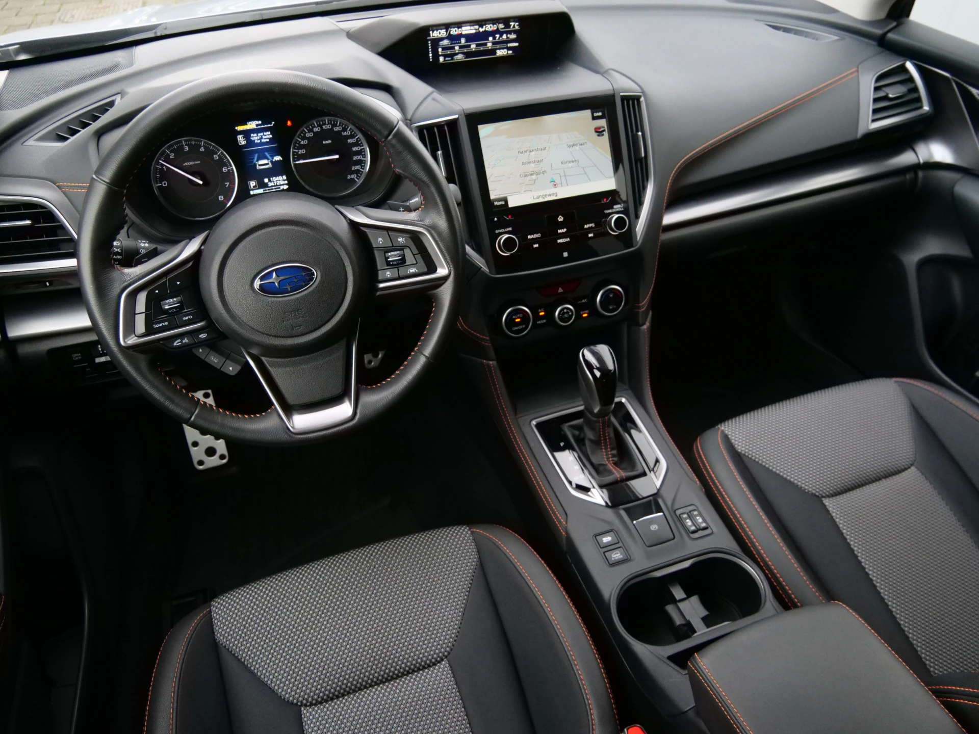 Wat een gemak, die achteruitrijcamera. Alles in beeld zonder capriolen. Met adaptive cruise control houdt de auto zelfstandig afstand tot uw voorligger. Een veiligheidsverhogende optie waarmee u comfortabel onderweg bent. Een veiligheidsverhogende optie is de ingebouwde spraakbediening. Terwijl u uw ogen op de weg houdt, bedient u de auto met uw stem. Met de routebegeleiding van het full map navigatiesysteem kunt u zich volledig op het verkeer concentreren. U verwacht natuurlijk electronic climate control in deze auto, en die is er dan ook. Ook is de Subaru uitgerust met: schakelpaddles aan het stuur, DAB ontvangst, regensensor, keyless entry en automatisch dimmende binnenspiegel.