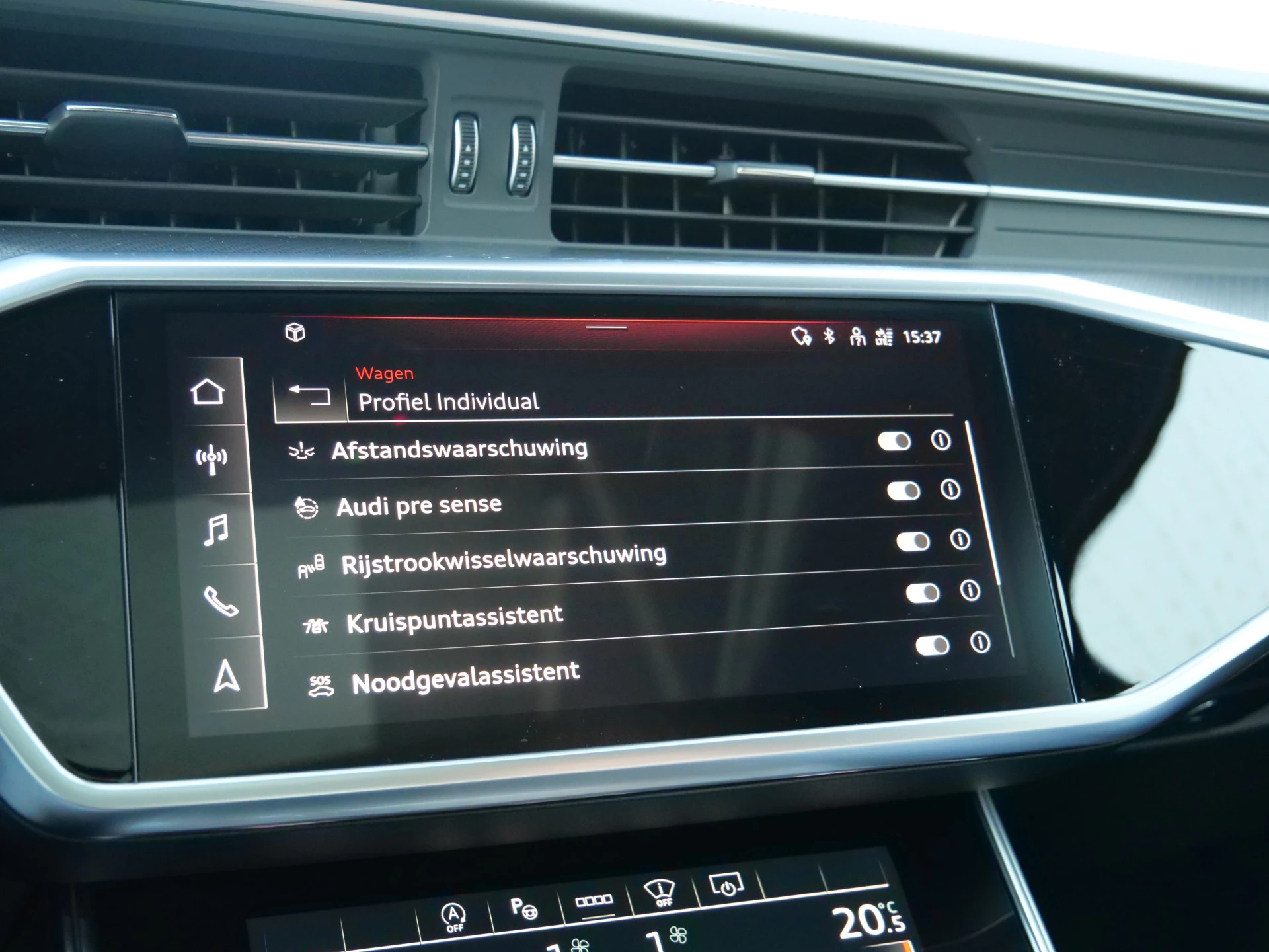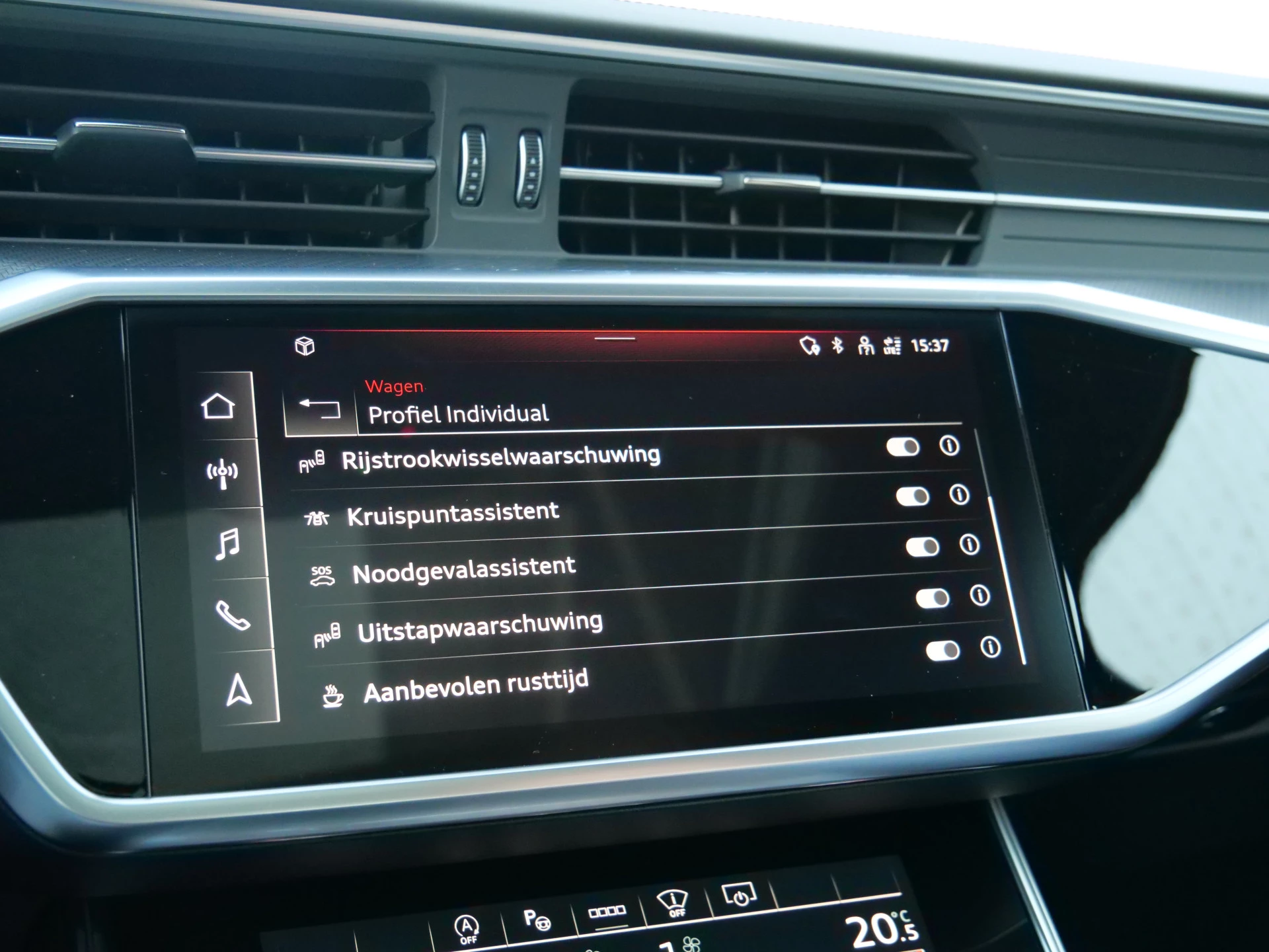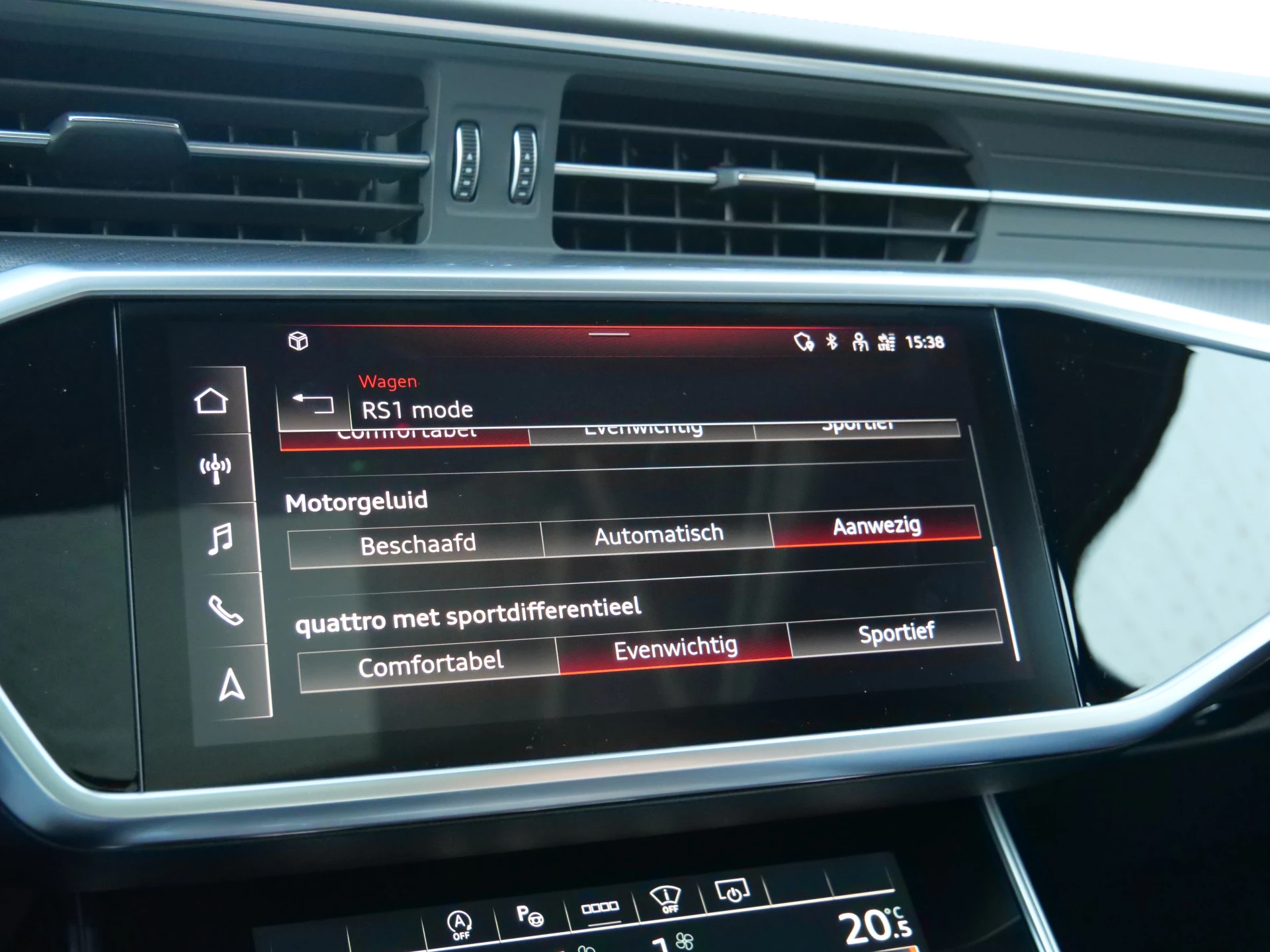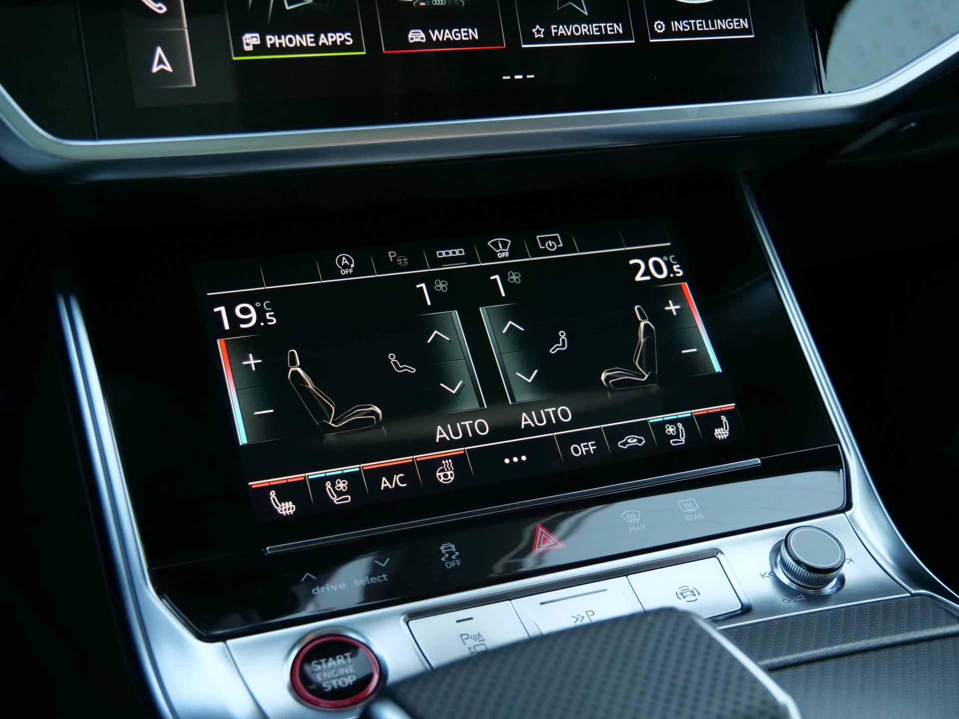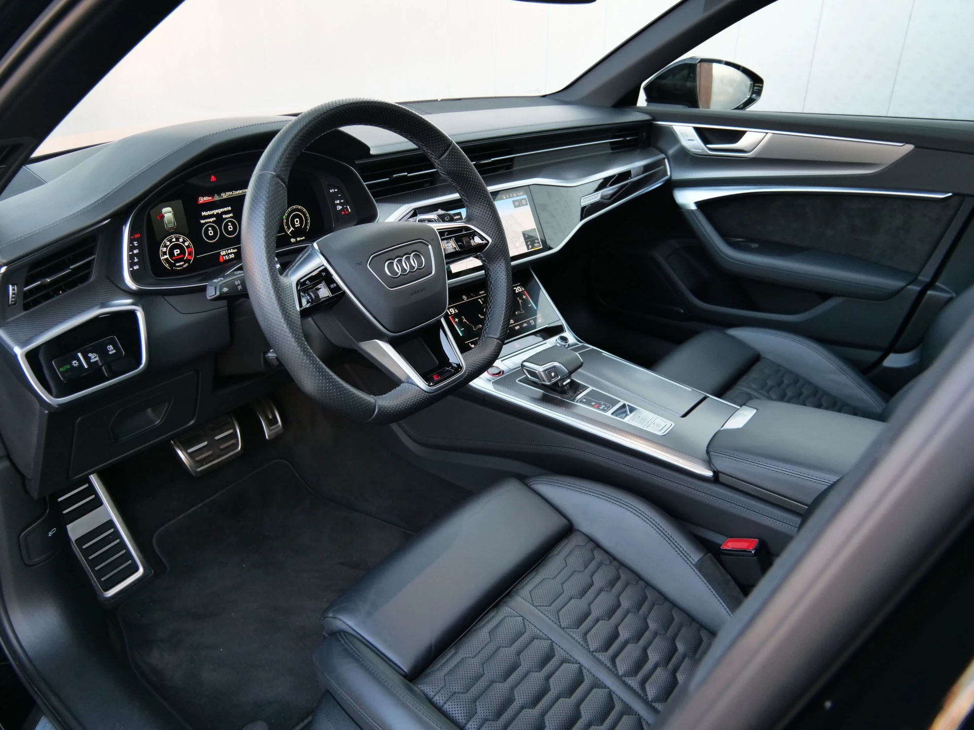In de Audi RS 6 Avant heeft uw veiligheid en die van uw omgeving prioriteit. Verkeersbord-detectie herkent verkeersborden en toont deze op het instrumentarium van de auto. Het Lane-keeping systeem doet precies wat nodig is: waarschuwen en corrigeren bij onbedoelde overschrijding van de rijstrooklijnen. Ook als uw aandacht even verslapt, blijft de forward collision warning bij de wekker. Dreigt er een botsing met een voor- of tegenligger, dan waarschuwt het systeem direct. De veiligheid van deze auto wordt verder verhoogd door head-up display, dodehoekdetectie, brake assist en bandenspanningcontrolesysteem.