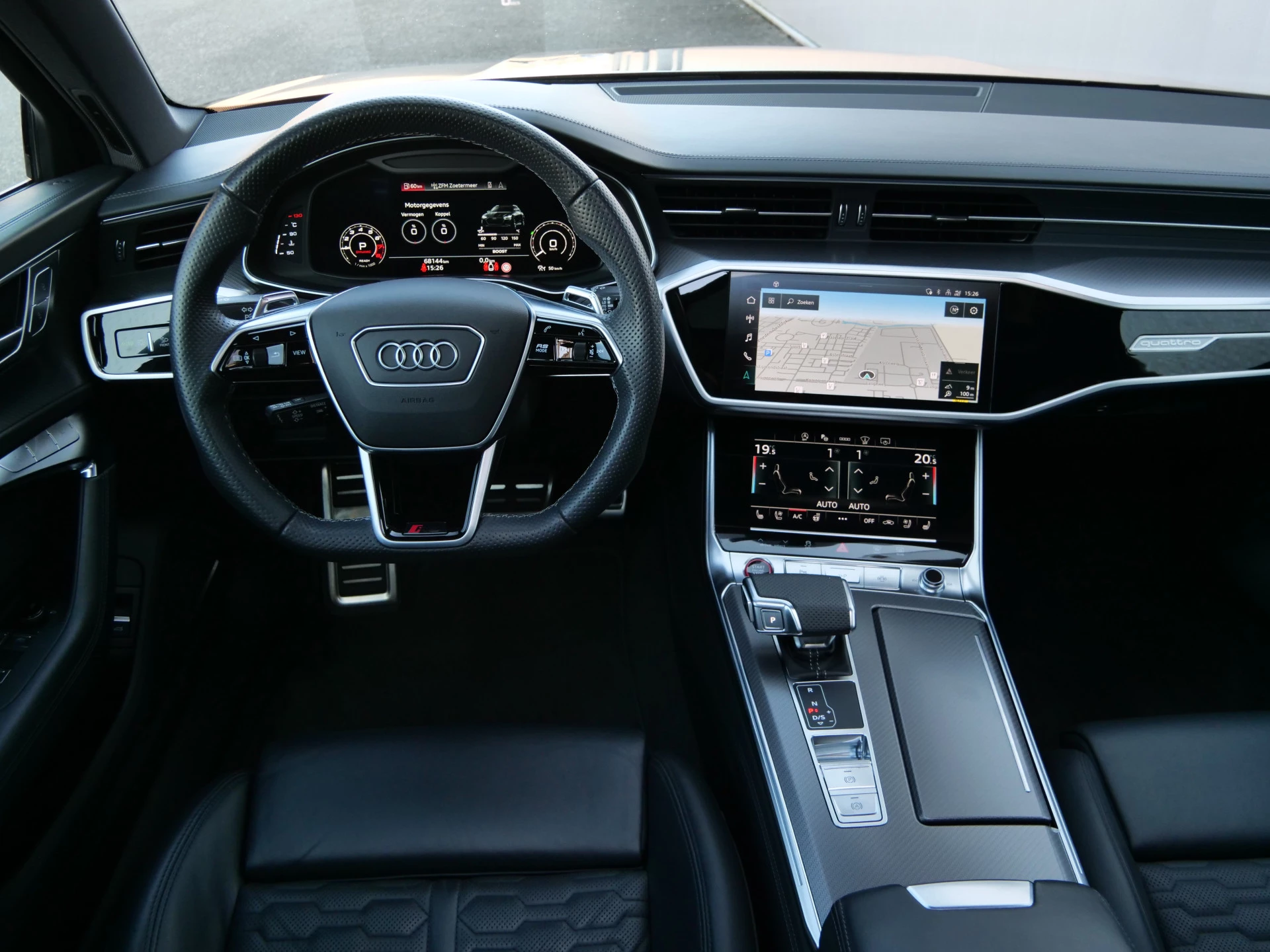 Het is niet alleen maar een stoer uiterlijk, deze Audi RS 6 Avant biedt ook de sportieve rijkwaliteiten die u zoekt. De S-Line styling geeft dit model een elegante en opvallende uitstraling. De automatische transmissie en de achtcilinder benzinemotor maken het autorijden snel en comfortabel. Daglicht valt vrij binnen door het elektrisch bediende glazen panorama dak. Wat ook met één klik opent, is de elektrisch bedienbare achterklep. Donkere en koude maanden? U zit altijd goed dankzij de stoelverwarming. Ook de passagiers worden verwend, door de verwarmde achterbank. Ook is de auto voorzien van: 22 inch lichtmetalen velgen, LED-koplampen, adaptief dempingsysteem, warmtewerend glas, in delen neerklapbare achterbank en LED-achterlichten.