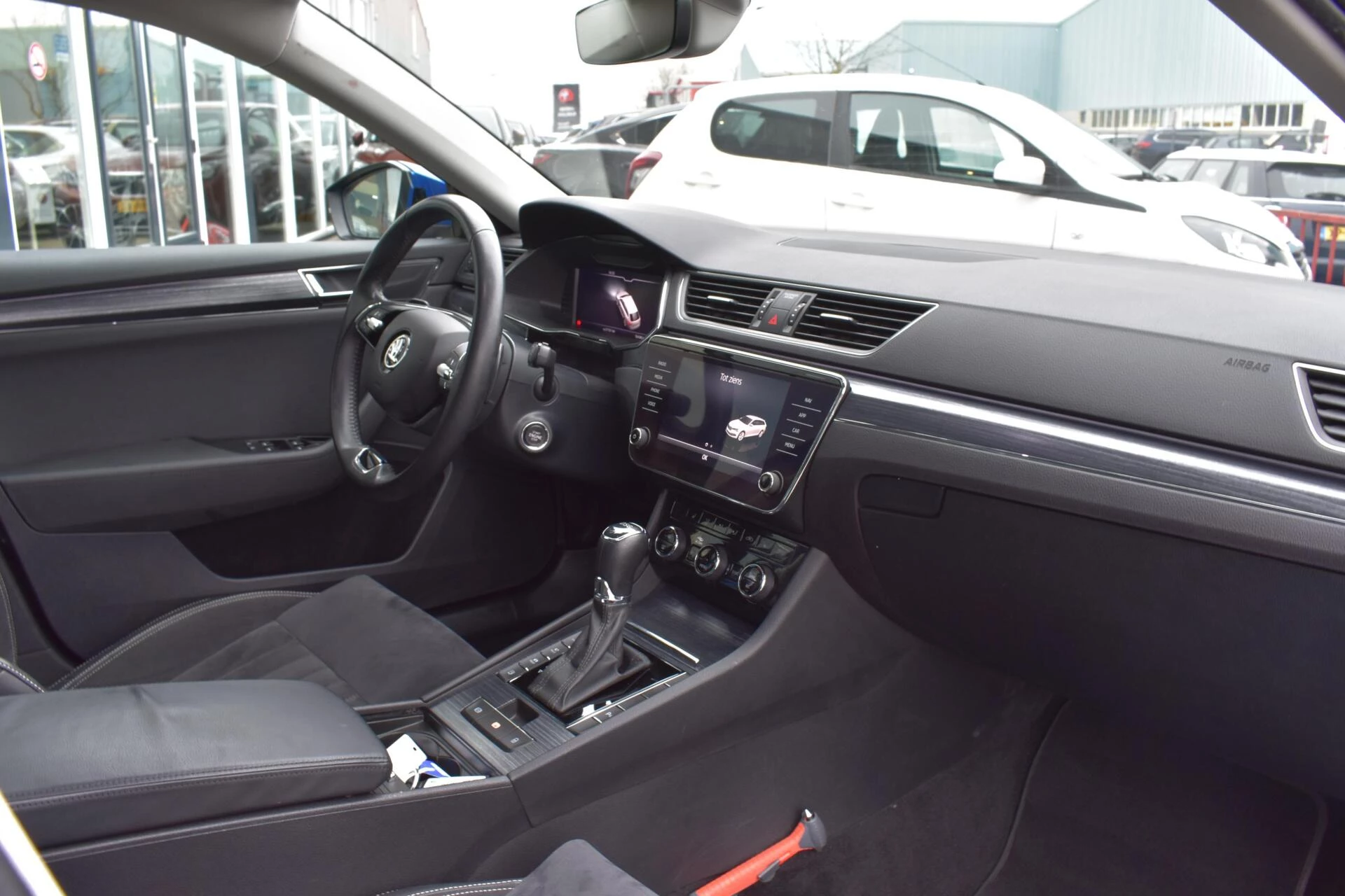 Voor het overzicht tijdens iedere rit is deze Skoda Superb Combi voorzien van een gemakkelijk afleesbaar digitaal dashboard. Comfortabel en veilig achteruitrijden gaat gemakkelijker dan ooit met behulp van de achteruitrijcamera. Deze Skoda Superb Combi maakt het u makkelijk. Vandaar ook de elektrisch inklapbare trekhaak. Mocht zich een probleem voordoen, dan krijgt u via remote services op uw smartphone te zien wat er precies aan de hand is, waar u ook bent. Een belangrijke veiligheidsvoorziening is de bediening van het audio-installatiesysteem en het full map navigatiesysteem, via knoppen op het stuur en middels spraakbediening. DAB-ontvangst geeft daarbij een kraakheldere ontvangst. Ook WIFI-hotspot, achteropkomend verkeer waarschuwing, automatische airconditioning, draadloos opladen, regensensor en cruise control zijn aan boord.