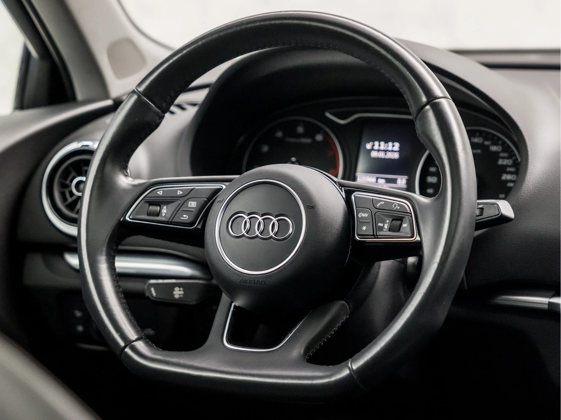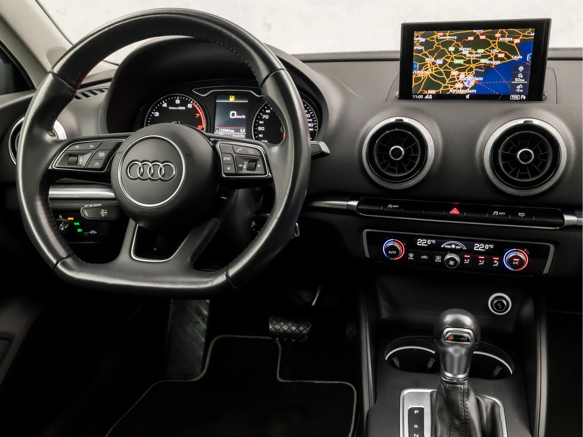Adaptive cruise control houdt de ingestelde snelheid vast en houdt afstand tot het voertuig voor u. Prettig, altijd weten waar je moet zijn en hoe lang de rit nog duurt met het navigatiesysteem met harde schijf. De achteropkomend verkeer waarschuwing geeft een signaal als degene achter u te dicht op u zit. Ook handig en veilig bij het wisselen van rijbaan. Ook is de auto voorzien van automatische airconditioning. Met een druk op de knop verandert u het volume of het zenderstation met de audiobediening op het stuurwiel. U bent in deze Audi ook voorzien van parkeersensoren achter, sportstuurwiel, automatisch dimmende buitenspiegels, isofix-aansluiting, centrale deurvergrendeling met afstandsbediening en boordcomputer.