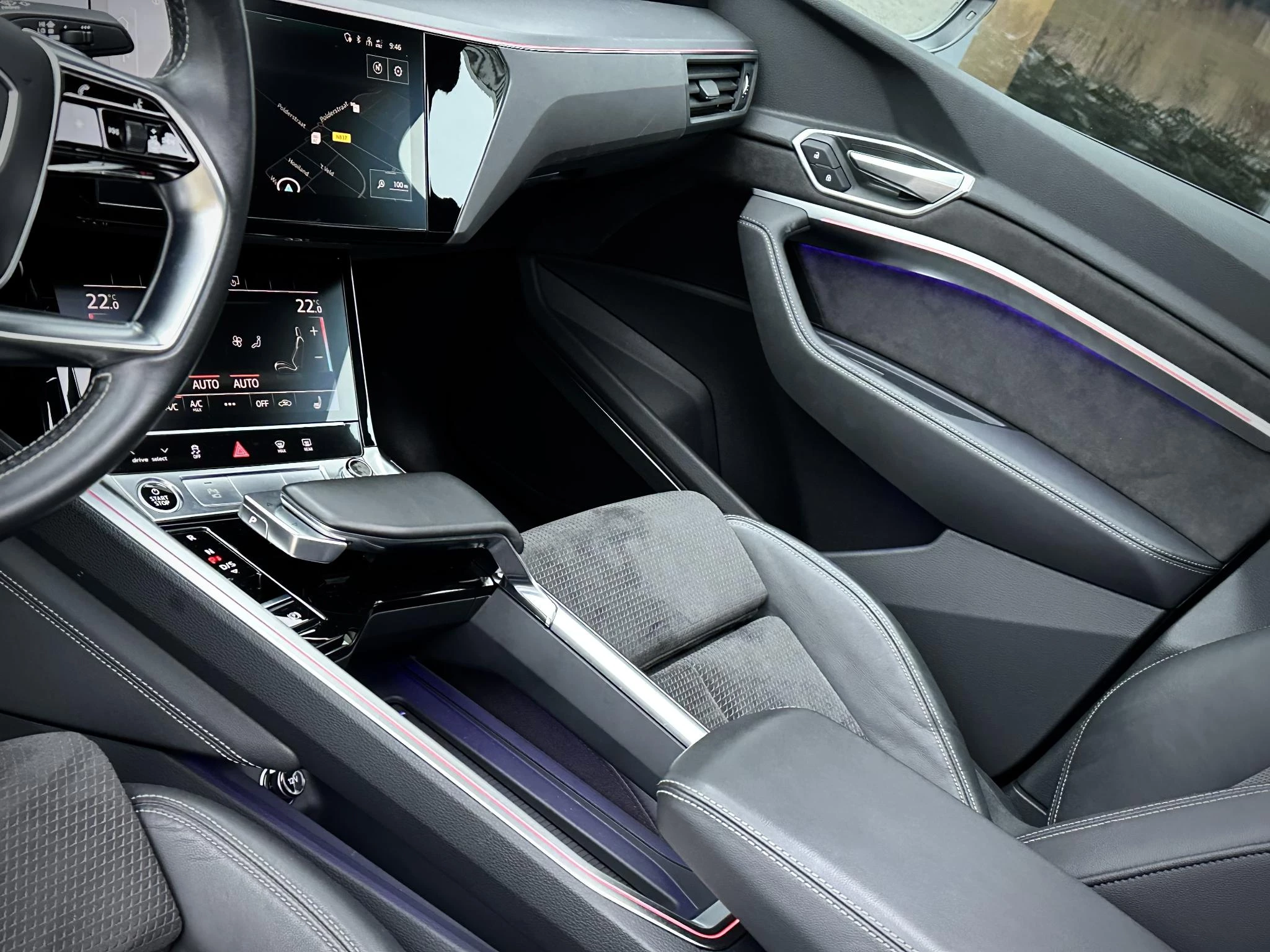 Alleen deze week van *** EUR 34.950,- voor EUR 33.950,- *** In absolute nieuwstaat, volledig dealer onderhouden en rookvrije Audi Etron Sportback S Edition. Afkomstig van Audi Duitsland afkomstig, schade vrij bereden en voorzien van zeer veel fabrieks opties w.o. S Line interieur, S line exterieur, zwart optiek exterieur pakket met hoogglans zwarte accenten, 22 inch hoogglans zwarte S line velgen, Etron geel/ oranje remklauwen, privacy glas, 2 x laadoort, snellaad functie, luchtvering, Quattro vierwielaandrijving, elec. achterklep, originele afneembare Audi trekhaak, stoelverwarming, sfeerverlichting (naar kleur instelbaar), Premium Audio/ Bang & Olufsen, panoramadak, 4 zone airco met climate control bediening achter, Dode hoek systeem, rondomzicht camere met topview functie, key less entry & go, Apple Carplay, etc. TOPSTAAT! SOH accutest uitgevoerd; 93%! Audi ACCU garantie t/m 5-2029, prijs is rijklaar incl 1 jaar garantie. 4 nieuwe banden, volledig dealer onderhouden.