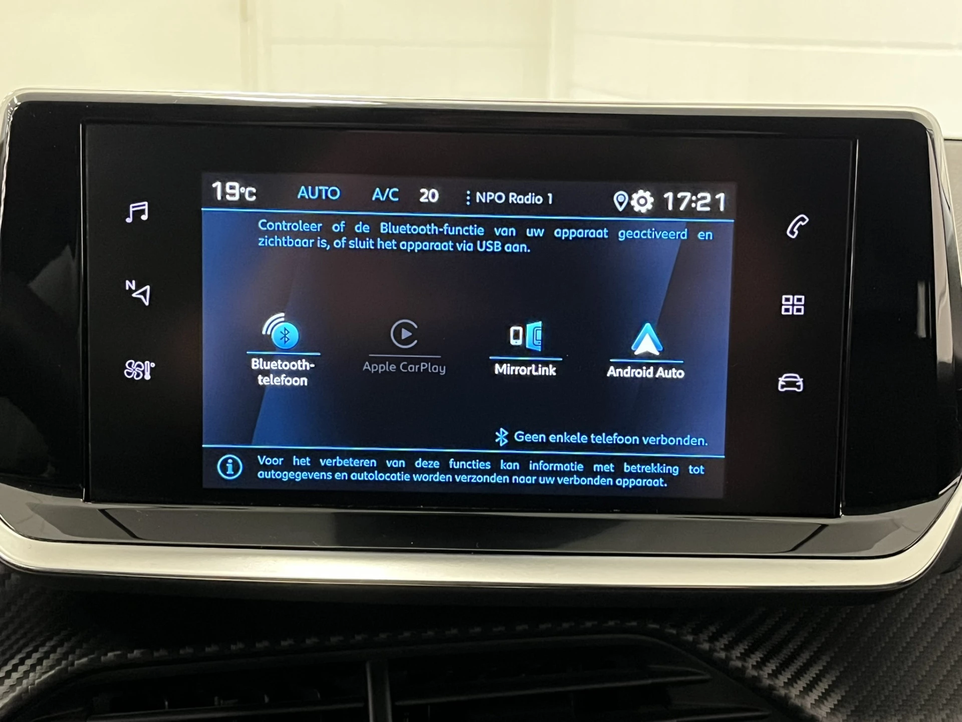 Je zult verrukt zijn van de digitale wereld van mobiliteit; het digitale dashboard projecteert alles wat jij nodig hebt om jouw rit aangenaam en veilig te maken. Bij het inparkeren hoef je het laatste stukje niet te gokken: de achteruitrijcamera kijkt voor je uit. Communiceren met je auto? Dat gaat via remote services. Met je smartphone maak je waar dan ook contact om allerlei functies te checken of te activeren. Tot de standaard uitrusting van deze auto hoort ook automatische airconditioning. Het audiosysteem bedien je blind met behulp van de audiobesturing op het stuur. Veilig en praktisch! Deze Peugeot is voorzien van DAB ontvangst, regensensor, cruise control, automatisch dimmende binnenspiegel, lederen stuur en centrale deurvergrendeling met afstandsbediening.