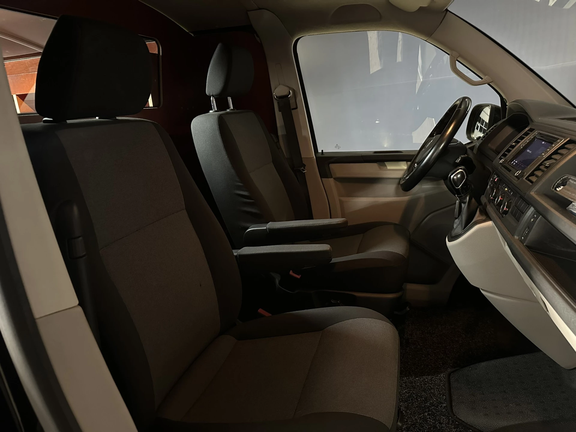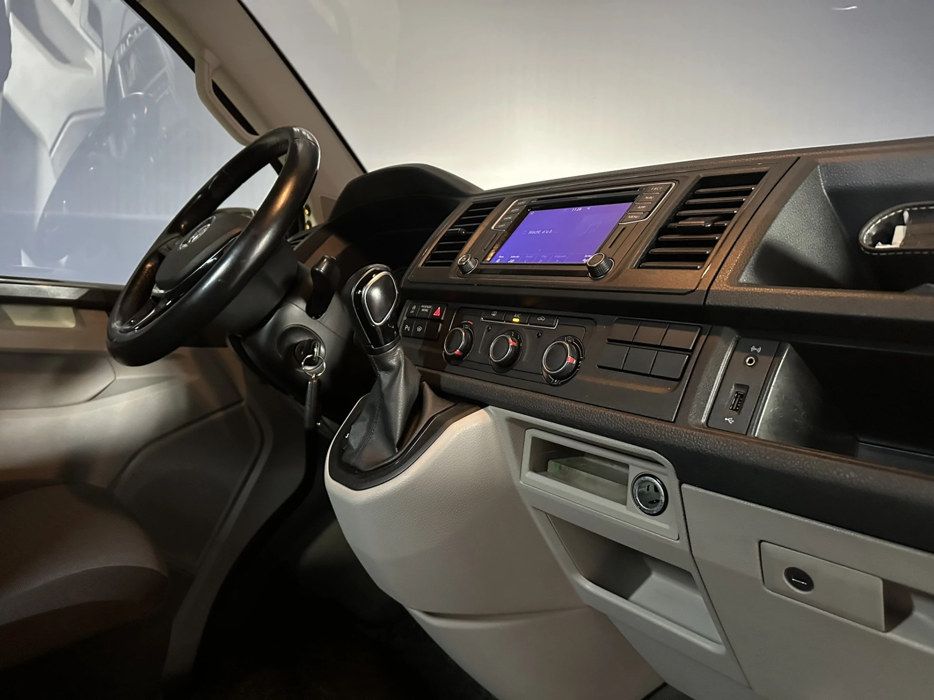 150pk sterke Volkswagen Transporter L2H1 Automaat Euro6 met inrichting. Geheel dealer onderhouden en voorzien van airconditioning, camera, navigatie, cruisecontrol, lichtmetalen velgen, 2500kg trekhaak, parkeersensoren, achterklep en bluetooth telefoonvoorbereiding.