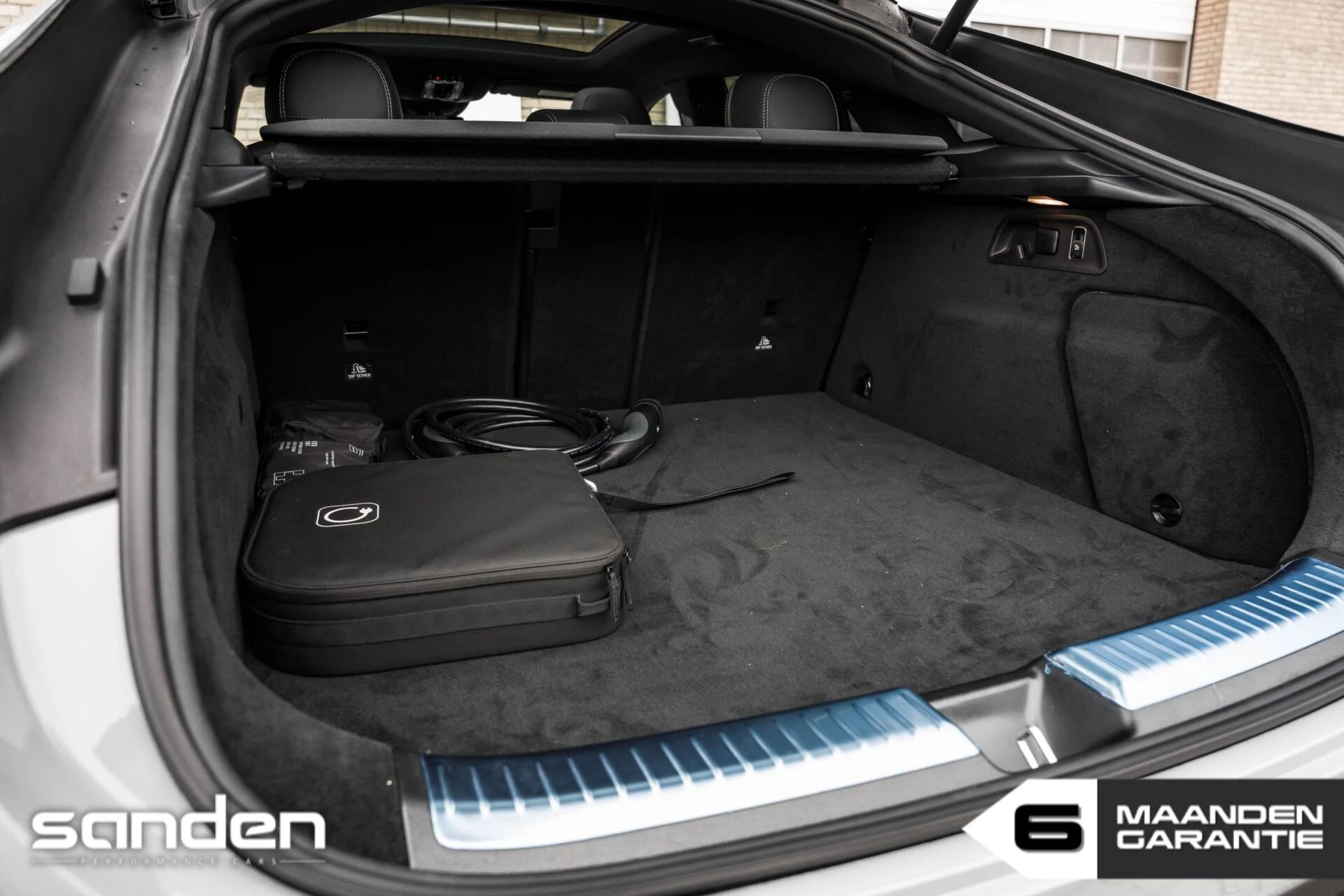 Ook op comfortgebied is dit exemplaar volledig uitgerust. De luchtvering zorgt voor een perfecte balans tussen dynamiek en rijcomfort. Het interieur is afgewerkt met hoogwaardige materialen, waaronder Alcantara accenten en elektrisch verstelbare stoelen met memory- en ventilatiefunctie. Het grote panoramadak, het premium Burmester audiosysteem, Head-Up Display en het 360º camerasysteem maken het geheel technologisch en luxueus compleet.