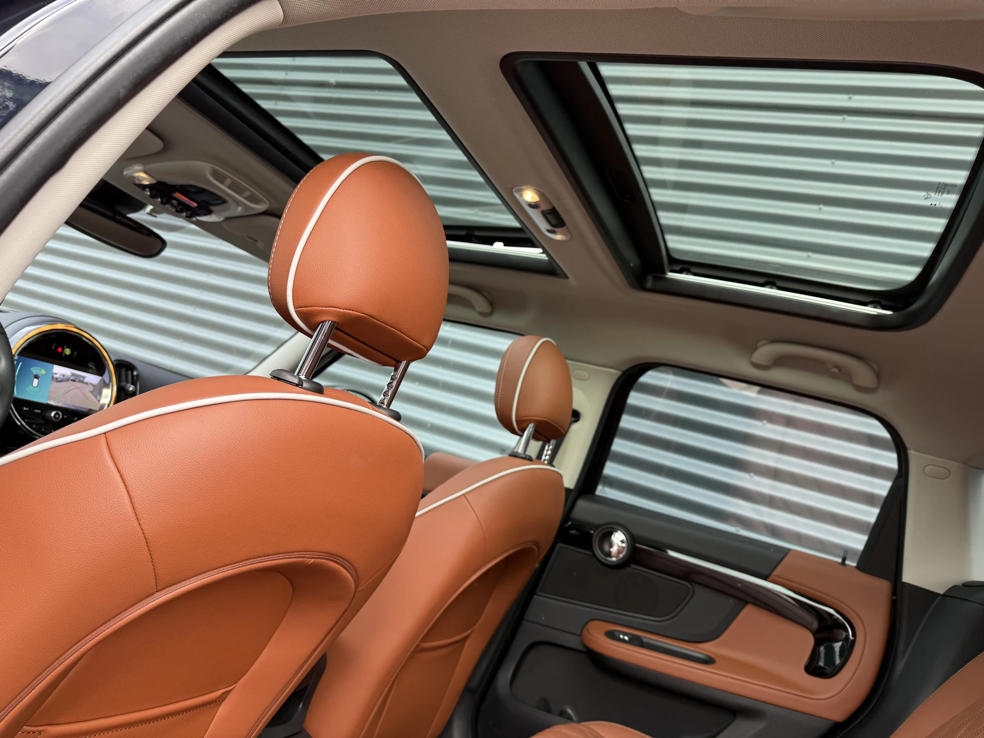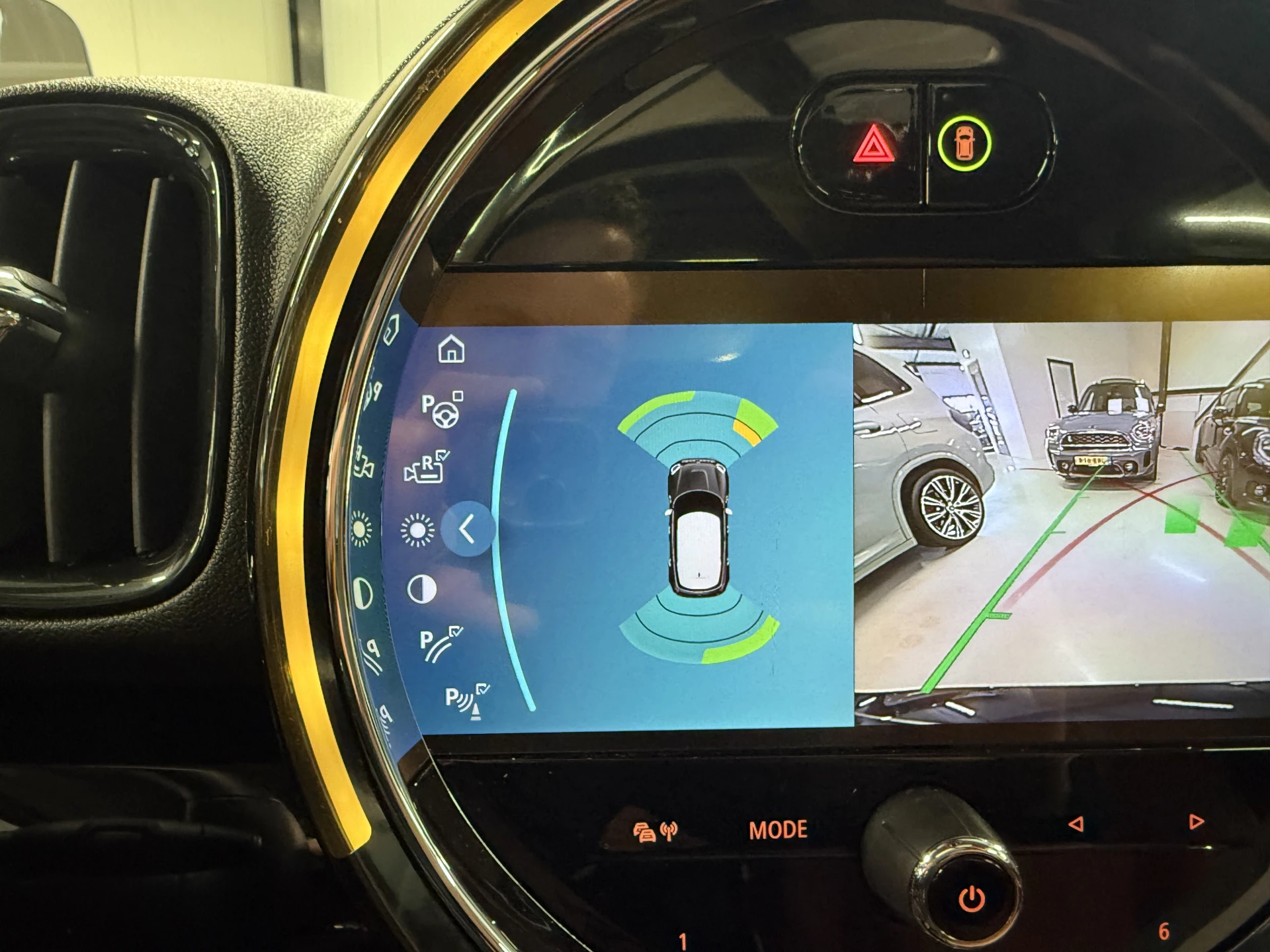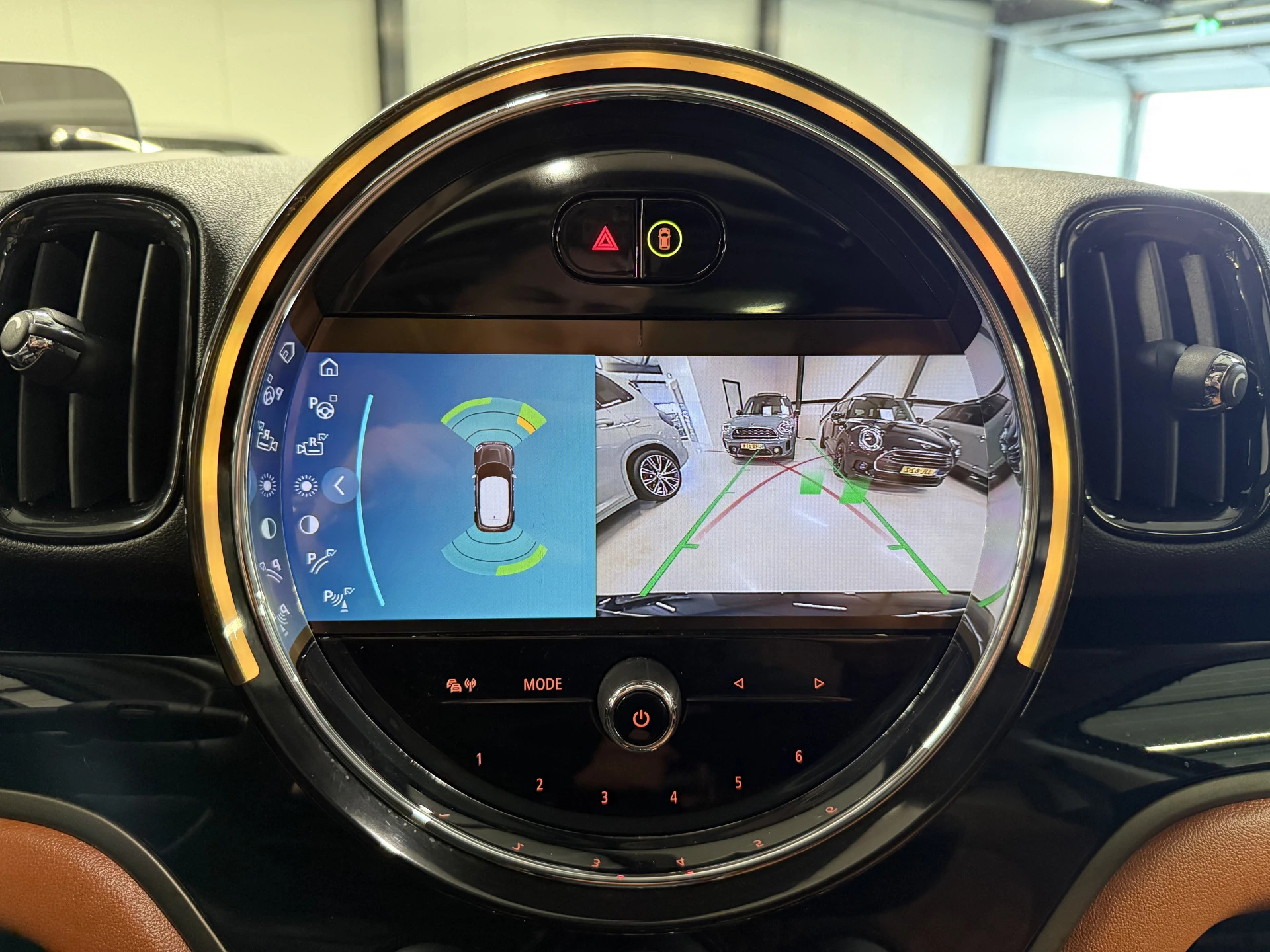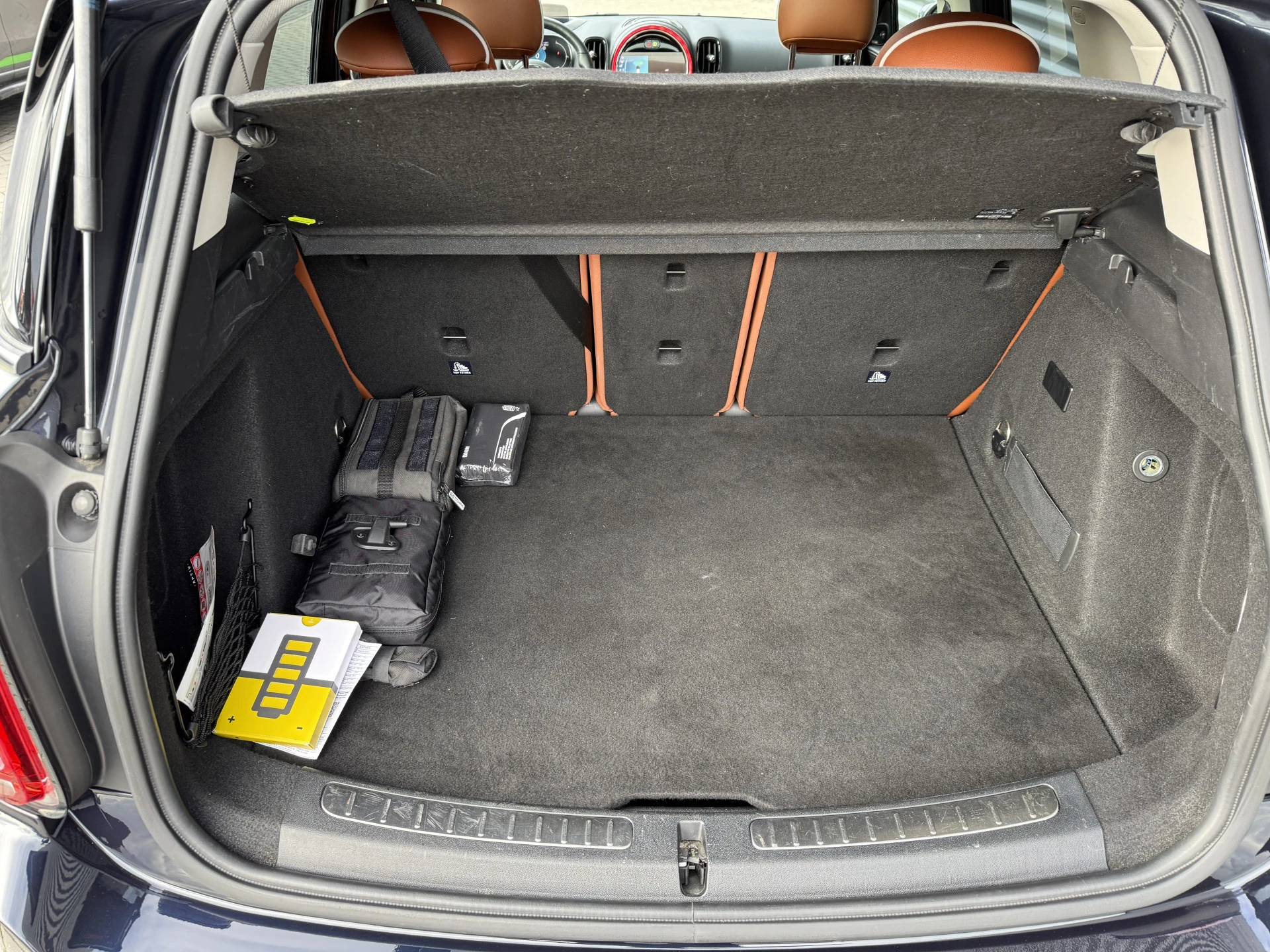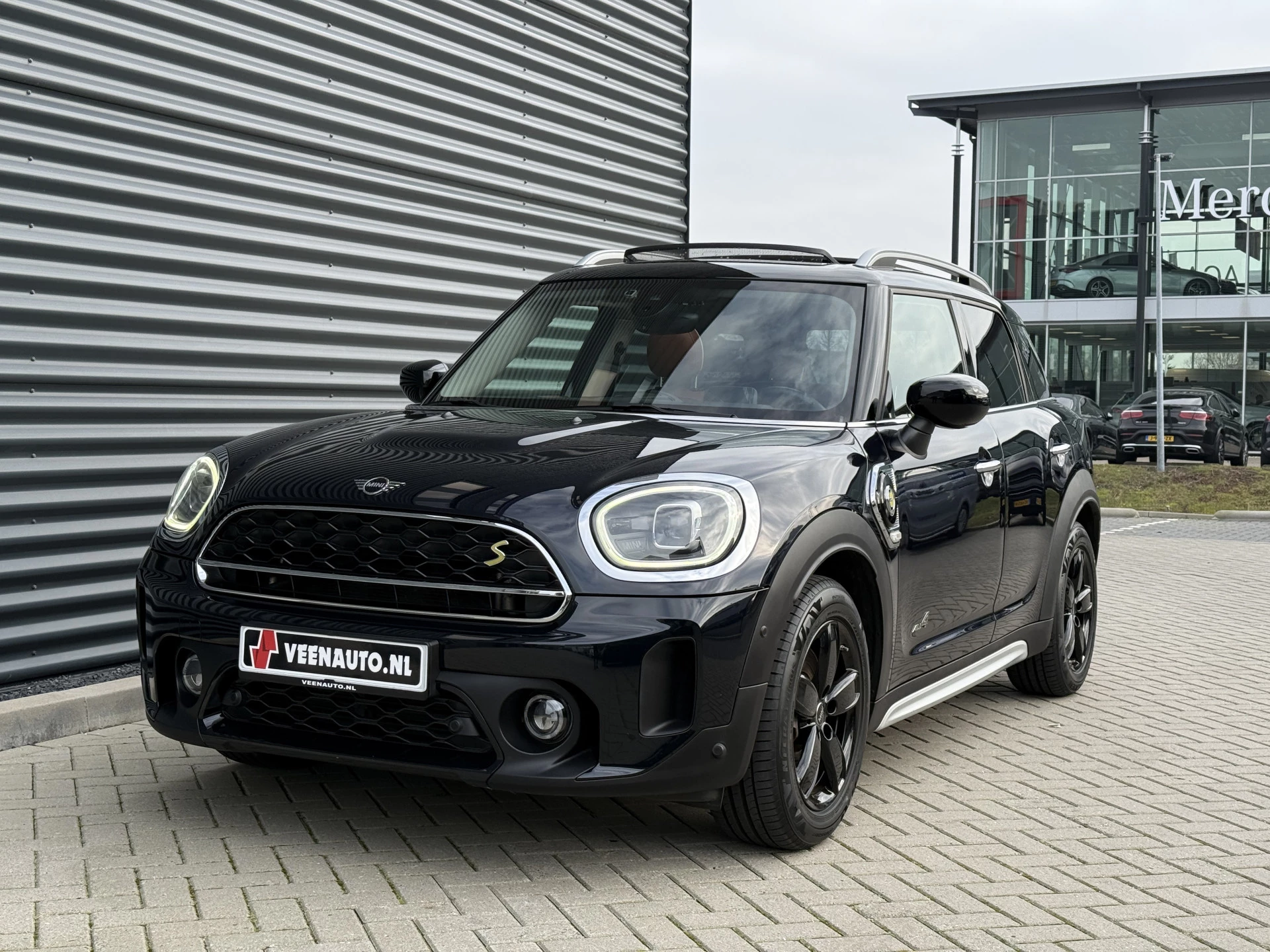 Schitterende Mini Countryman 2.0 Cooper SE ALL4 Plug in Hybrid in Enigmatic Black metallic (heel diep donkerblauw) met hoogglans zwarte licht metalen velgen. Deze Mini is bijzonder compleet uitgerust met onder andere de volgende opties: Panorama dak, elektrische bedienbare voorstoelen met memory, Chester Malt lederen bekleding, Harman Kardon Audio, LED interieur sfeer verlichtingspakket, Apple Carplay, achteruitrijcamera, navigatie, virtuele cockpit, Head Up display, adaptieve cruise control, keyless entry, parkeersensoren voor + achter met parkeer assistent, etc..