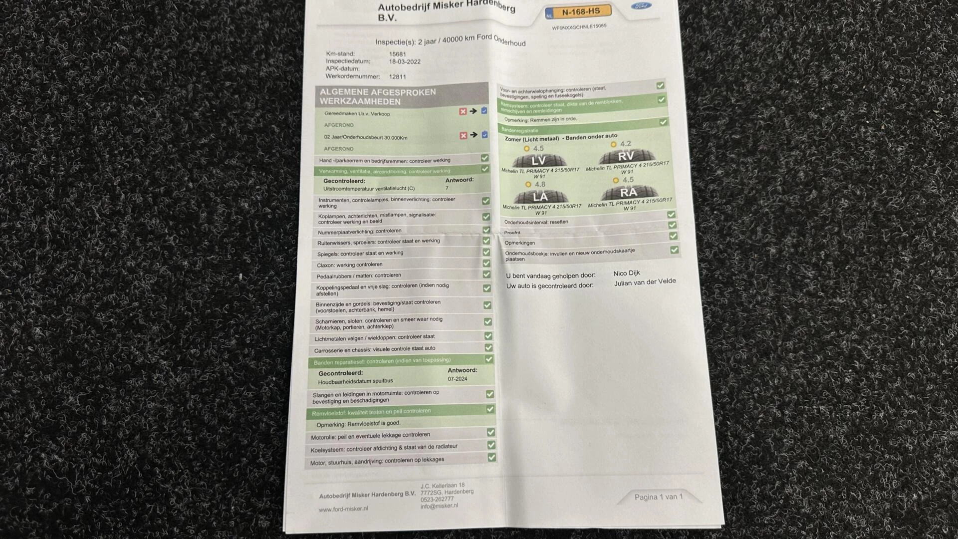 Inclusief onderhoudsbeurt.