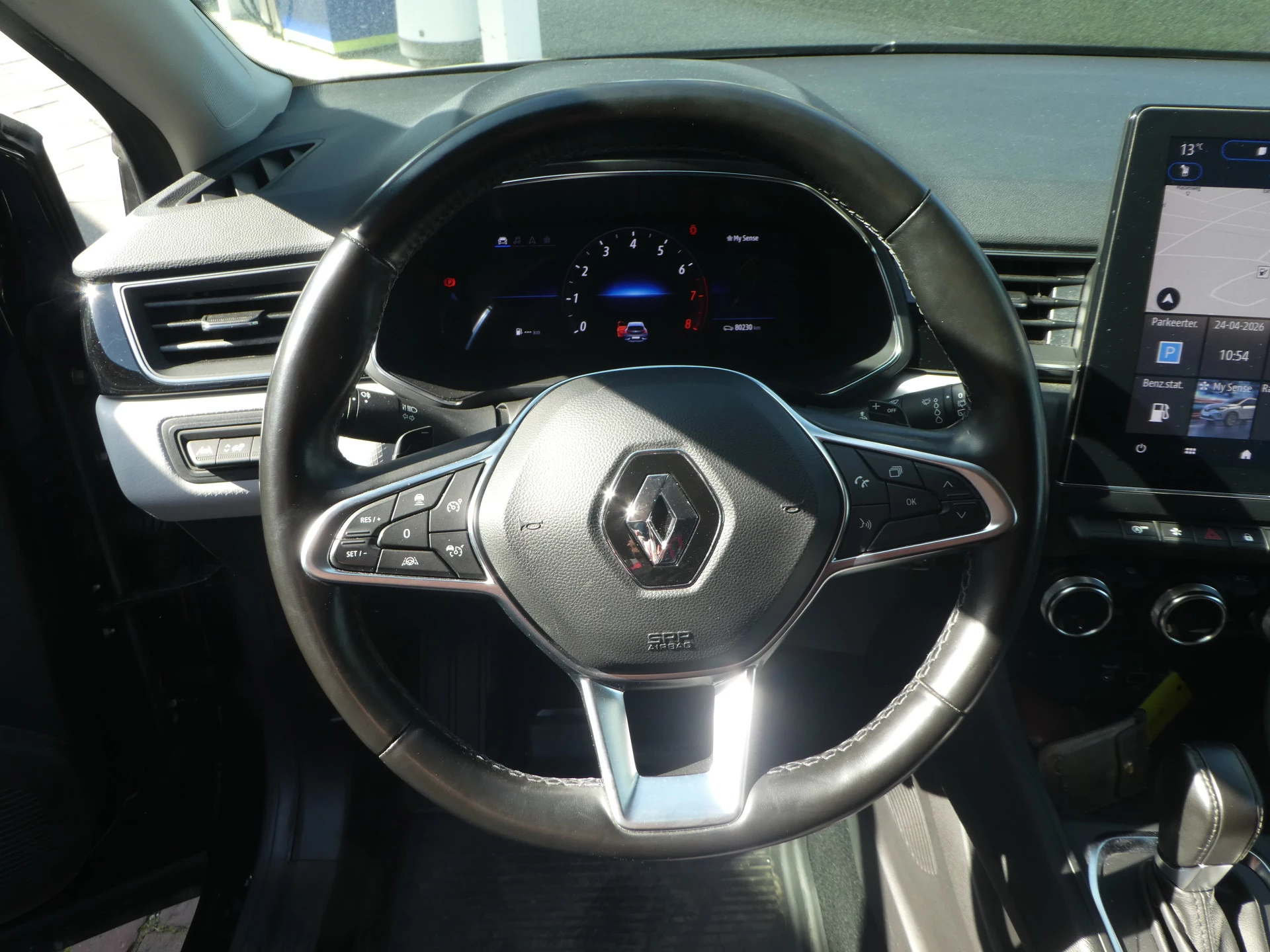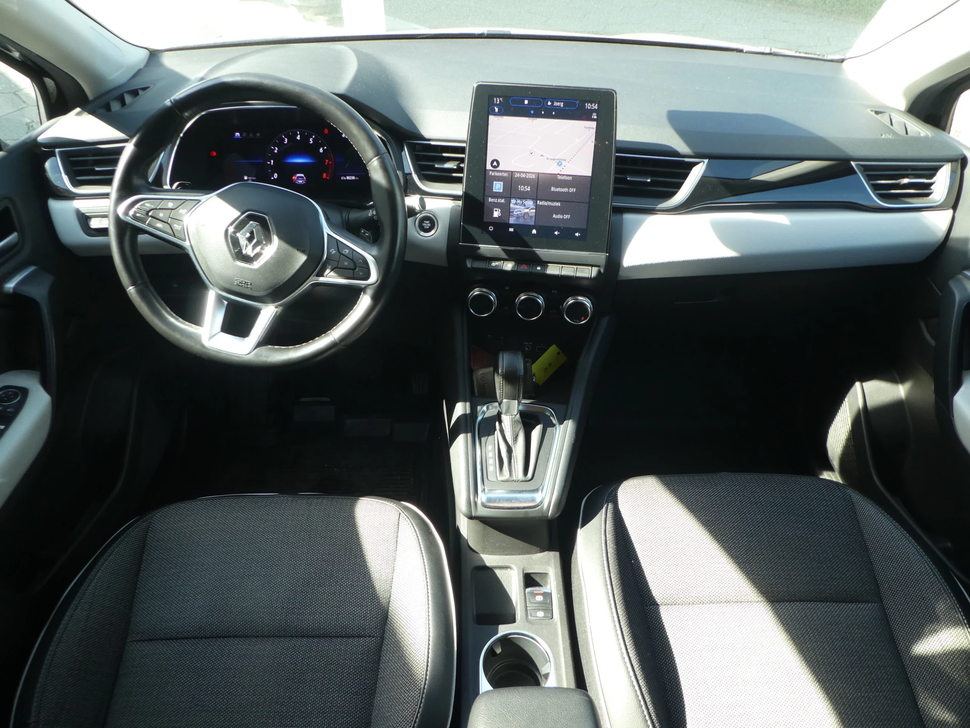 Zoals u van zo'n jonge auto mag verwachten, zijn hier ook de geavanceerde remote services aanwezig. Simpelweg met een app op uw smartphone controleert u op afstand de status van de auto en bedient u diverse functies. Een optie die de veiligheid verhoogt, is de bediening vanaf het stuur van het audiosysteem (met dab-radio!). De auto is ook uitgevoerd met electronic climate control. Inparkeren en uitparkeren kost geen enkele moeite dankzij de parkeersensoren. De auto neemt u werk uit handen doordat hij zelf veel in de gaten houdt. Een regensensor en een automatisch inschakelbare verlichting nemen waar wanneer de ruitenwissers en het licht aan moeten. Ook is de Renault uitgerust met: cruise control, keyless entry, automatisch dimmende binnenspiegel, lederen stuur, boordcomputer en lederen versnellingspook.