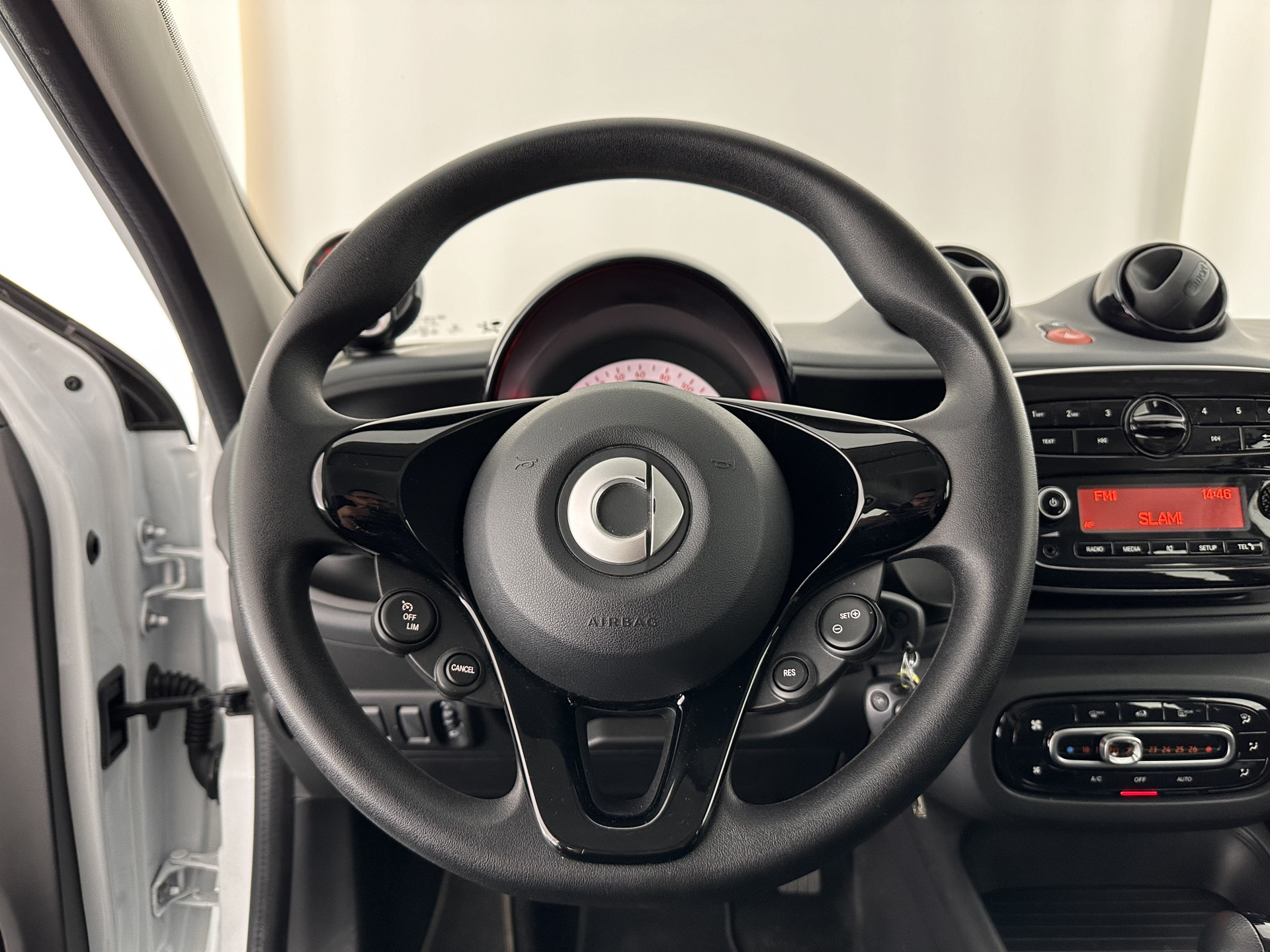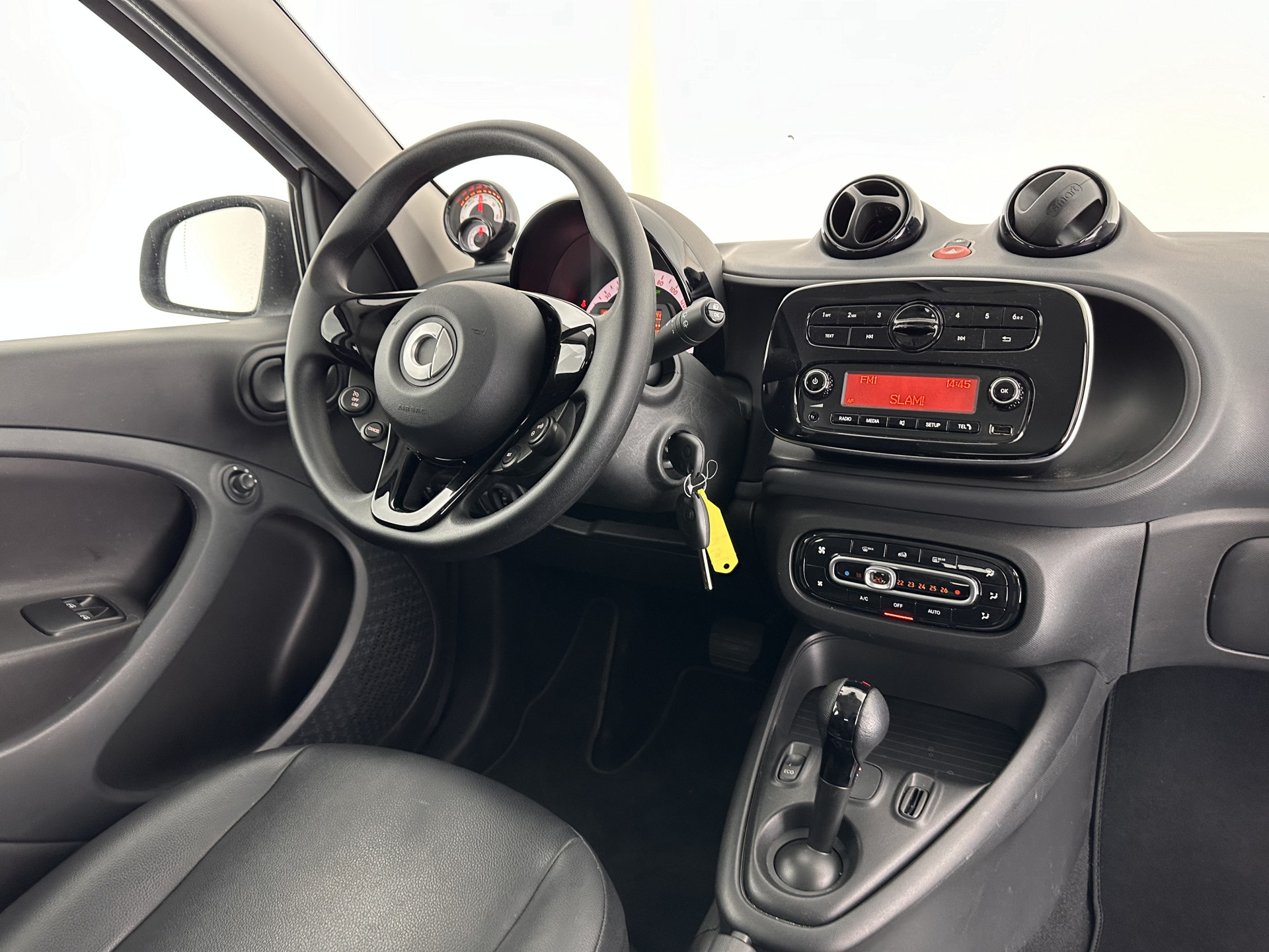 Het audio-installatiesysteem met dab-ontvangst bedient u veilig met knoppen op het stuur. Met automatische airconditioning hoeft u alleen de gewenste temperatuur in te stellen. Het systeem doet de rest. De cruise control vermindert het brandstofverbruik en vergroot het comfort. De uitrusting van deze Smart is met lederen stuur, centrale deurvergrendeling met afstandsbediening en boordcomputer behoorlijk compleet.