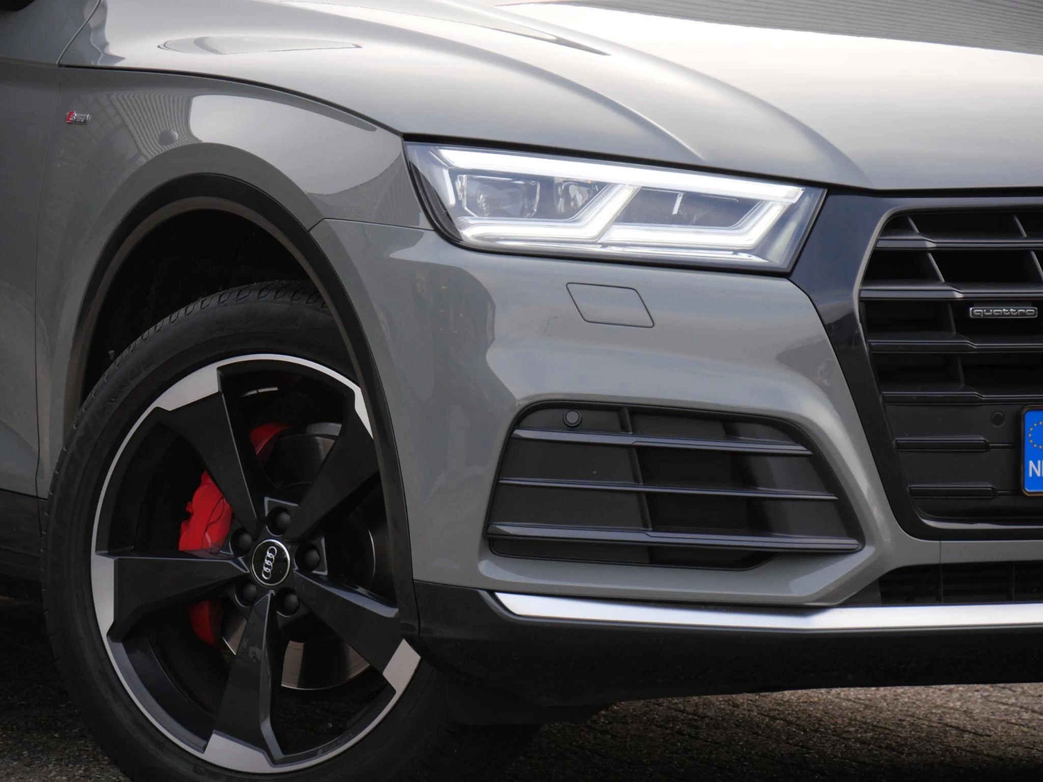 Deze Audi Q5 heeft de juiste looks. Volledig in S-Line trim uitgevoerd met een hele rits aan extra opties af fabriek. Om het allemaal nog wat specialer te maken is dit exemplaar gespoten in de kleur 'Quantumgrijs' welke exclusief voor S-Line uitvoeringen beschikbaar is. De exterieuraccenten zijn uitgevoerd in hoogglans zwart zoals de raamlijsten, grille, buitenspiegels, emblemen en bumperaccenten. De achterste ramen zijn extra getint uitgevoerd. Wat ons betreft de perfecte kleurstelling en helemaal van nu!