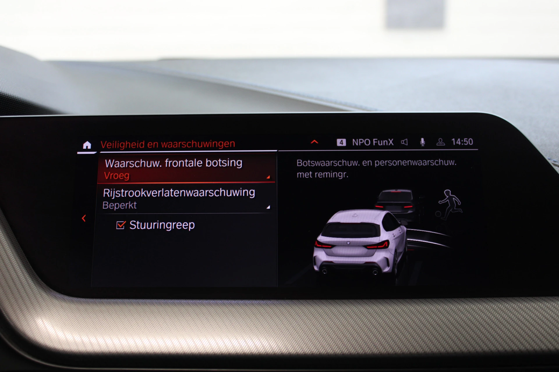 Zoals u mag verwachten van deze BMW 1-serie is hij uitgerust met een reeks aan actieve veiligheidssystemen. Verkeersbord-detectie herkent verkeersborden en toont deze op het instrumentarium van de auto. Het Lane-keeping systeem zorgt voor een automatisch constante positie binnen de rijstrook. Afdwalen is uitgesloten. Voor meer veiligheid detecteert deze auto het risico van een aanrijding tijdig via de forward collision warning. Verder is deze auto uitgerust met hill hold functie, brake assist, vermoeidheidsherkenning en bandenspanningcontrolesysteem.
