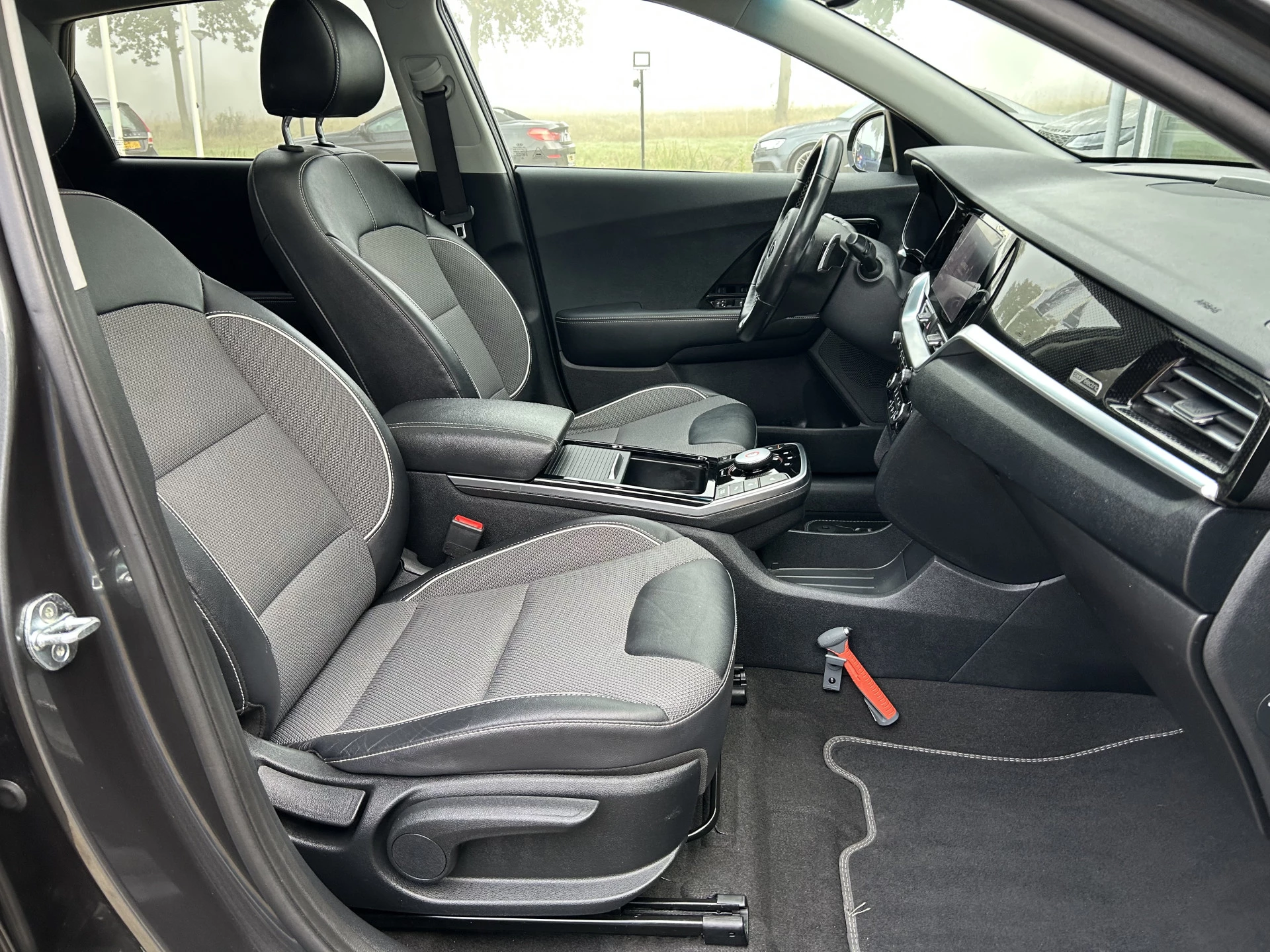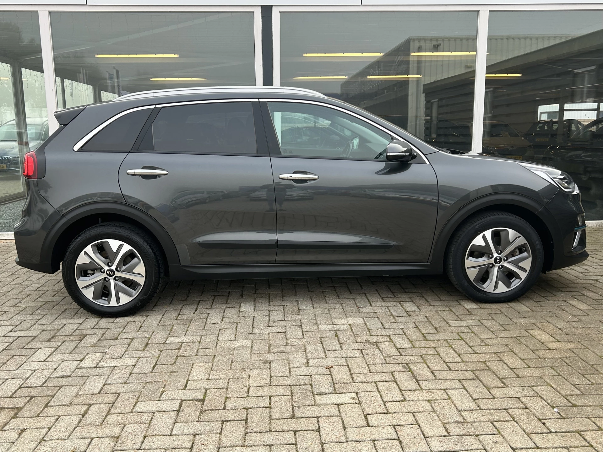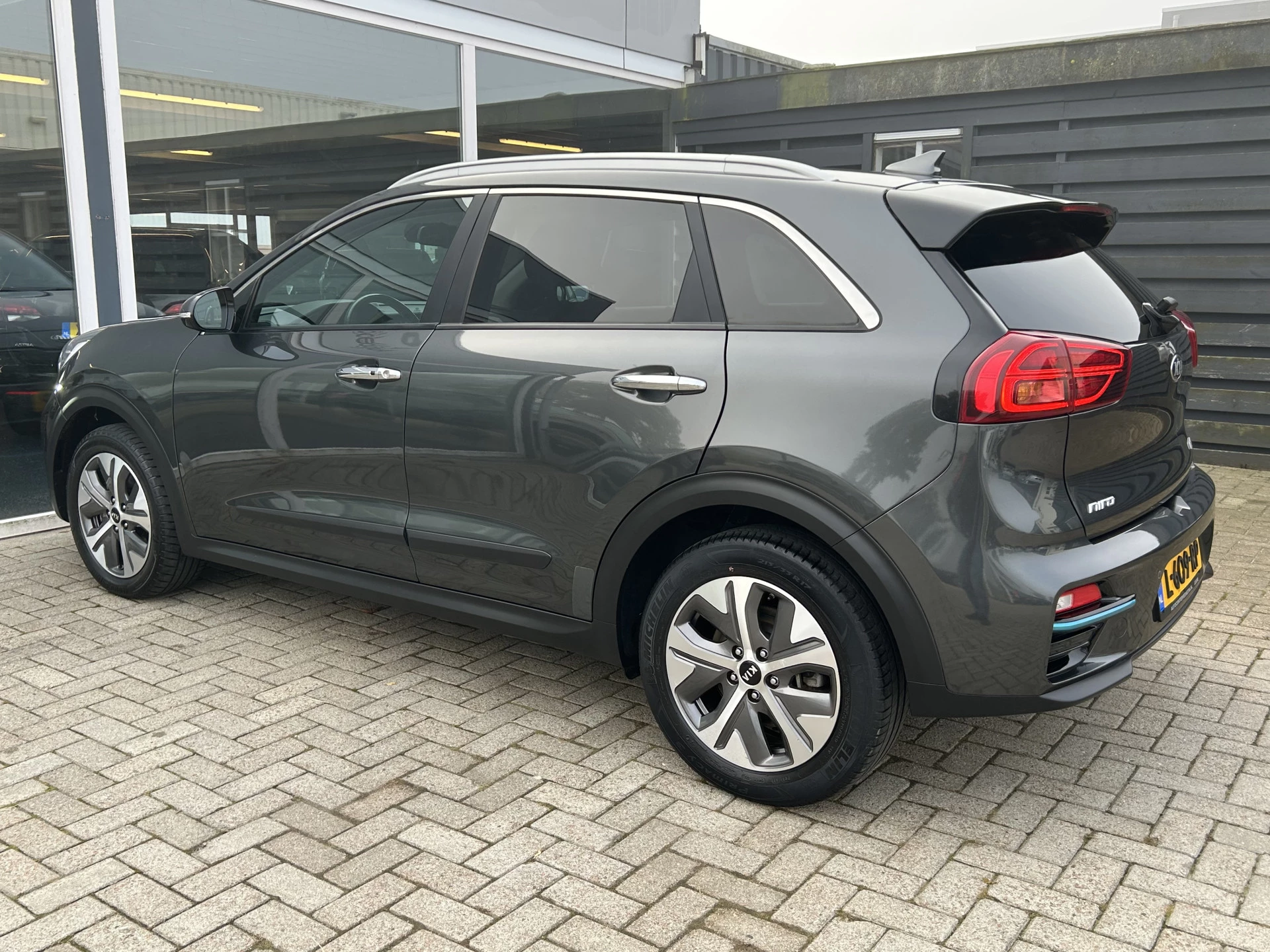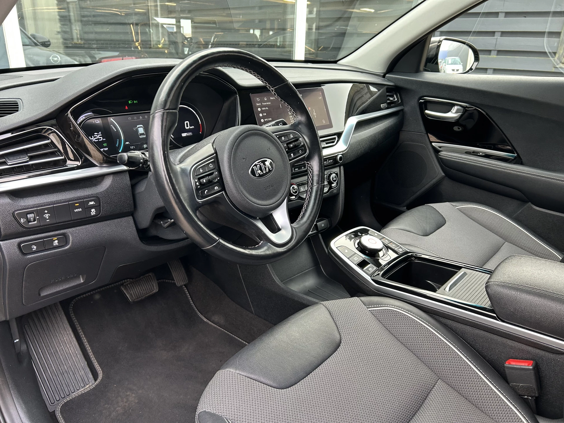 Milieubewust rijden en elke kilometer genieten. Het kan met deze elektrische Kia e-Niro. Wat een rijervaring, die elektromotor. Forse actieradius, nul uitstoot en heerlijk pittig rijgedrag! Een krachtige motor geeft deze auto zijn sportieve prestaties. In de verwarmbare voorstoelen zitten is elke keer een welkom gevoel. Licht, lucht, ruimte en gemak wordt verzorgd door het elektrisch bedienbare glazen panoramadak. De uitmonstering van deze auto wordt gecompleteerd door onder meer 17 inch lichtmetalen velgen, LED koplampen, donker getint glas achter, in delen neerklapbare achterbank en LED-achterlichten.