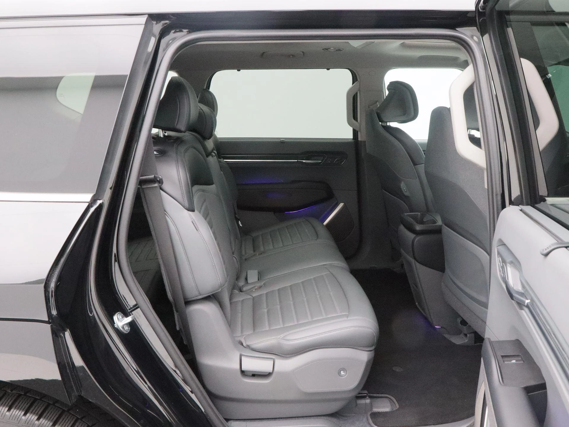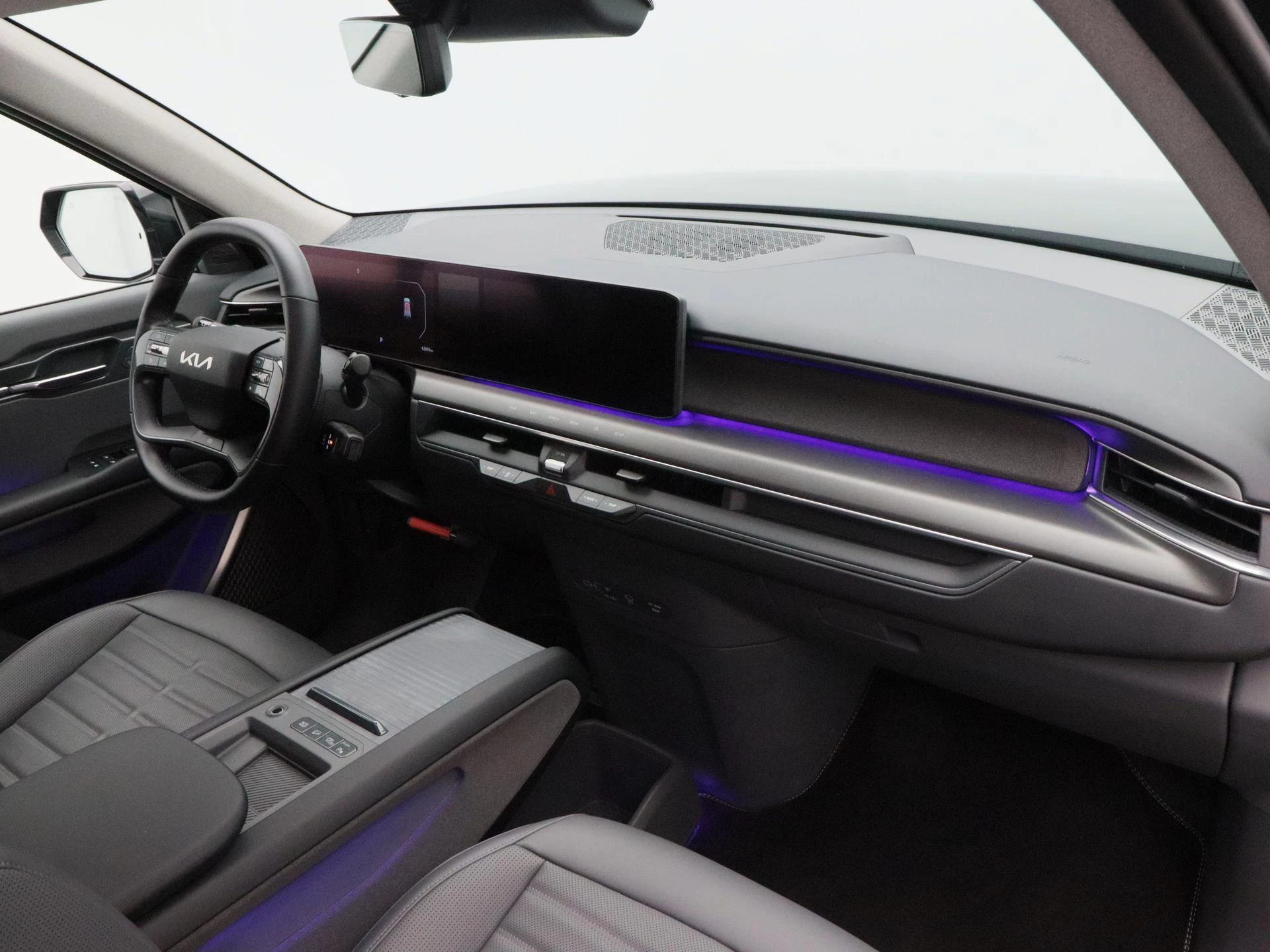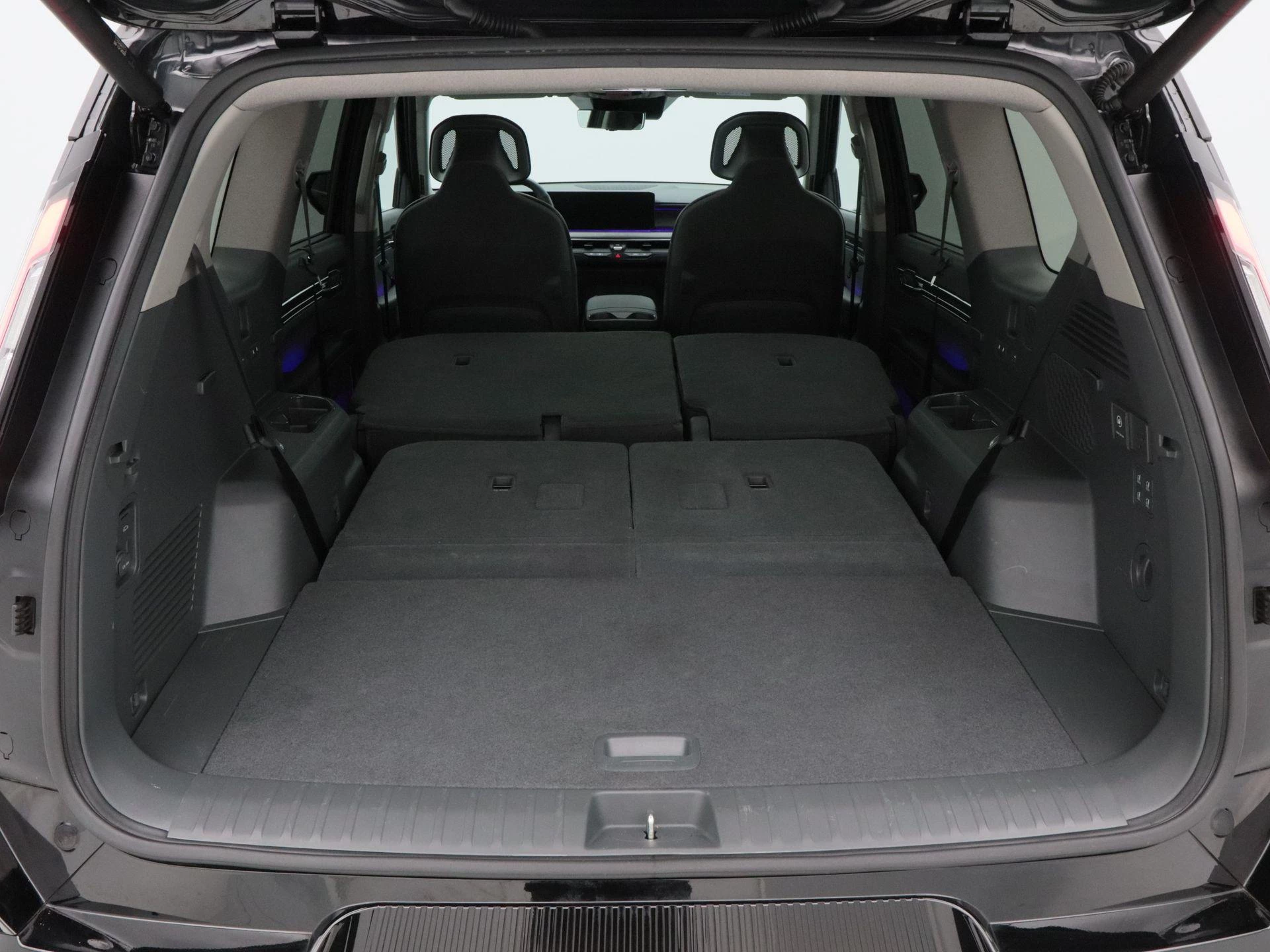 De Kia EV9 valt direct op door zijn robuuste design en royale afmetingen. Het grote panoramadak zorgt voor een licht en ruimtelijk interieur, terwijl de 19 inch lichtmetalen velgen bijdragen aan een moderne en krachtige uitstraling.