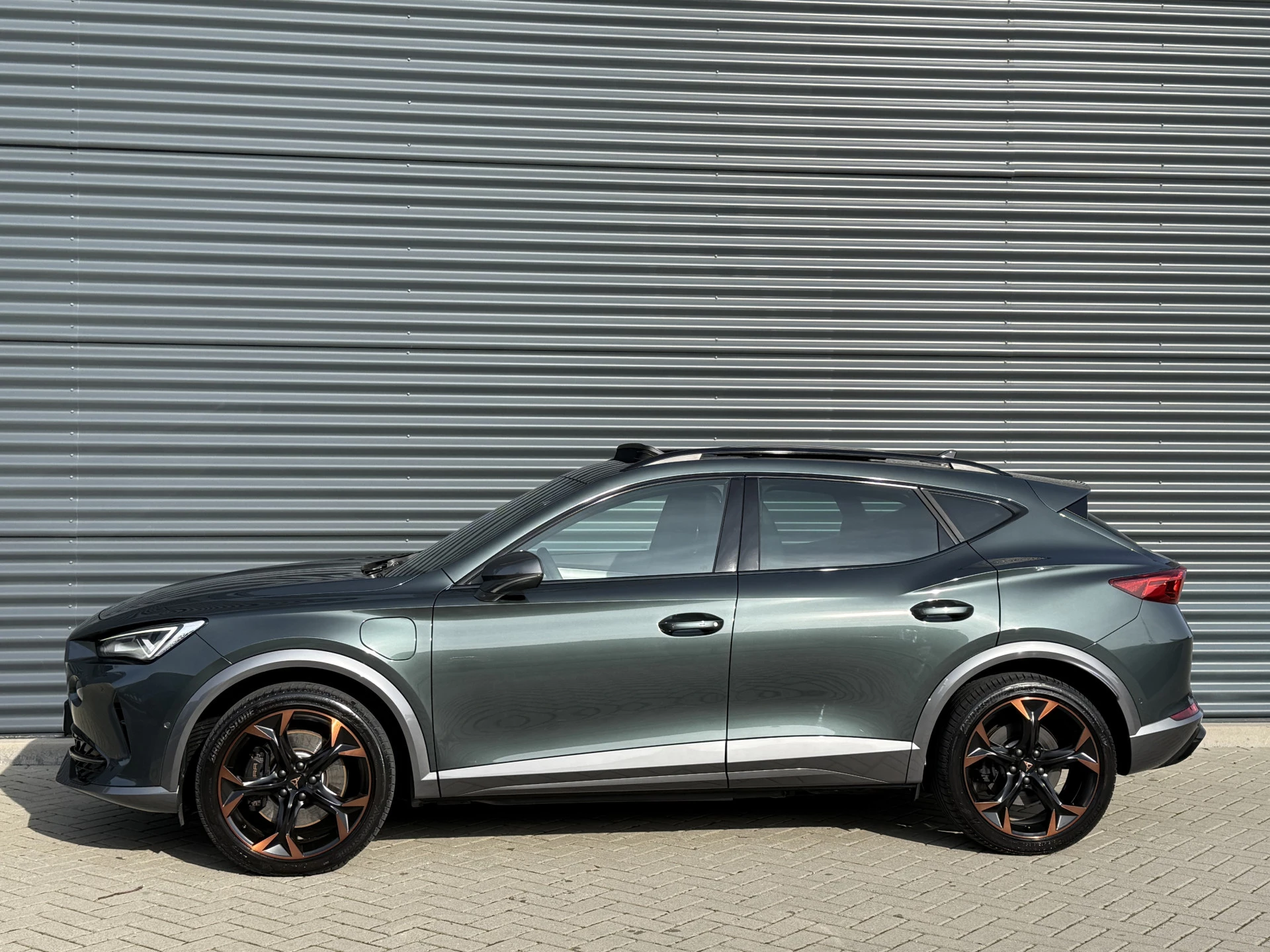 Schitterende Cupra Formentor 1.4 e-Hybrid VZ 245PK in Camouflage Green metallic met 19 inch Copper licht metalen velgen. De Formentor is voorzien van veel mooie opties zoals: Panorama dak, elektrische verstelbare bestuurders stoel met memory, stoel en stuurverwarming, achteruitrijcamera, navigatie, LED sfeer interieur verlichting, keyless entry and start, etc..