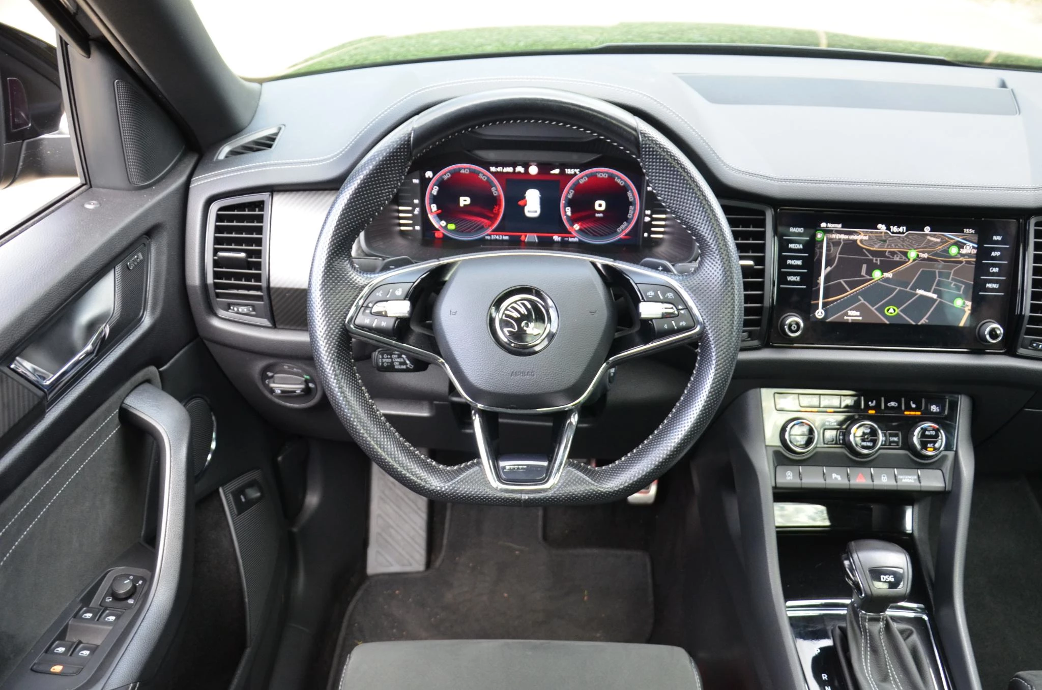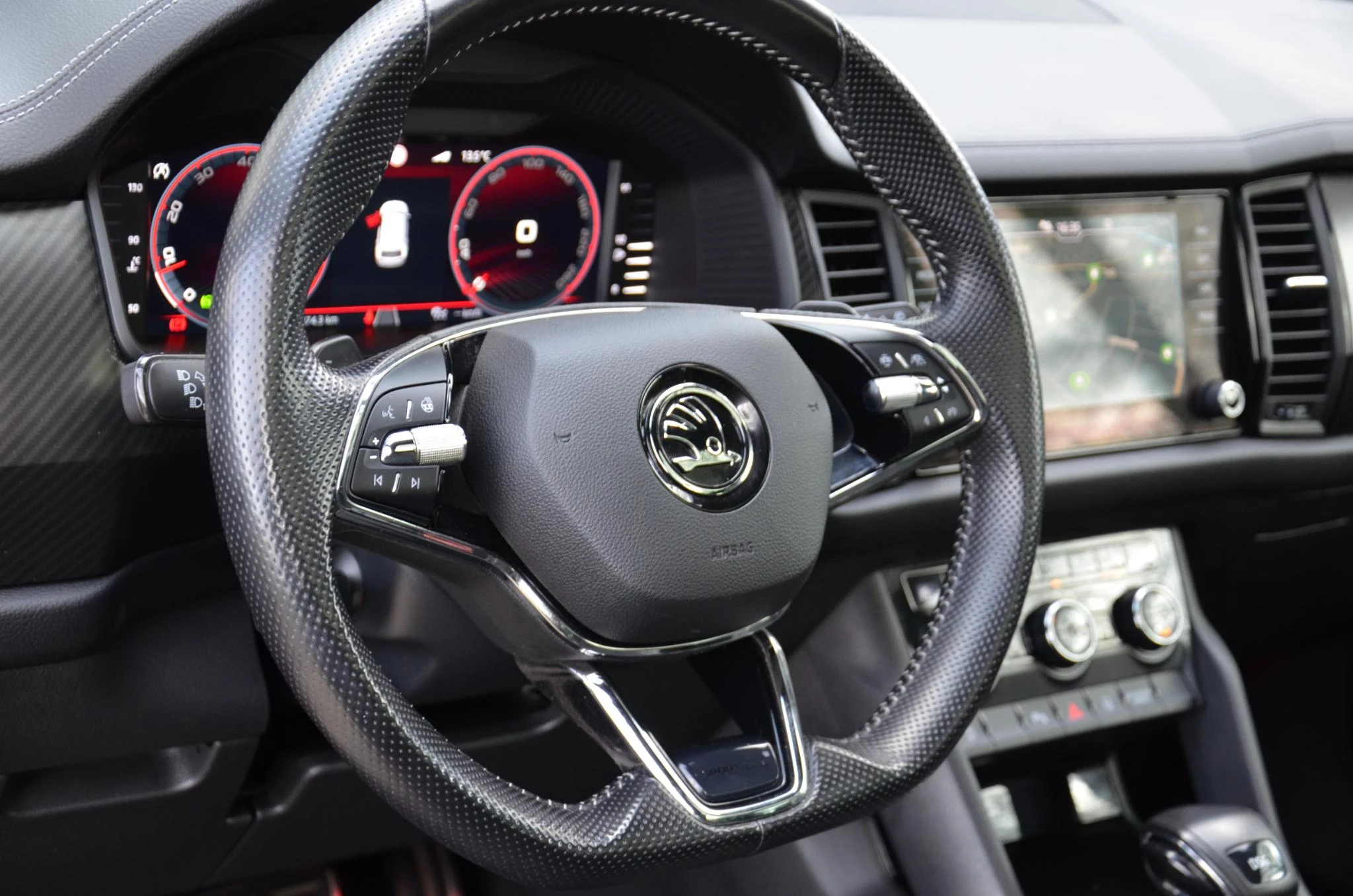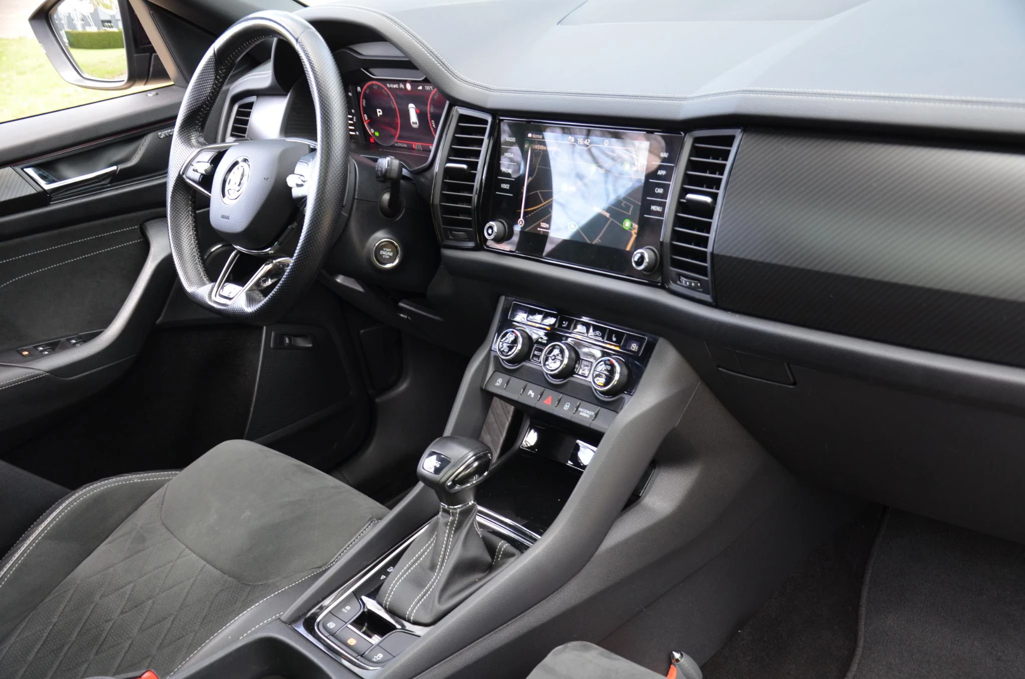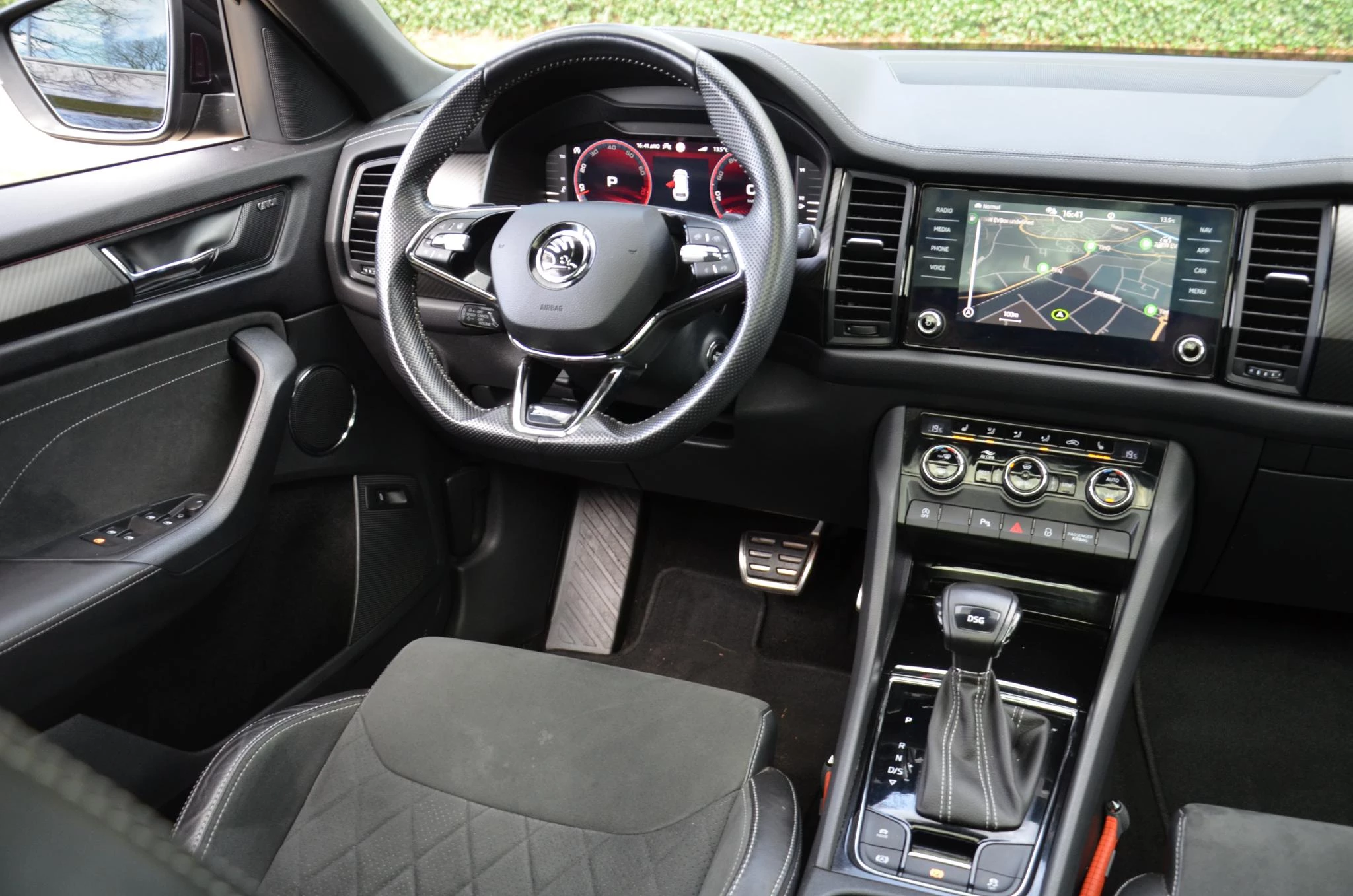 Bij de bouw van de Skoda Kodiaq wordt niets aan het toeval overgelaten. Vandaar dat hier een auto staat die in optimale conditie verkeert. In deze auto vindt u een benzinemotor en een automatische transmissie. Deze Skoda Kodiaq heeft verwarmbare voorstoelen, voor zowel bestuurder als bijrijder. Uitstekende zitsteun en een strakke look? Daar zorgen de sportstoelen voor! Volop licht en ruimtelijk gevoel geeft het elektrische bediende glazen panoramadak. De elektrisch bedienbare achterklep opent met een druk op de knop. Pak aan, 't is winter! Zo'n verwarmd stuurwiel is dan bijzonder prettig! De koplampen zijn voorzien van matrix LED-verlichting waarmee u aanzienlijk verder kan kijken in het donker. Het systeem past zelf de lichtstraal aan op het moment tegenliggers verblind kunnen worden. Verder is de Skoda uitgerust met: 20 inch lichtmetalen velgen, dakspoiler, donker getint glas achter, in delen neerklapbare achterbank, LED-achterlichten en verstelbare lendensteunen.