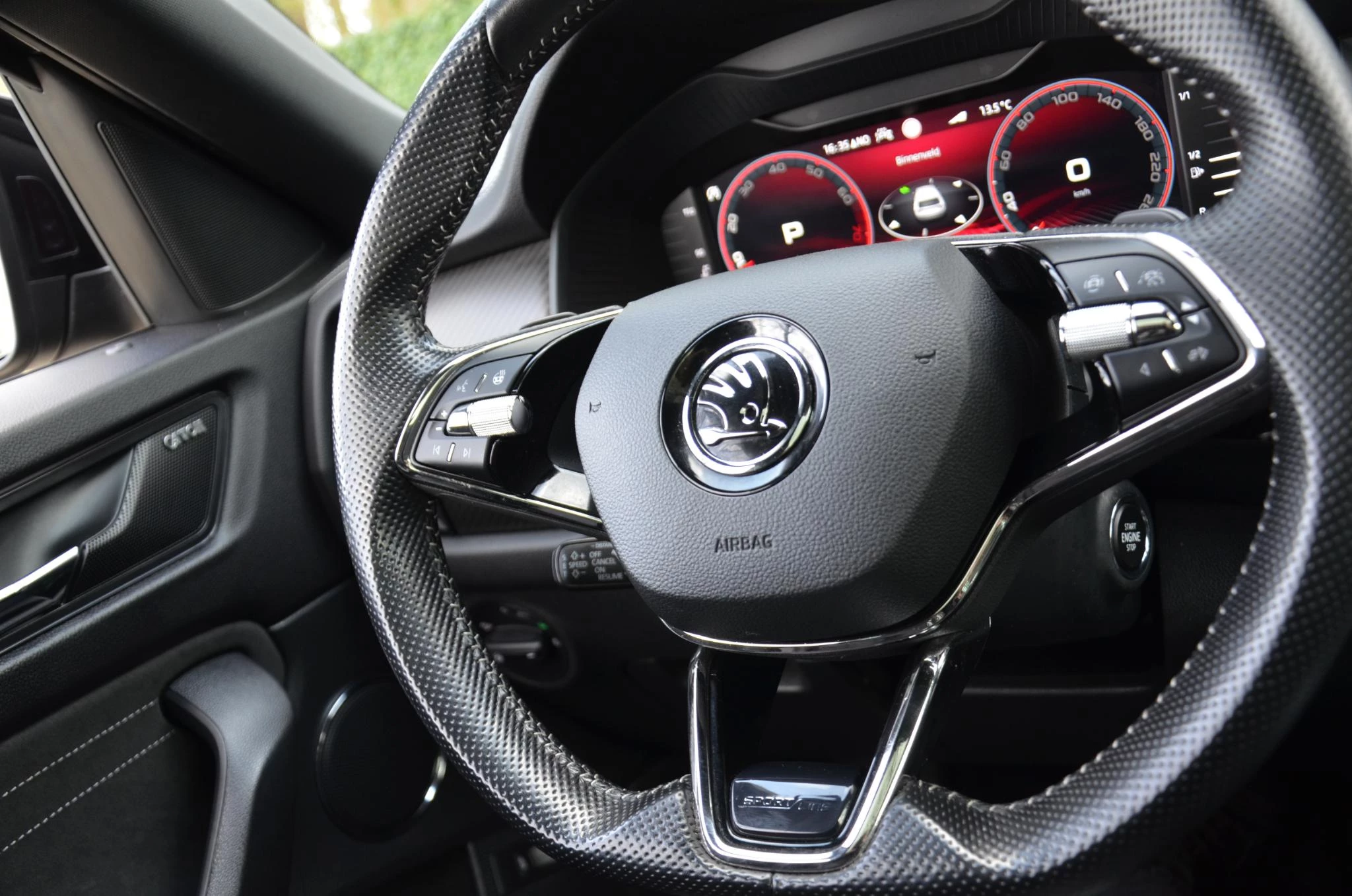 Het eigentijdse interieur wordt natuurlijk helemaal volmaakt met het digitale dashboard. Niets achter deze auto blijft verborgen door de achteruitrijcamera. Een veilig gevoel! Met adaptive cruise control houdt deze auto automatisch afstand tot uw voorligger. De aanwezige file assistent meet de afstand tot uw voorligger en zorgt voor een veilige afstand. Staat het voor u opeens stil? Dan zorgt het systeem dat de auto ook stopt. Een slim verborgen extra is de elektrisch inklapbare trekhaak. Deze Skoda is voorzien van connected drive services, premium audiosysteem, navigatiesysteem, achteropkomend verkeer waarschuwing, electronic climate control en draadloos opladen.
