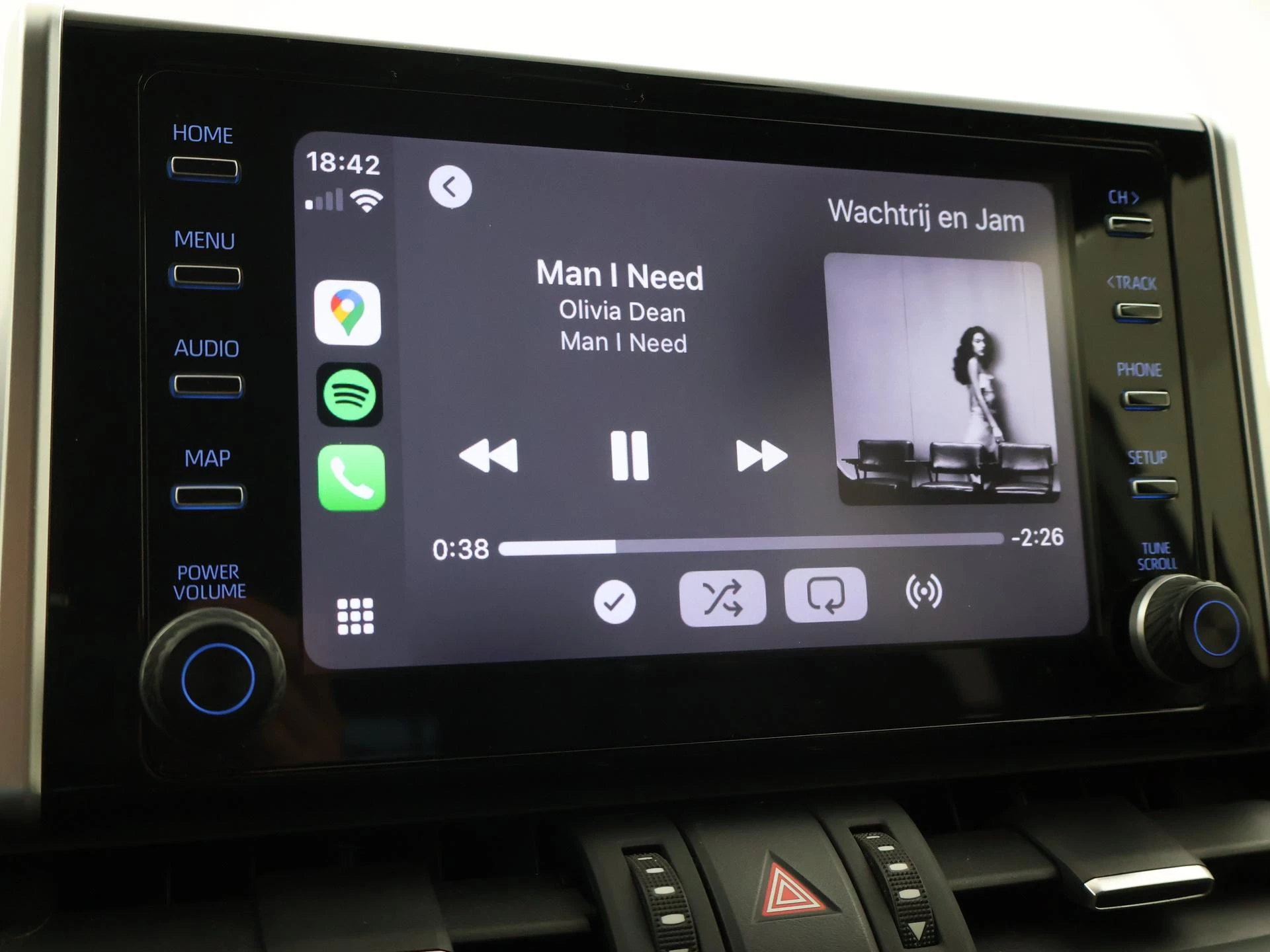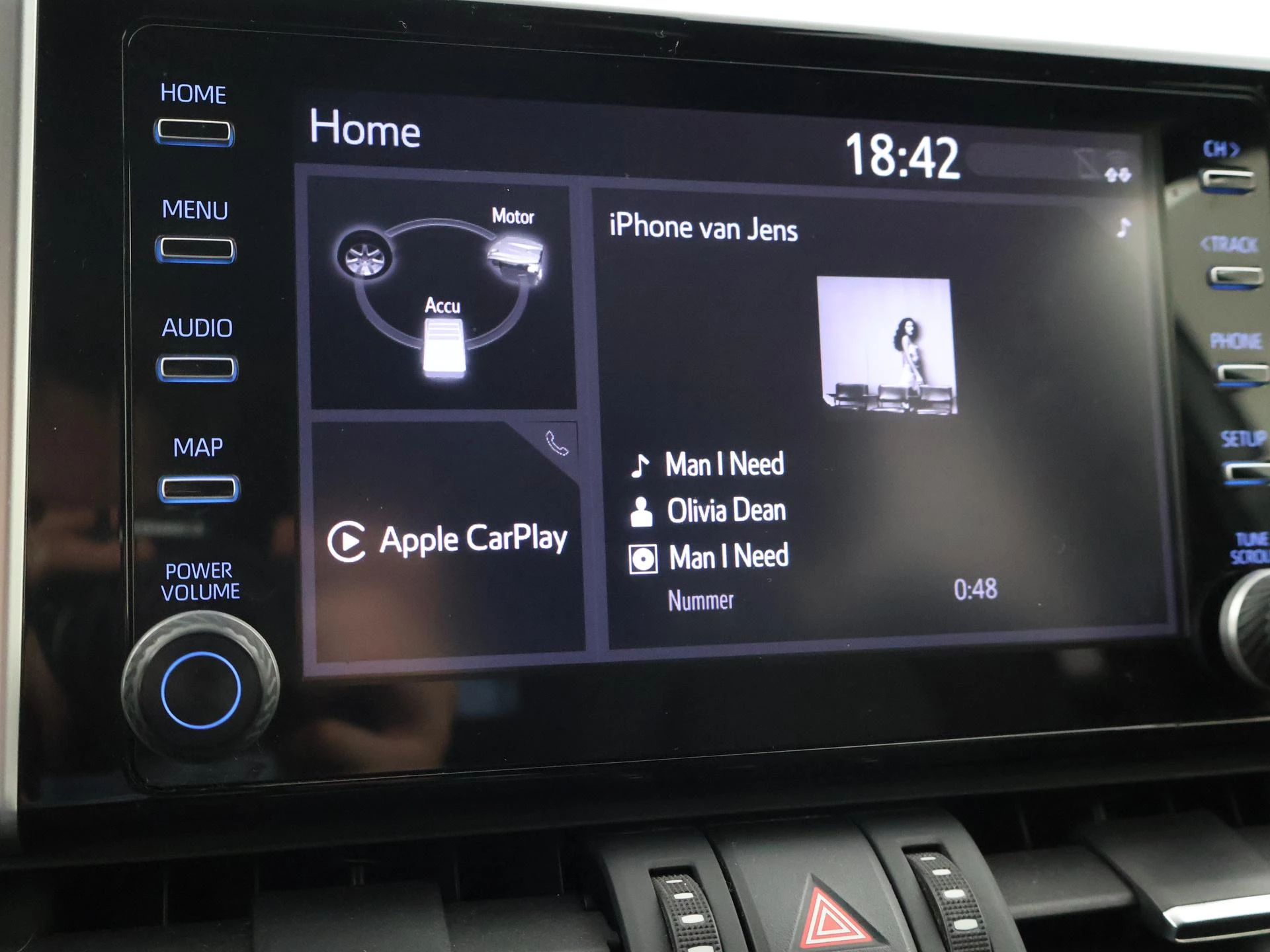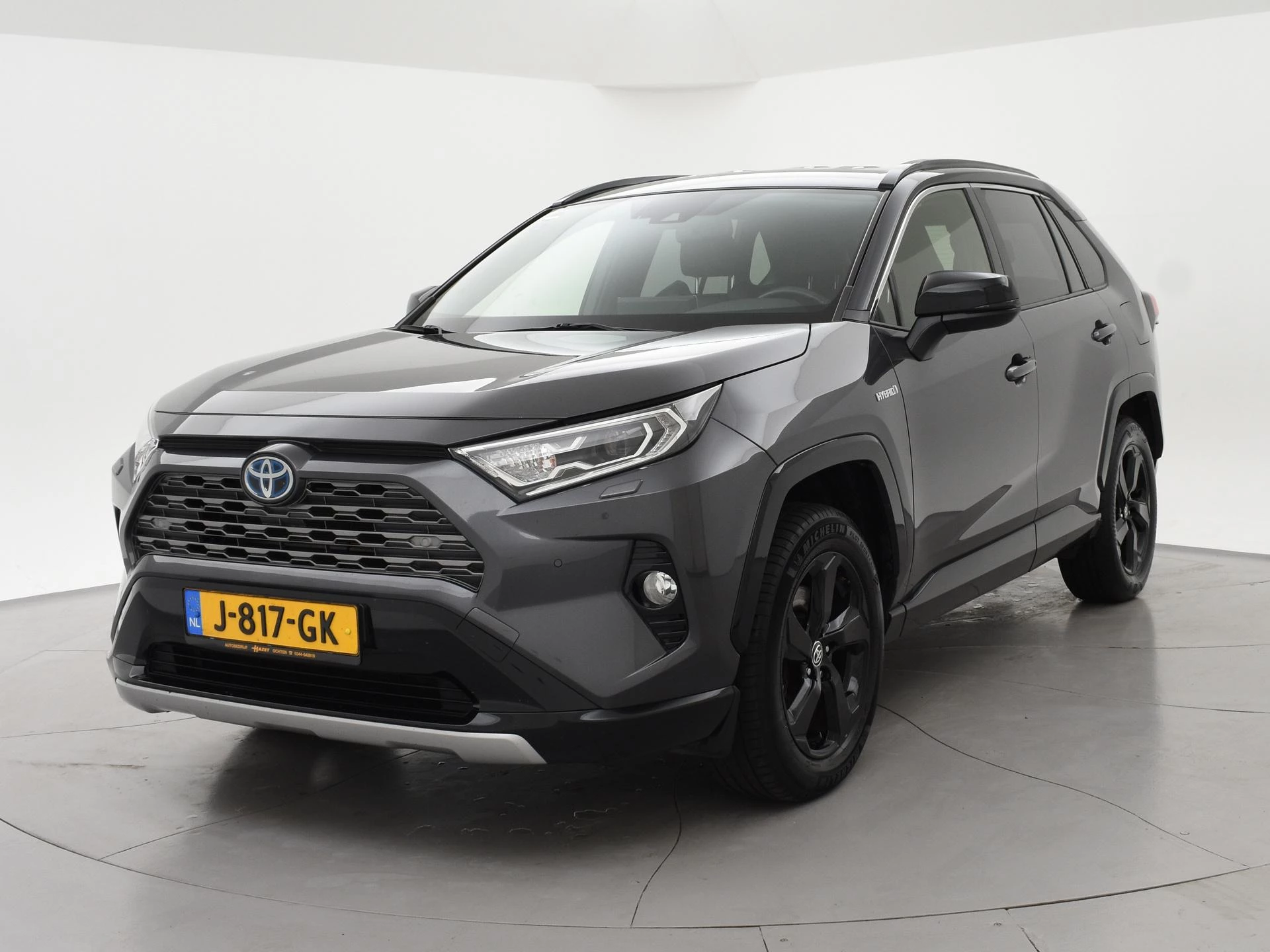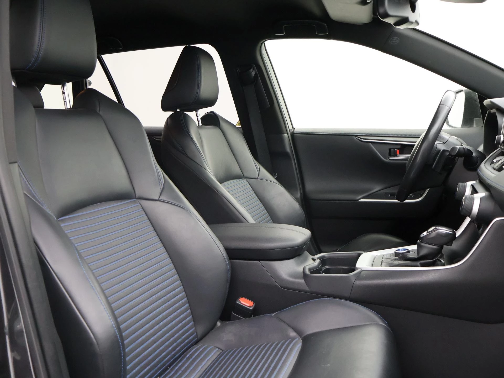 Super complete RAV4 Hybrid 2.5 Automaat 222 PK AWD vierwielaandrijving met 1650 kg trekgewicht op kenteken, Volledig Toyota dealer onderhouden, Bi-Tone uitvoering Donkergrijs + Zwart dak, zwarte buitenspiegels en zwarte 18 inch velgen, Zwart met blauw half leder interieur, Stoelverwarming, Stuurwielverwarming, Achteruitrijcamera, Apple Carplay / Android Auto appstreaming Google Maps, Flitsmeister, Spotify, Whatsapp etc, Privacy glass, Adaptive cruise control, Lijnassistentie, Climate control, Bluetooth met audiostreaming, Verwarmde buitenspiegels, Elektrische achterklep, DAB+ digitale radio, Elektrische stoelverstelling, Parkeersensoren voor + achter, Full LED koplampen, LED achterlichten, Elektrische voorruitverwarming,