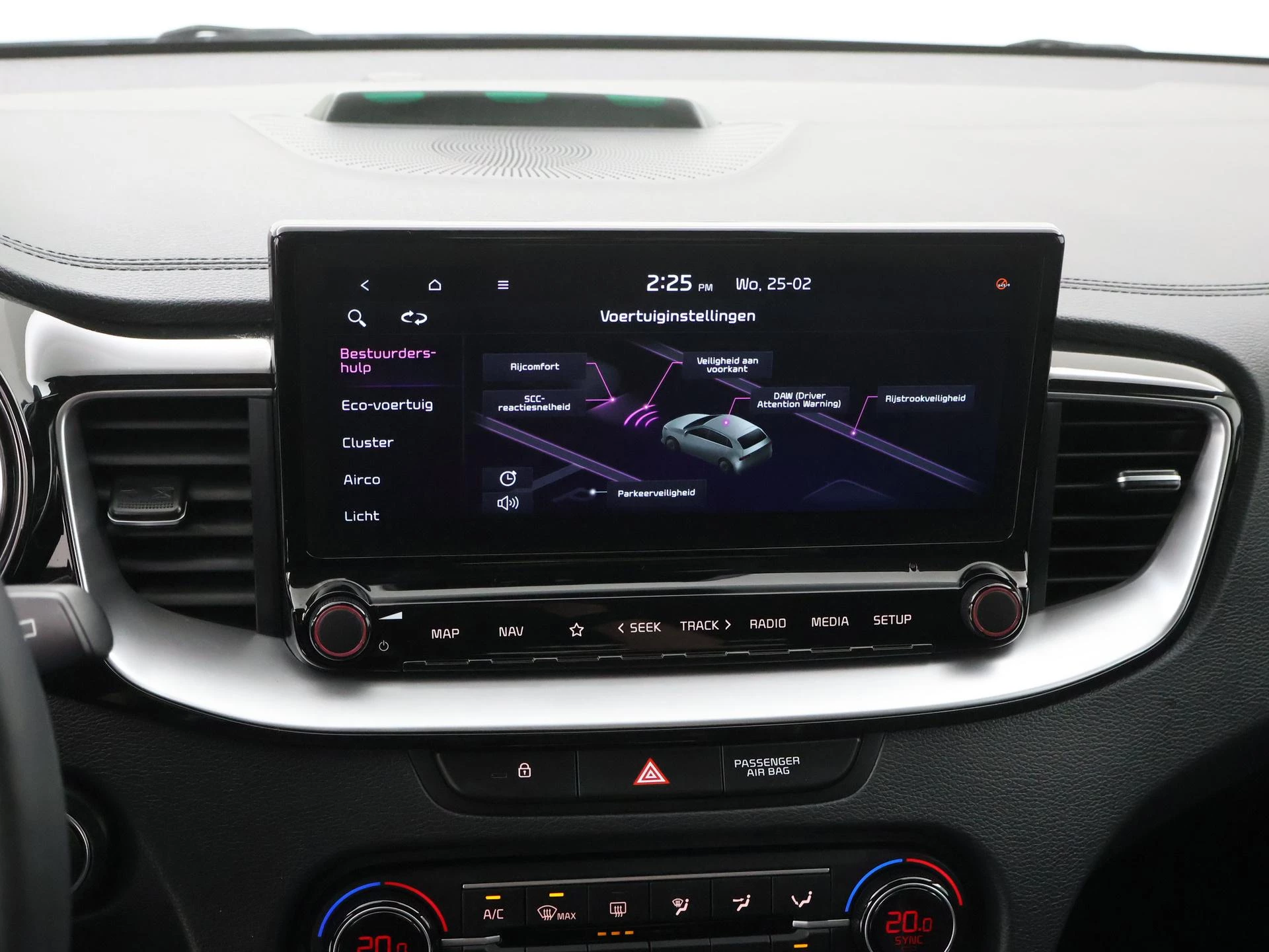 De nieuwste veiligheidssystemen komen in deze Kia Ceed Sportswagon samen. In het instrumentarium kunt u bovendien de verkeersborden zien die u onderweg tegenkomt. Zo helpt deze Kia u om veiliger te rijden. Deze Kia Ceed Sportswagon is ook behulpzaam als het gaat om een rechte koers. Het Lane-keeping systeem signaleert en corrigeert als u onbedoeld de rijstrooklijnen dreigt te overschrijden. Het forward collision warning-systeem waarschuwt indien een botsing dreigt met een voorliggend of tegemoetkomend voertuig. U bent mede dankzij hill hold functie, vermoeidheidsherkenning, autonoom remsysteem en bandenspanning controlesysteem steeds veilig onderweg.