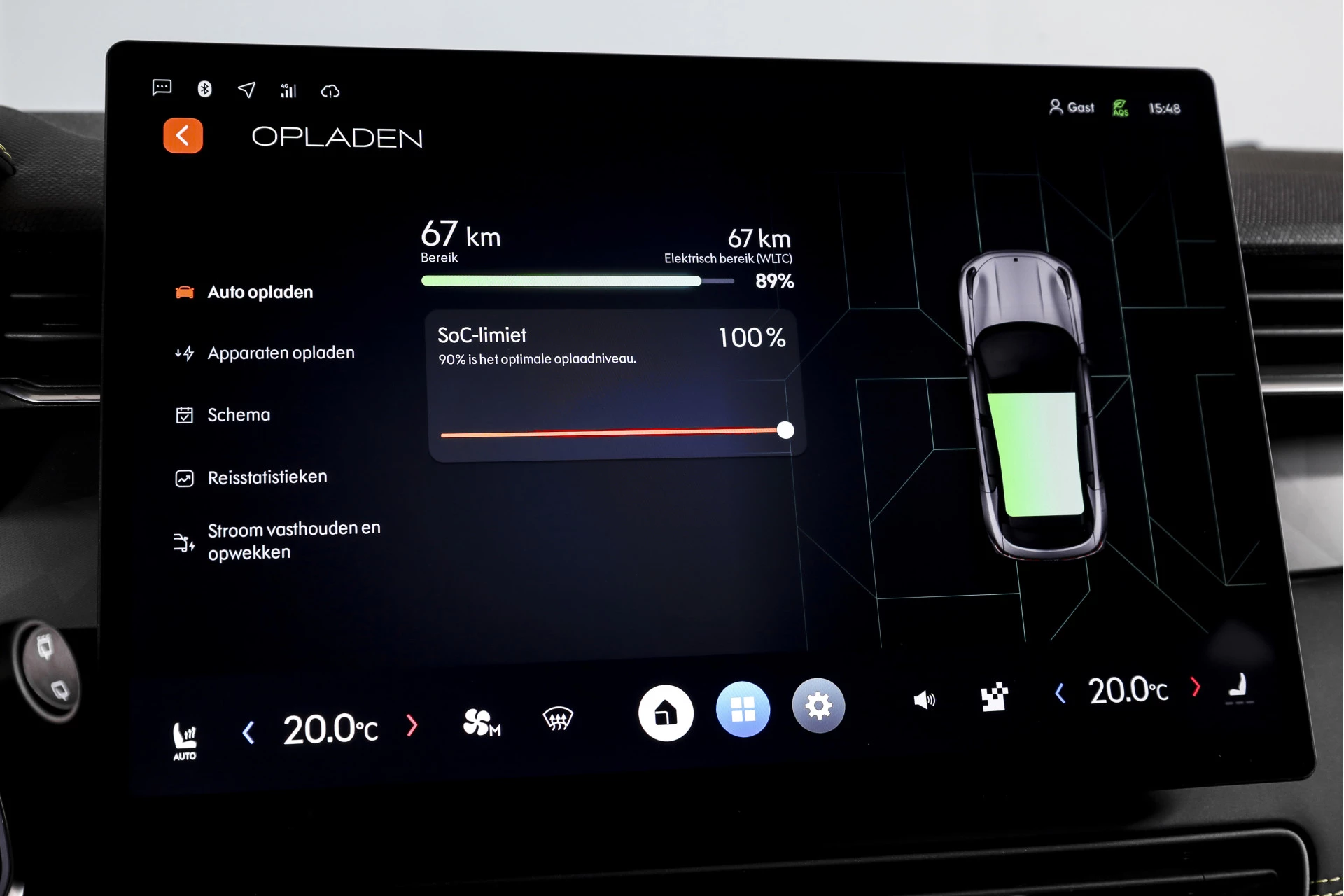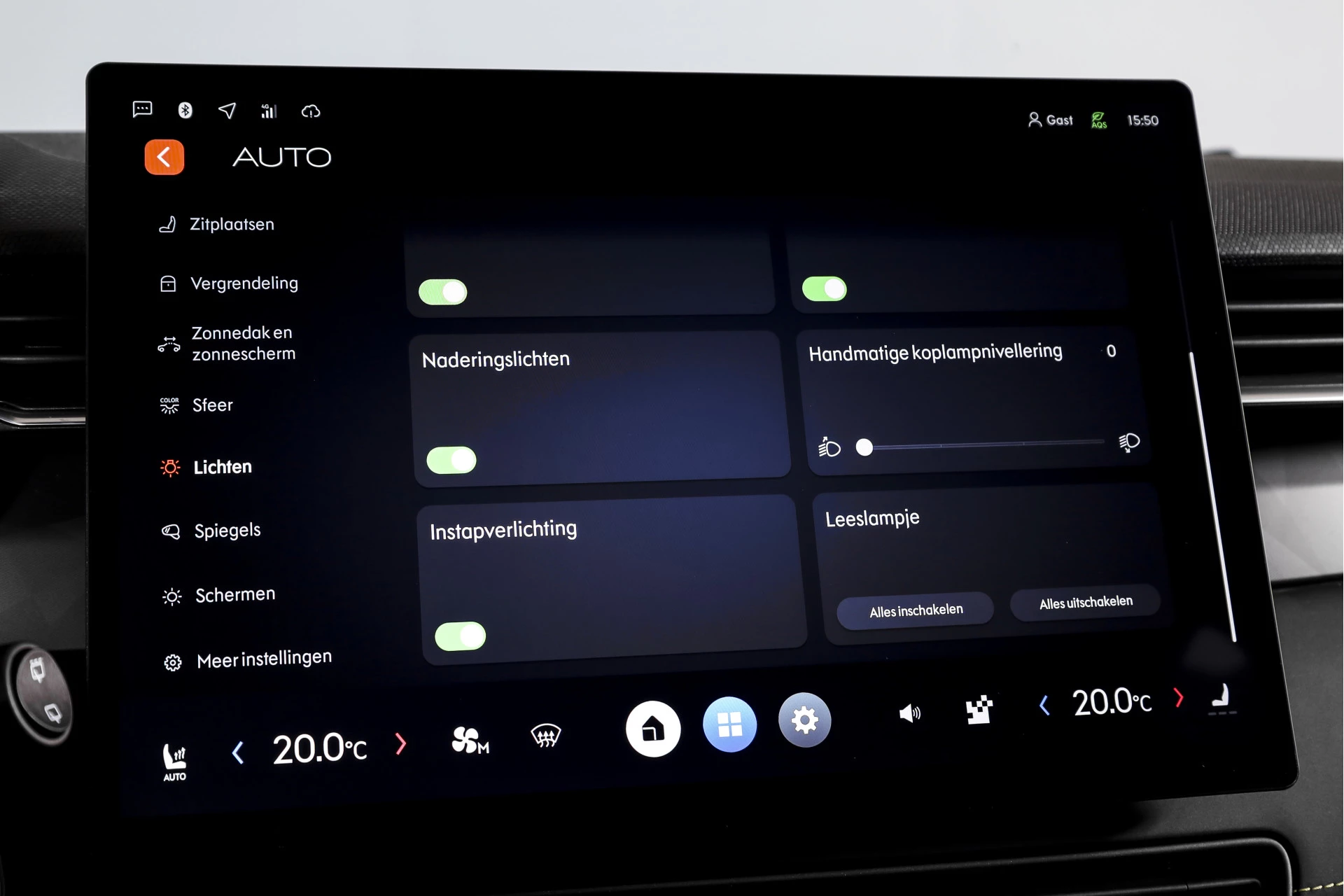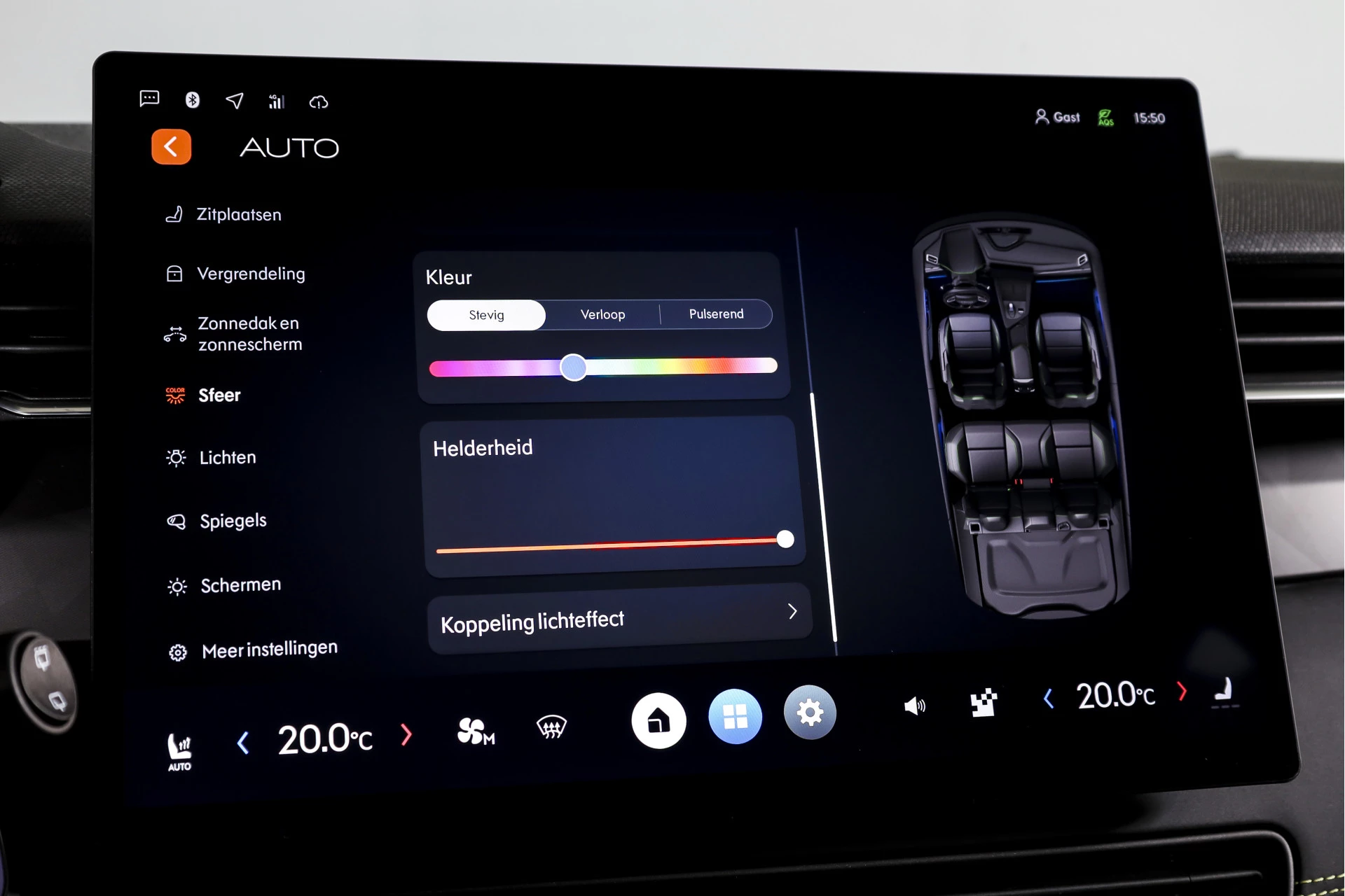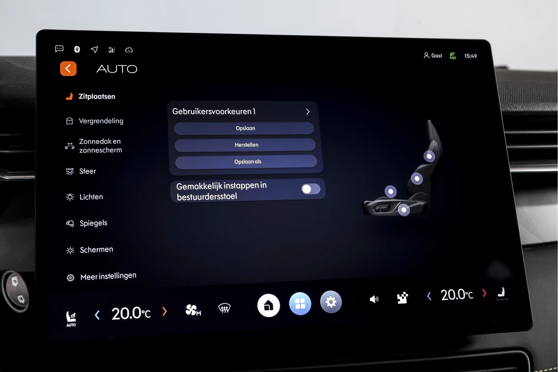 Qua comfort is de uitrusting verrassend prettig. De auto beschikt over een elektrisch verstelbare bestuurdersstoel, inclusief geheugen, zodat je altijd snel in de juiste zitpositie zit. De voorstoelen zijn verwarmd, wat in koude maanden direct merkbaar comfort biedt. Boven je bevindt zich het grote elektrisch glazen panorama-dak, wat veel licht en ruimtelijkheid in het interieur brengt.