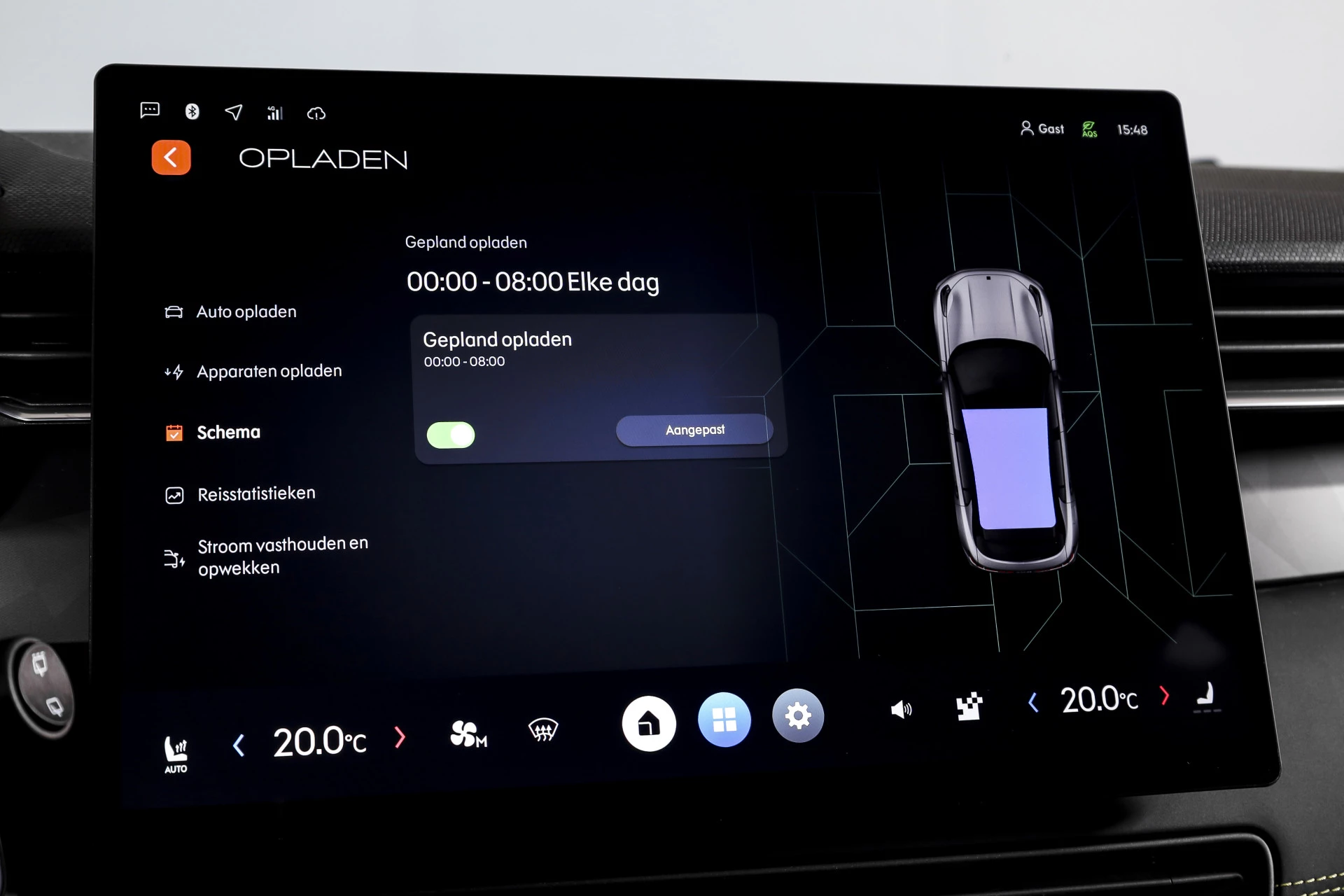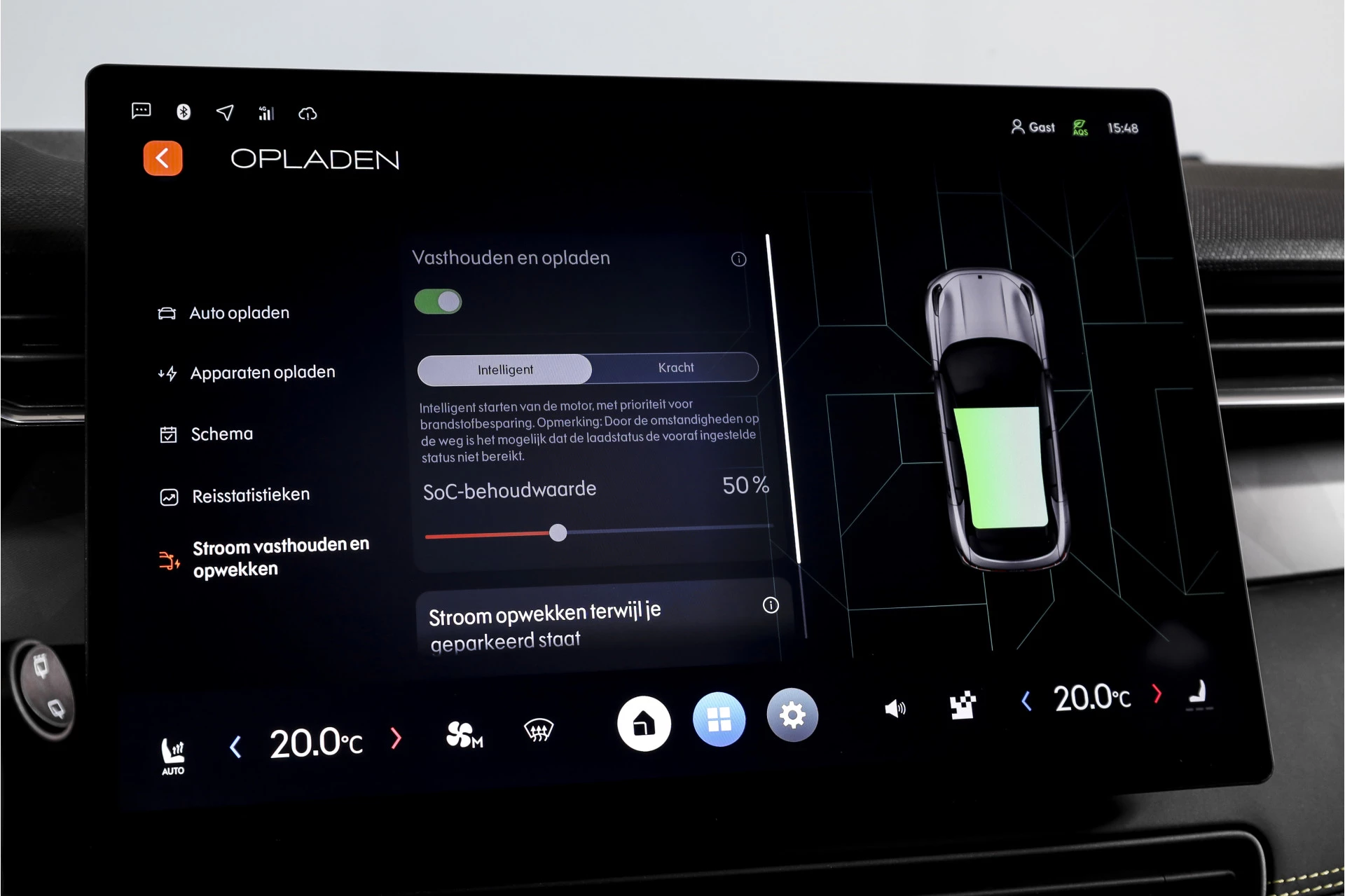 Ook aan de buitenzijde is de auto netjes aangekleed. De LED koplampen adaptief zorgen voor goed zicht in het donker, terwijl de lichtmetalen velgen 20" en de aanwezige dakrails het uiterlijk net wat stoerder maken.