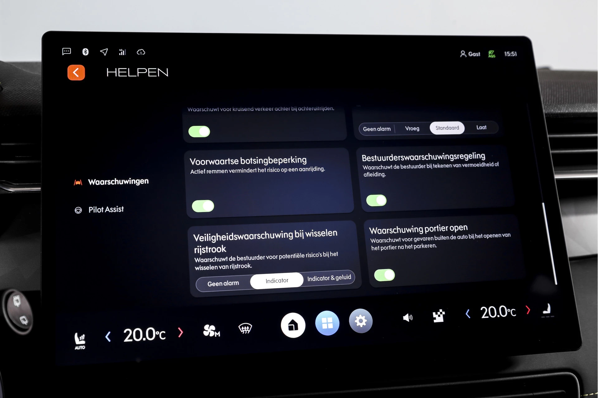 De rijervaring wordt ondersteund door cruise control adaptief, dat vanzelf afstand bewaart tot voorgangers. Veiligheid speelt verder een grote rol, met onder andere een dodehoek detector, een rijtstrooksensor met correctie en de praktische rondomzicht camera voor goed overzicht bij manoeuvreren. In drukke situaties of bij parkeren helpen de parkeersensoren voor en achter, wat het dagelijks gebruik echt makkelijker maakt.