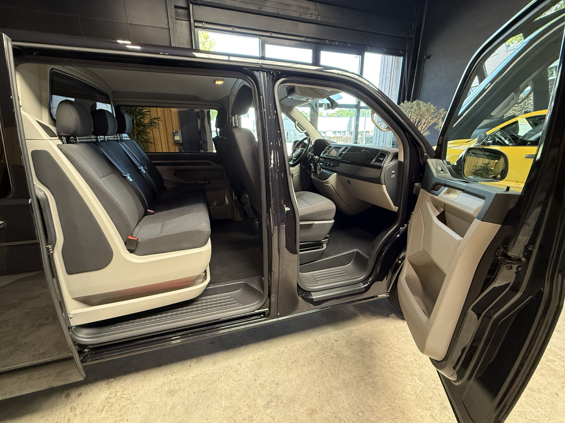 Met zijn elegante vormgeving en aangename interieur omgeving, is deze Volkswagen Transporter in elk opzicht van topklasse, typisch voor echte Duitse auto's. Een belangrijke eigenschap van iedere Volkswagen is zijn duurzaamheid. Dat ziet u ook aan deze Transporter. Hij heeft een dieselmotor en een automatische transmissie. De comfortstoelen zorgen voor precies de juiste zit, hoe lang de rit ook is. Onverhoeds de deur opengooien is een risico voor passerend verkeer. De schuifdeur aan de zijkant is dus gemakkelijker én veiliger. Bij de uitrusting van deze Volkswagen horen onder meer 18 inch lichtmetalen velgen, adaptieve mistlampen, donker getint glas achter en verwarmde ruitensproeiers.