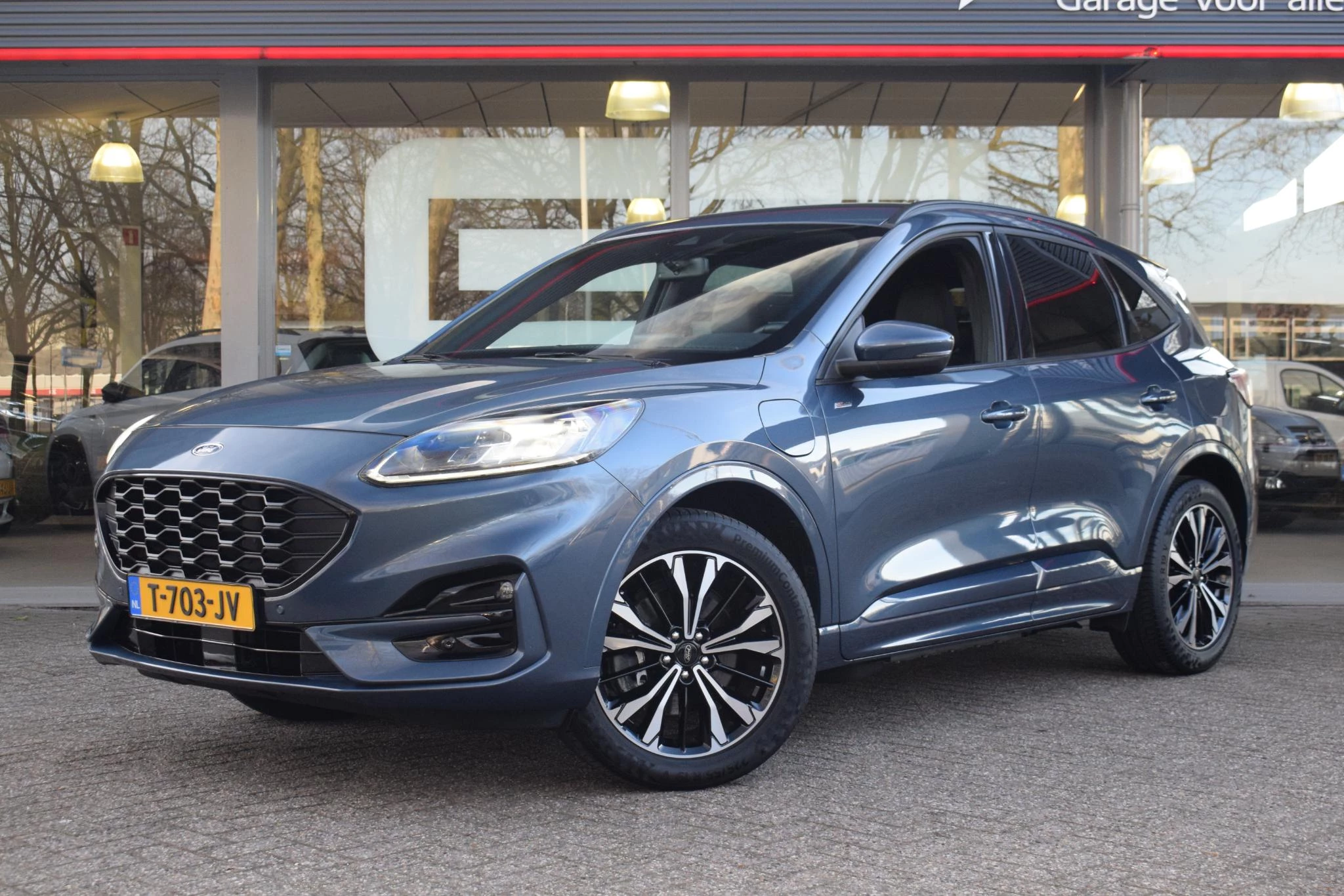 Ford, een merk met geschiedenis. En een ijzersterke reputatie. Go Further, zeggen ze. Een aantrekkelijke filosofie. Twijfelt u nog tussen rijden op benzine of elektrisch? Niet nodig. Deze hybride Ford Kuga doet het allebei. Chauffeur en bijrijder zitten stabiel in de scherpe bochten door de sportstoelen. In deze auto profiteert u onder andere ook van: 18 inch lichtmetalen velgen, LED koplampen, halflederen bekleding, geluidsisolerende ramen, elektrisch inklapbare buitenspiegels en in delen neerklapbare achterbank.