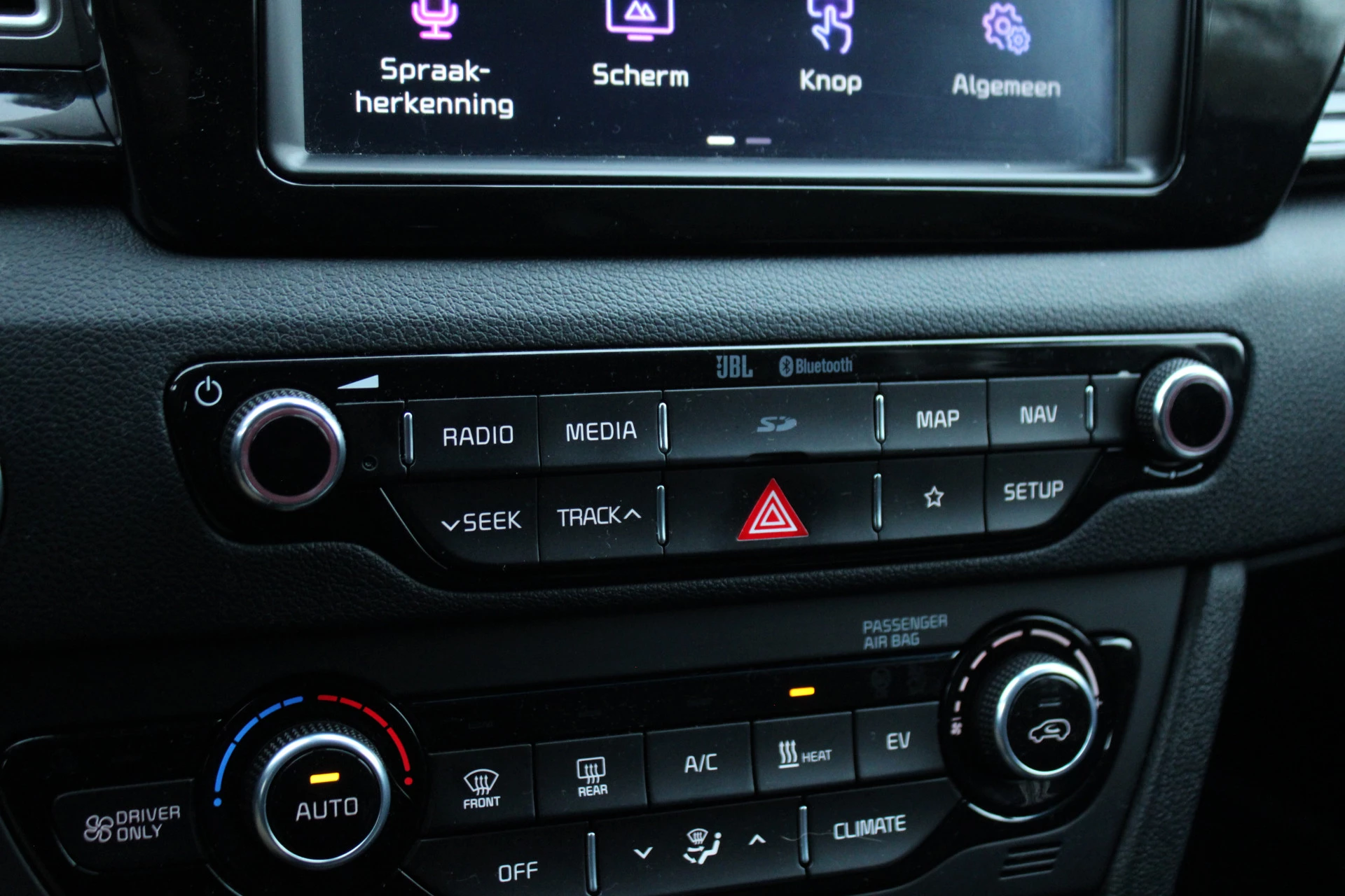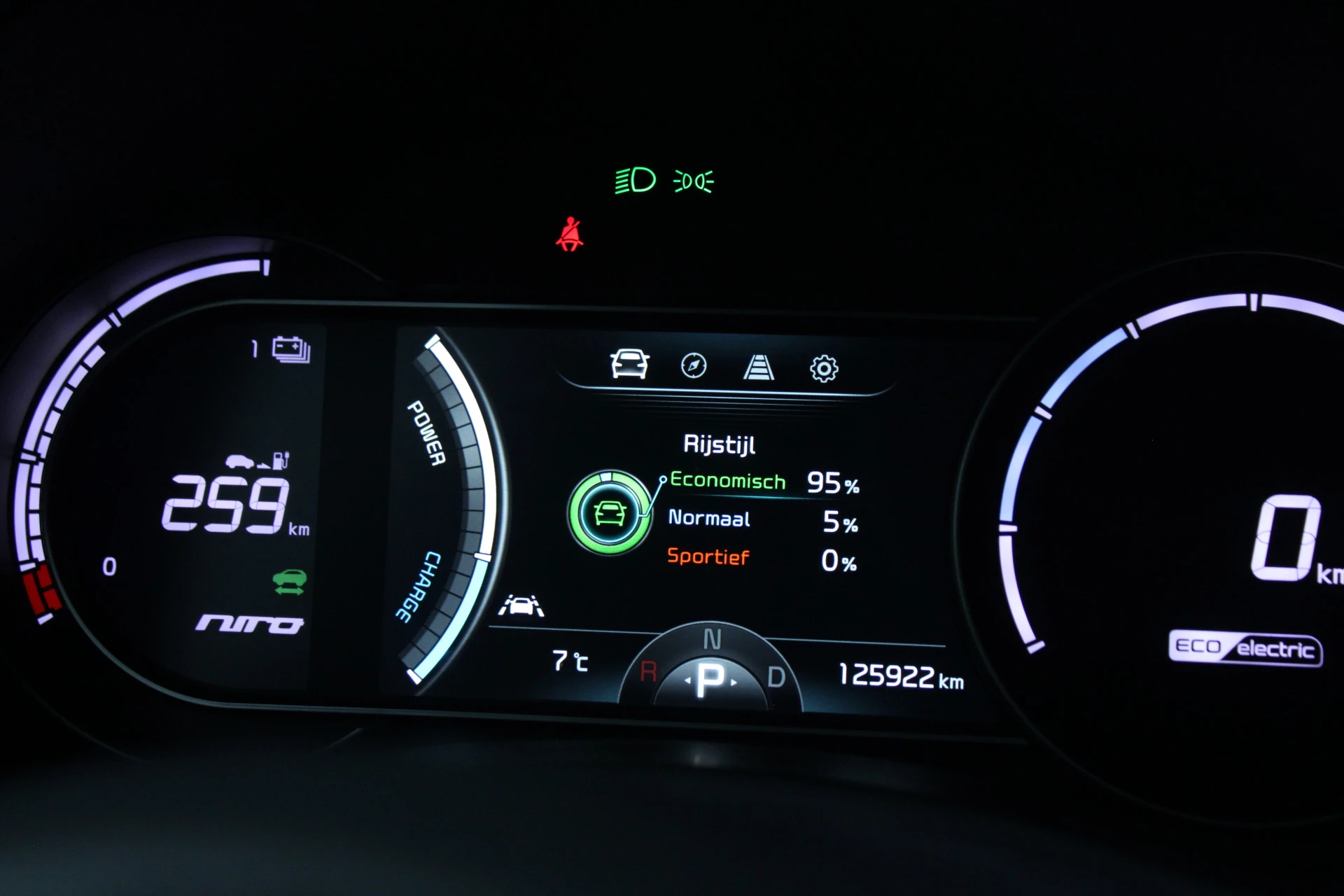 Zoals u mag verwachten van deze Kia e-Niro is hij uitgerust met een reeks aan actieve veiligheidssystemen. Het Lane-keeping systeem doet precies wat nodig is: waarschuwen en corrigeren bij onbedoelde overschrijding van de rijstrooklijnen. Op een kop-staartbotsing zit niemand te wachten. Daarom is de forward collision warning onderweg constant alert en berekent via een sensor de veilige afstand tot voorliggers. Een belangrijk veiligheidssysteem in deze auto is de vermoeidheidsherkenning, die u een duidelijk signaal geeft wanneer u achter het stuur in slaap dreigt te vallen. De auto is ook uitgerust met dodehoekdetectie, hill hold functie, autonoom remsysteem en bandenspanningcontrolesysteem.