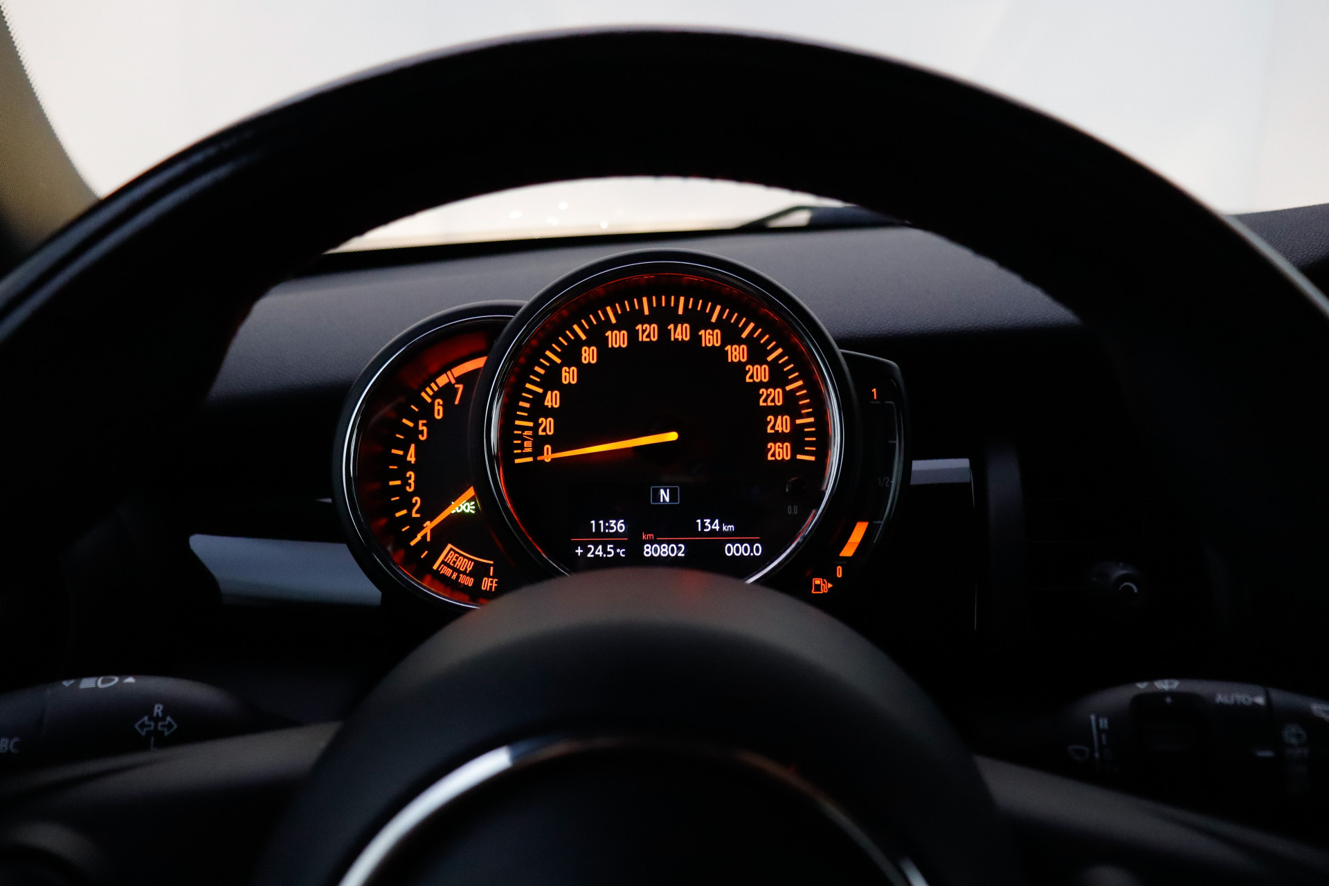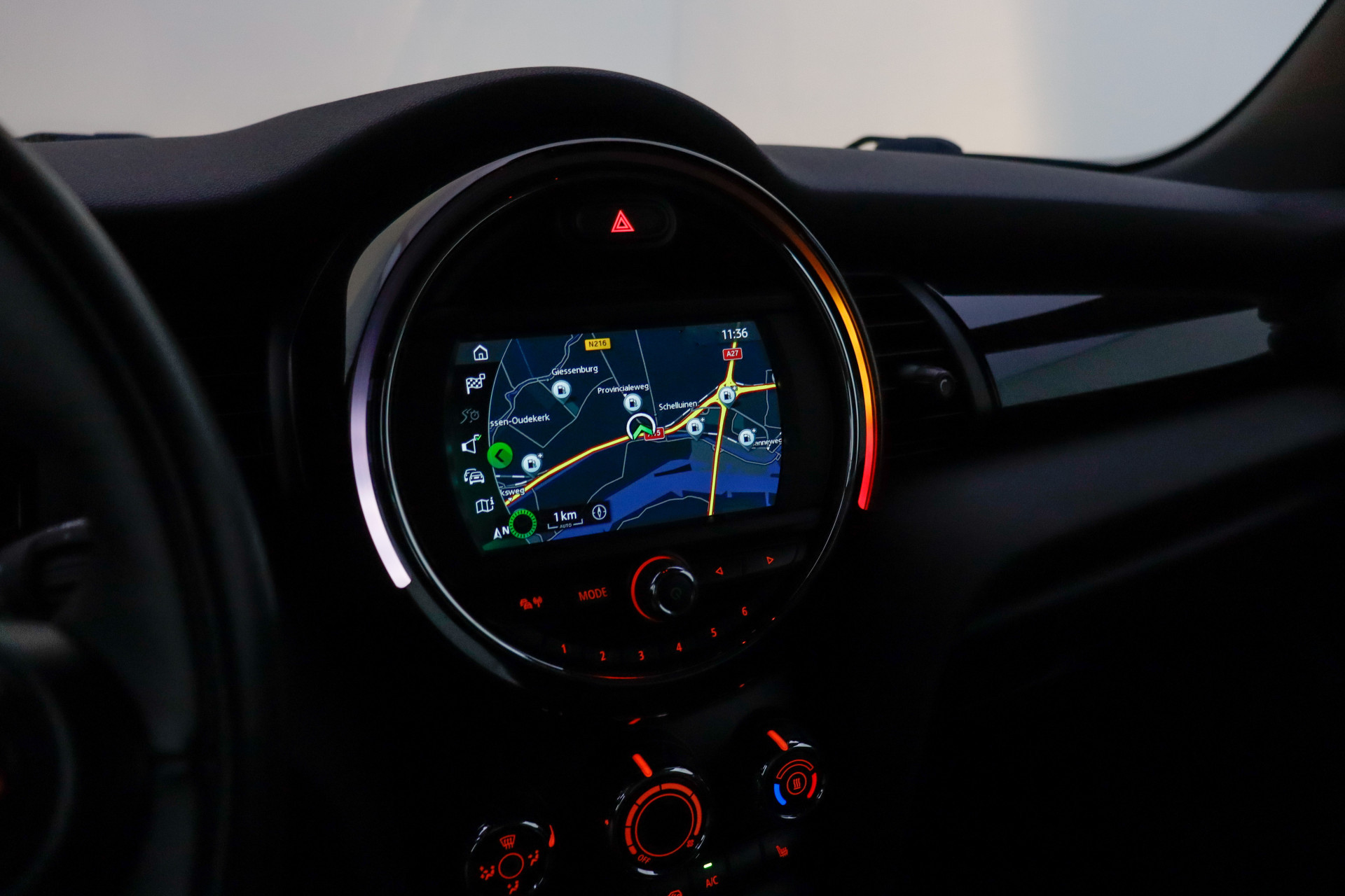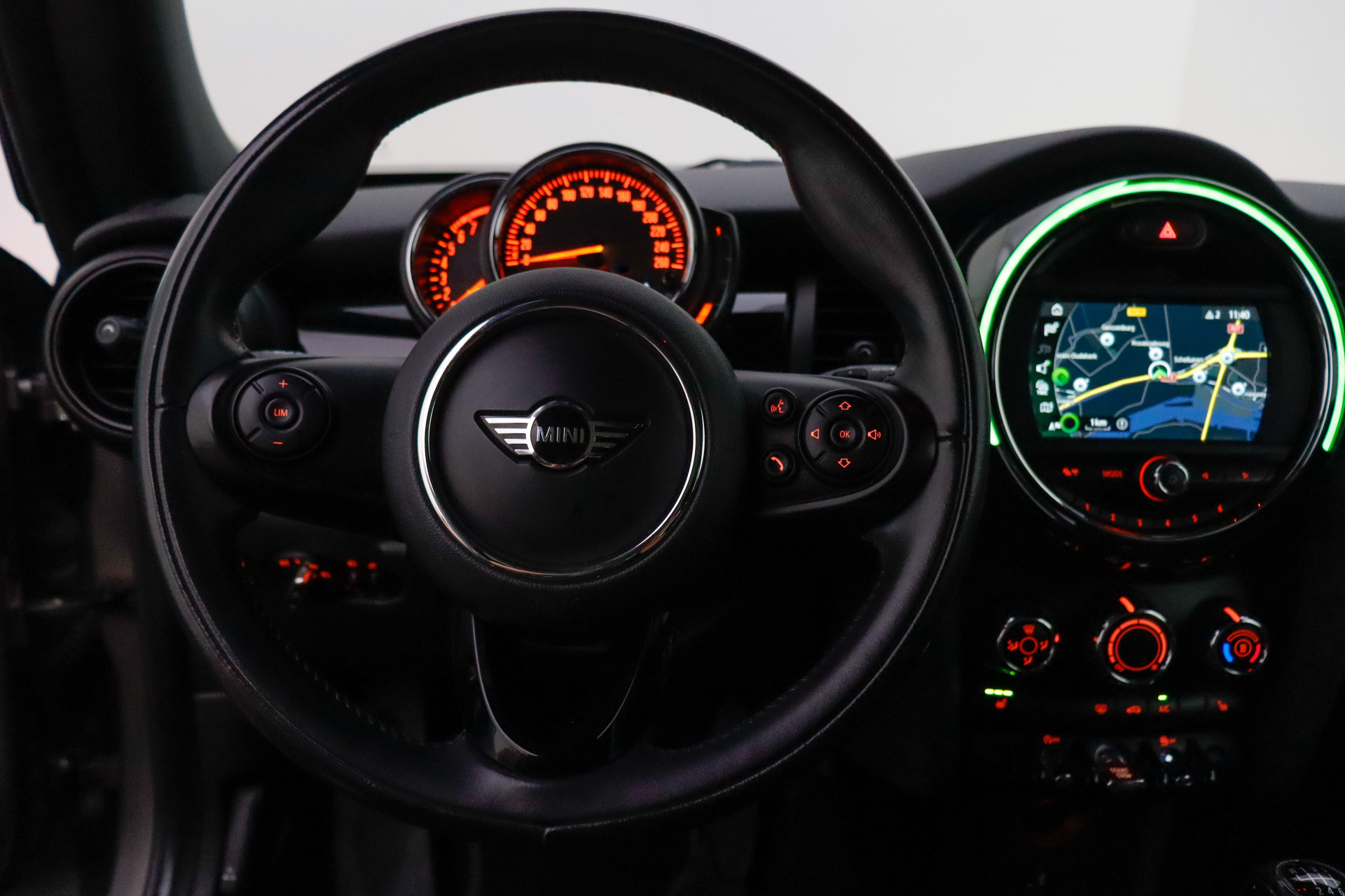 U bedient het full map navigatiesysteem en het audio-installatiesysteem via knoppen op het stuur. Zo kunt u steeds uw aandacht gericht houden op de weg. De achteropkomend verkeer waarschuwing bewaakt de afstand tot achterliggers en geeft een signaal als er te weinig ruimte is. Met de automatische airconditioning selecteert u de gewenste temperatuur. Het systeem doet de rest. Parkeersensoren zijn een waardevolle toevoeging aan deze auto. De sensoren waarschuwen tijdens het parkeren en voorkomen schade aan de auto. Het hoort bij een intelligente auto als deze dat hij zelf in staat is om zijn omgeving in de gaten te houden. Dat doet deze MINI met een automatisch inschakelbare verlichting en een regensensor. De uitrusting van deze auto is met sportstuurwiel, centrale deurvergrendeling met afstandsbediening en boordcomputer behoorlijk compleet.